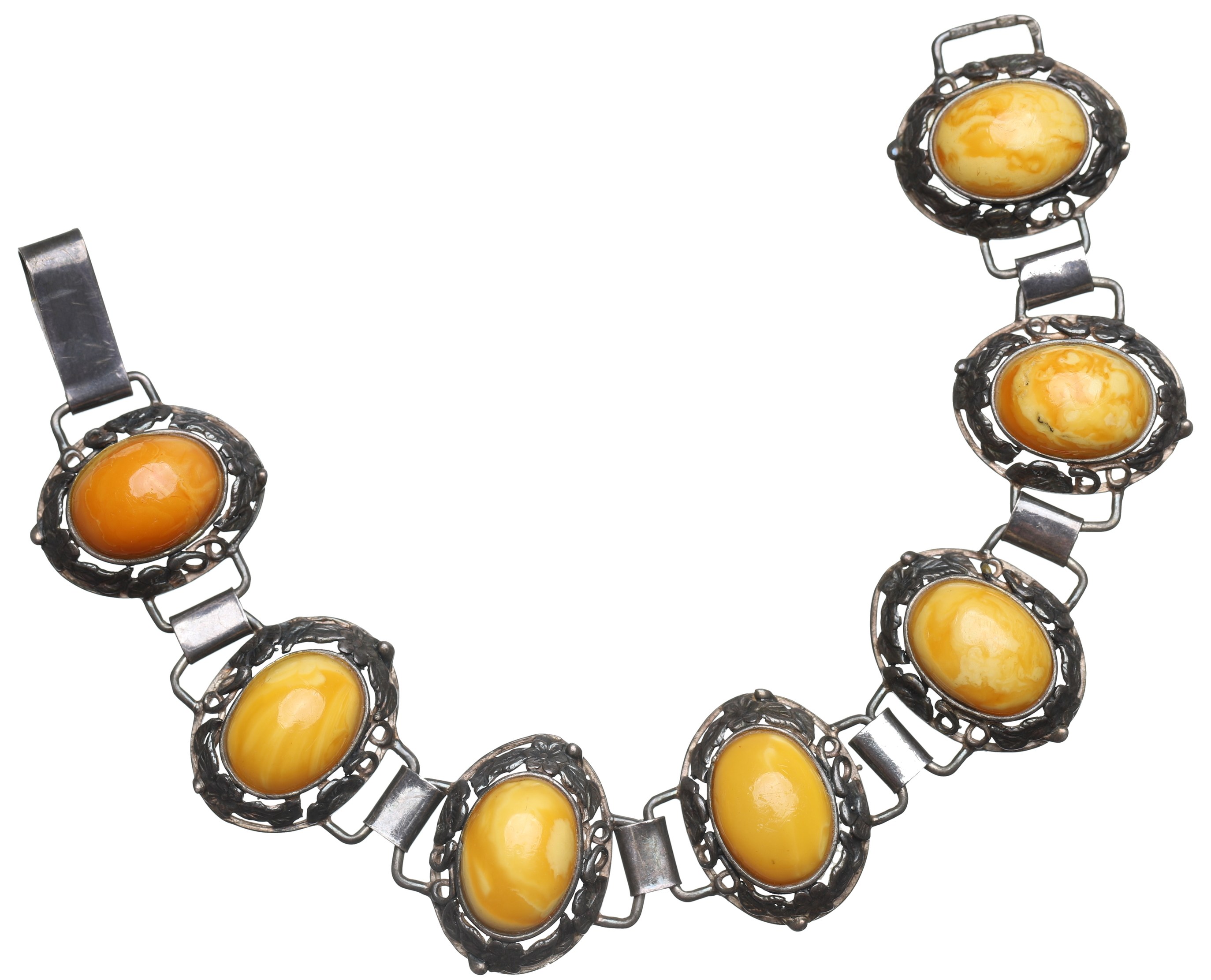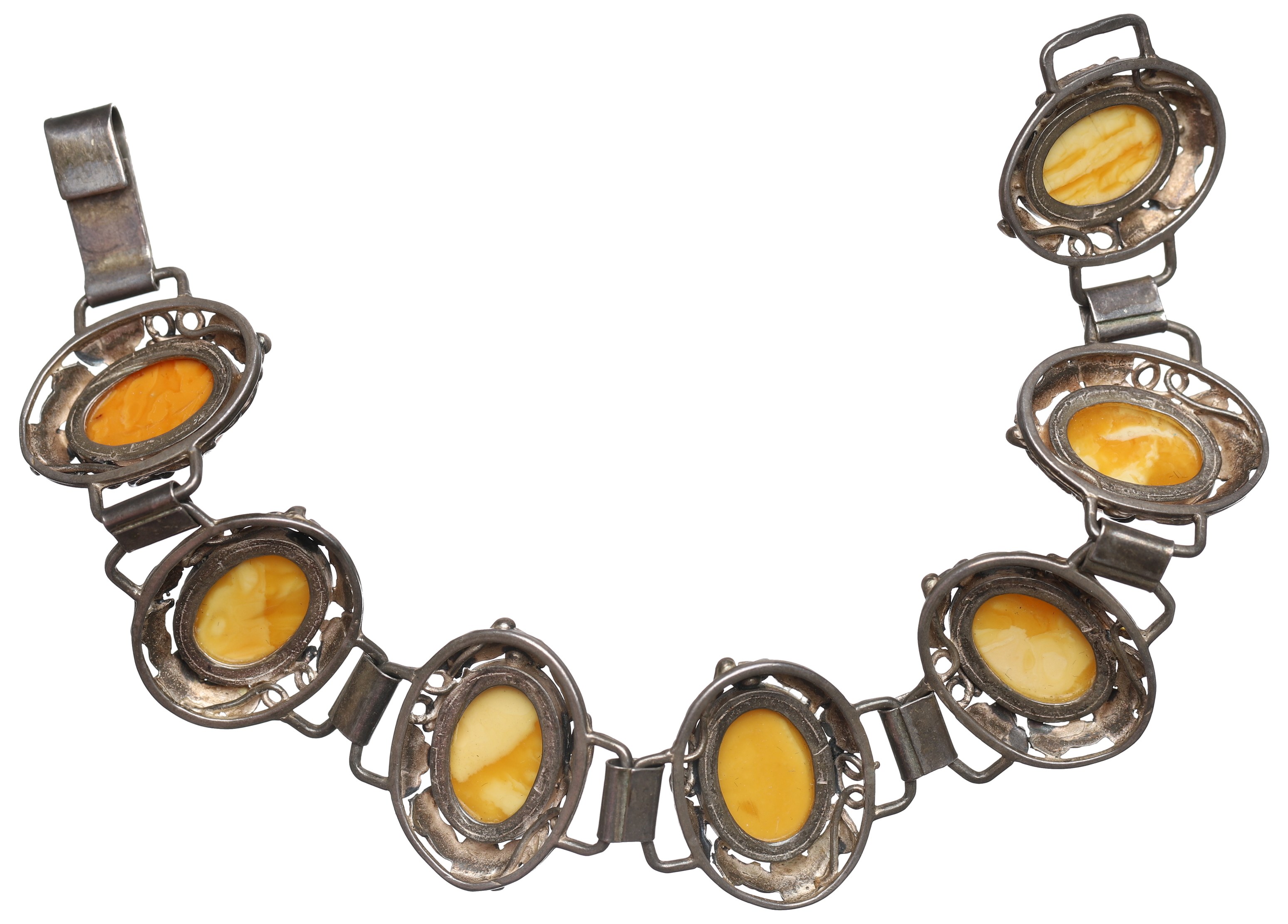 Srebro, bursztyn, długość rozpiętej 19,5 cm, waga łączna 20,7 g.