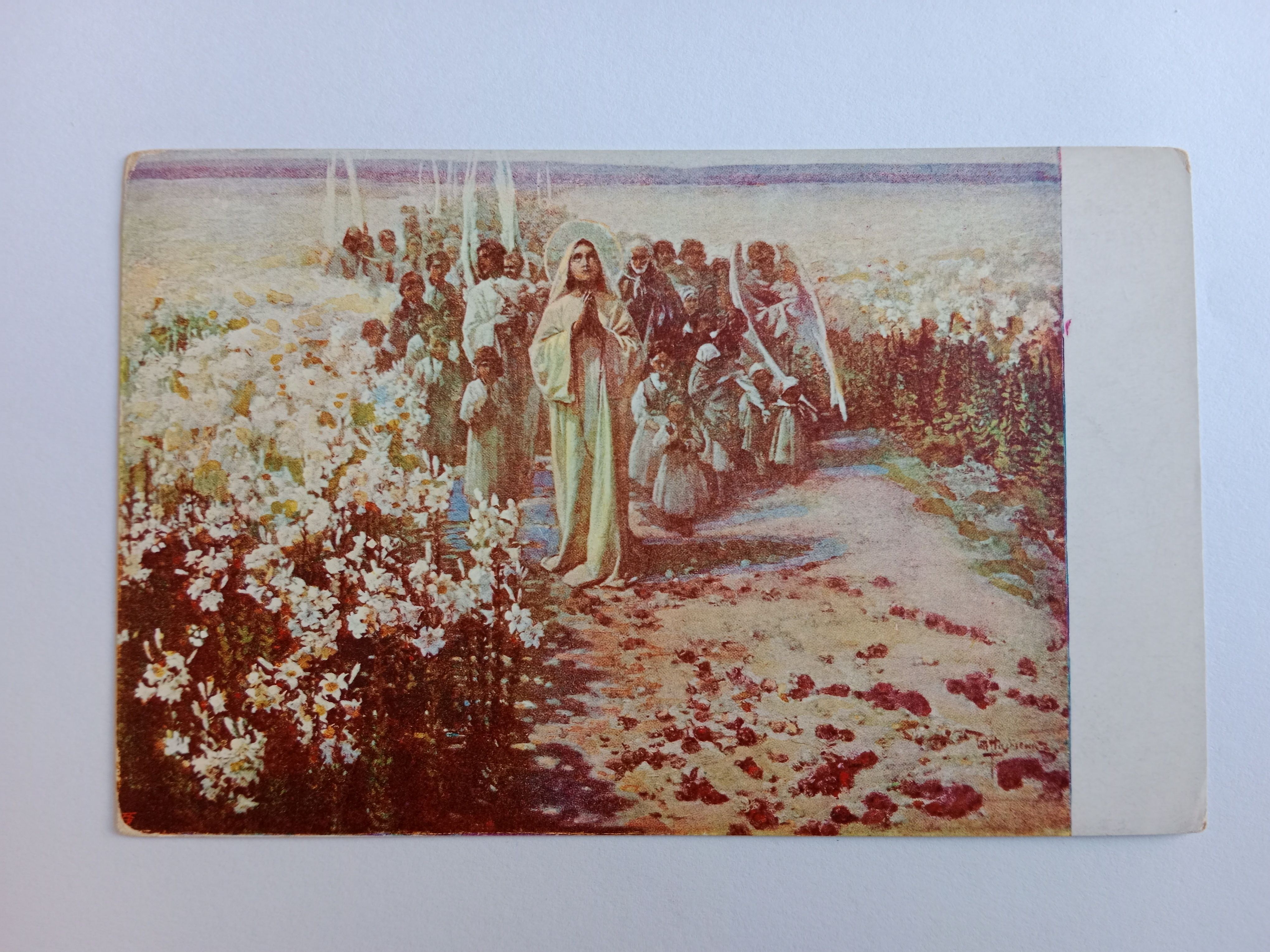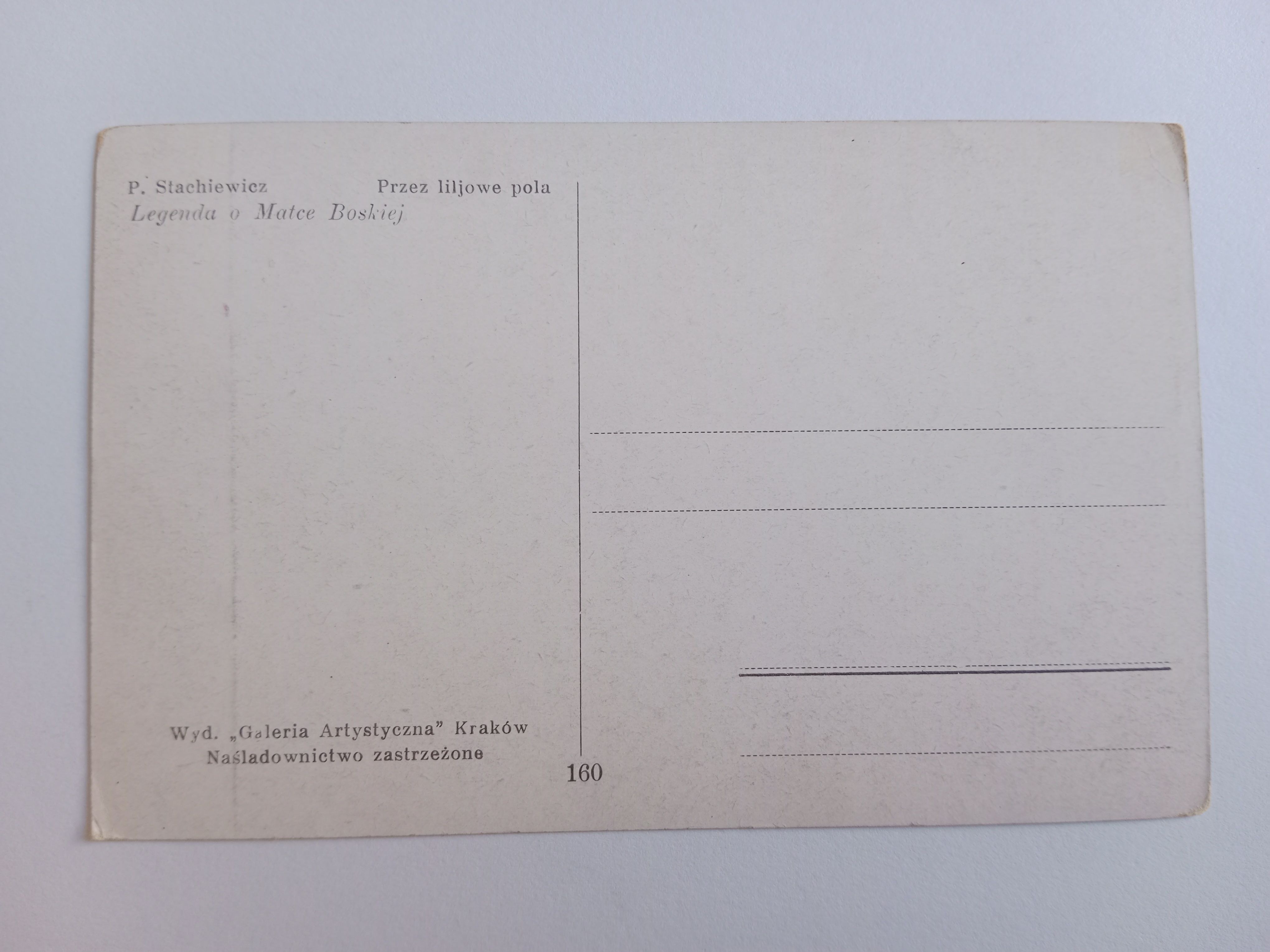 POCZTÓWKA MALARSTWO POLSKIE STACHIEWICZ PRZEZ LILJOWE POLA LEGENDA O MATCE BOSKIEJ PRZEDWOJENNA