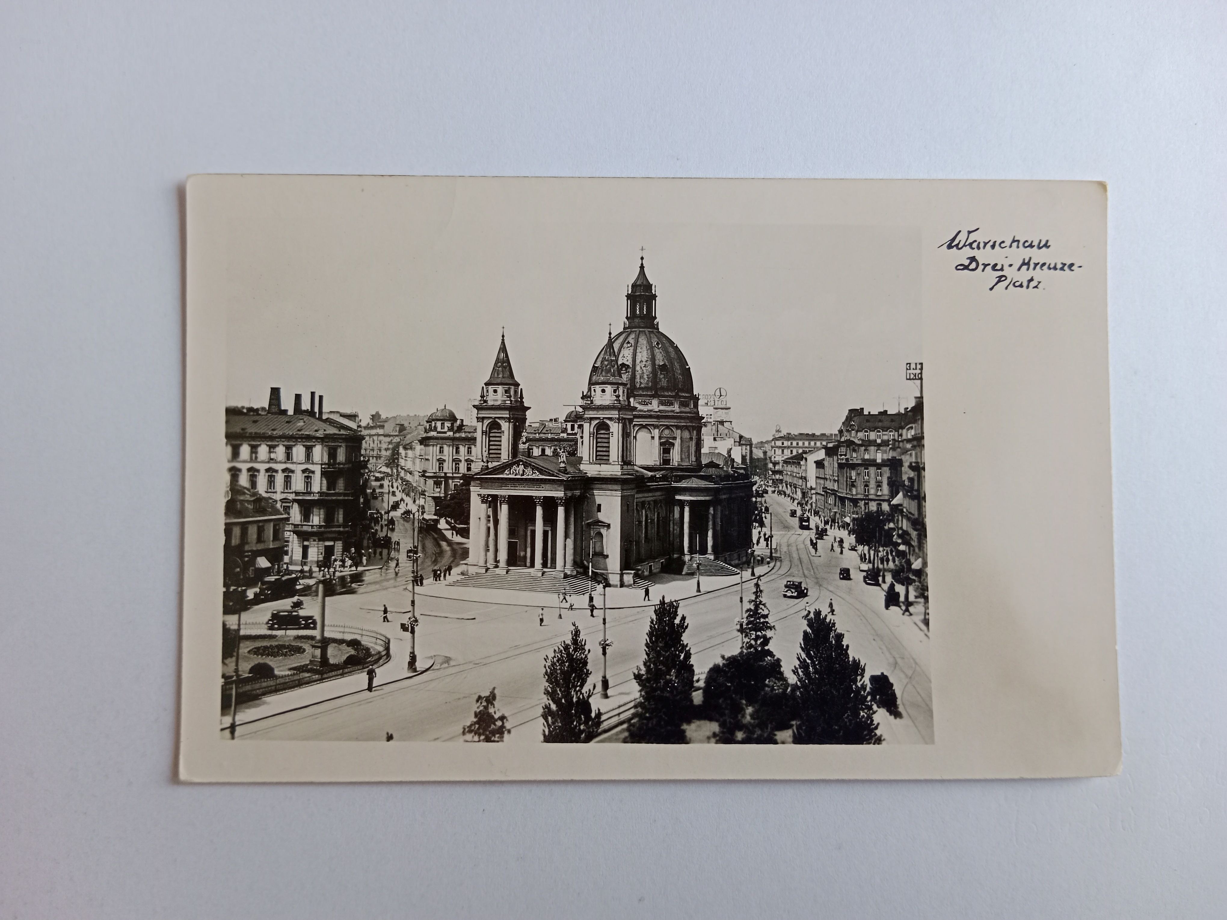 POCZTÓWKA WARSZAWA WARSCHAU PLAC TRZECH KRZYŻY 1943 R