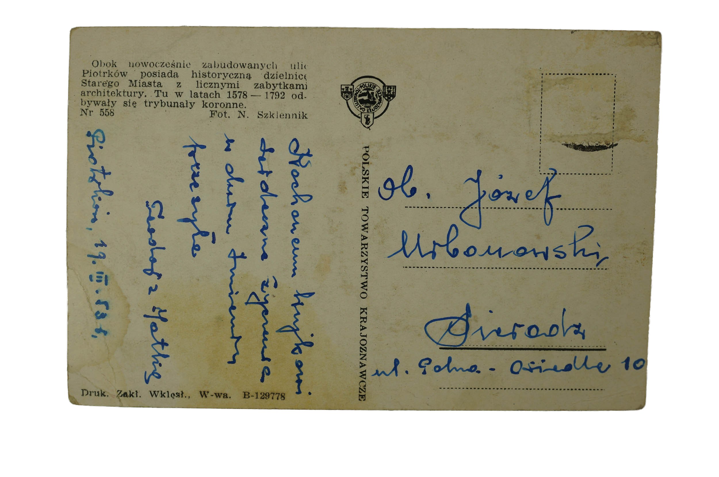 PIOTRKÓW TRYBUNALSKI ulica Słowackiego , obieg pocztowy 19.III.1953r. f. 13,8x9cm