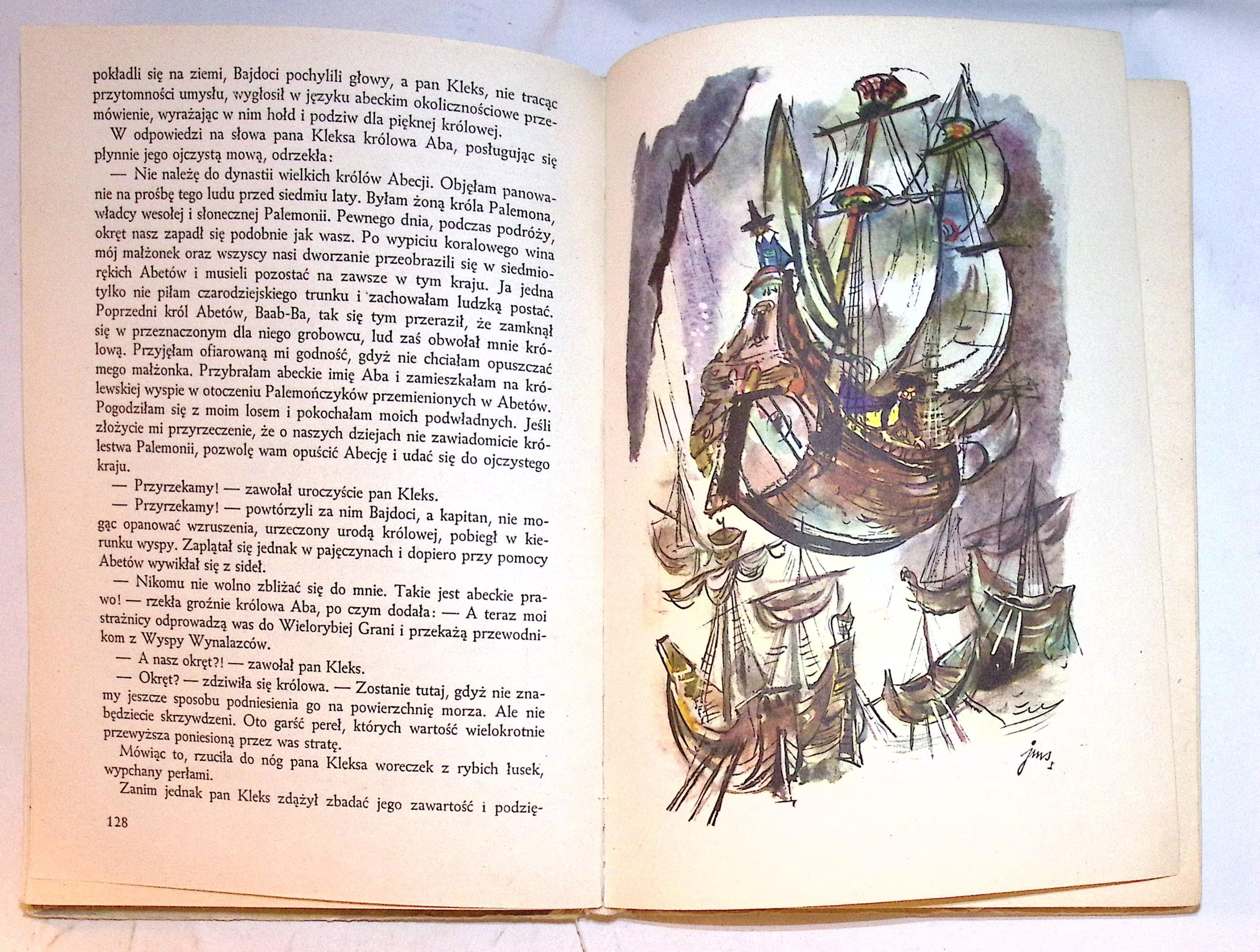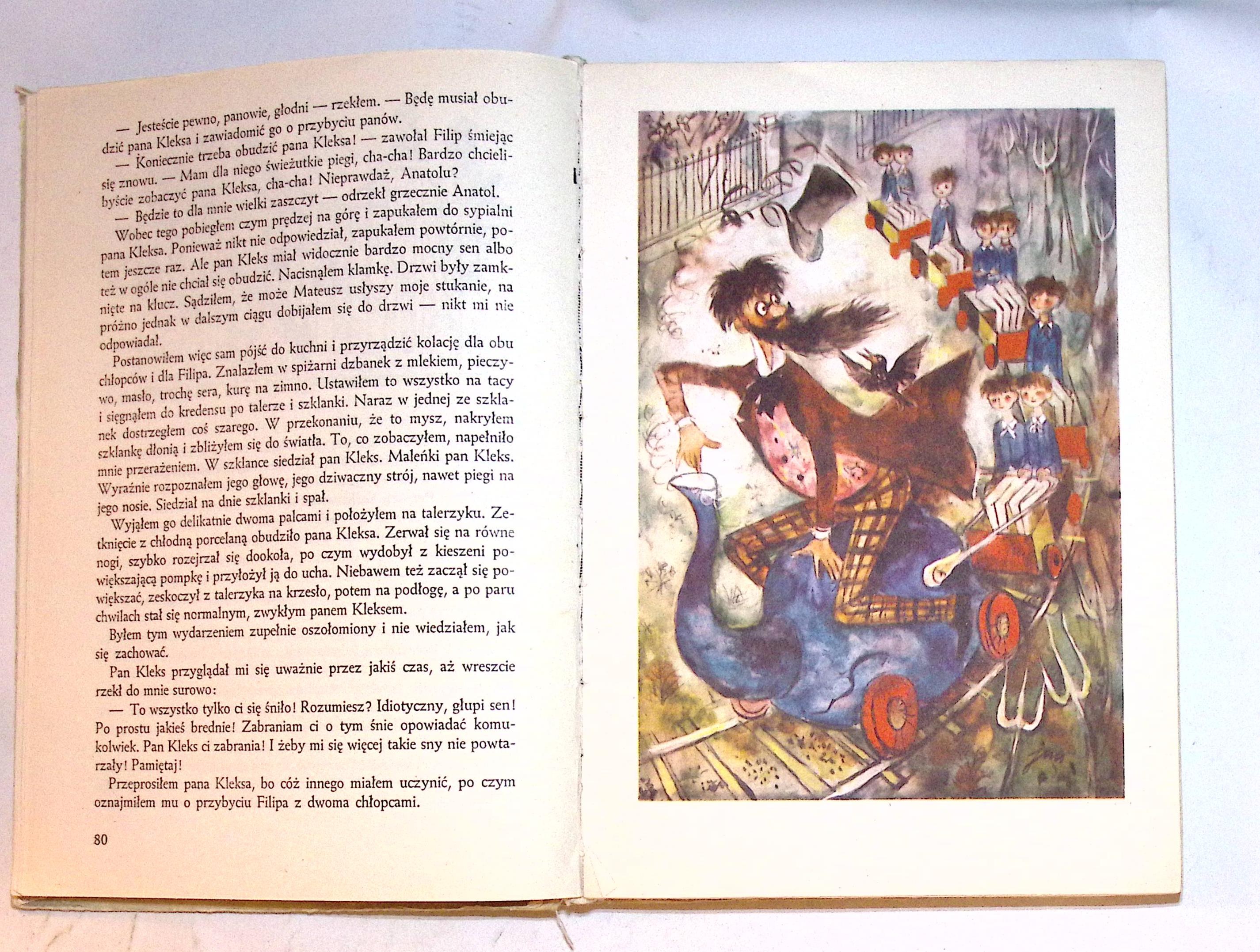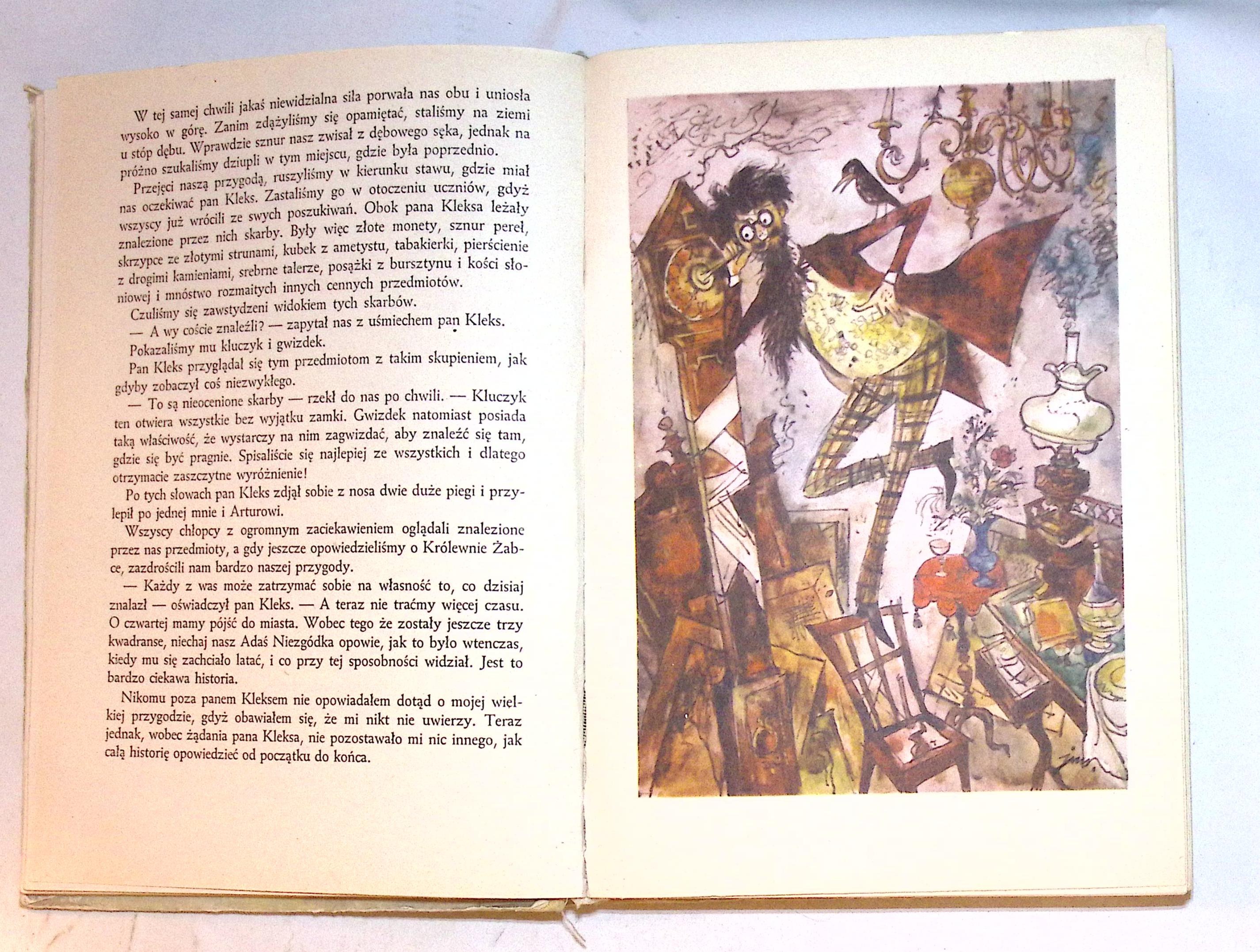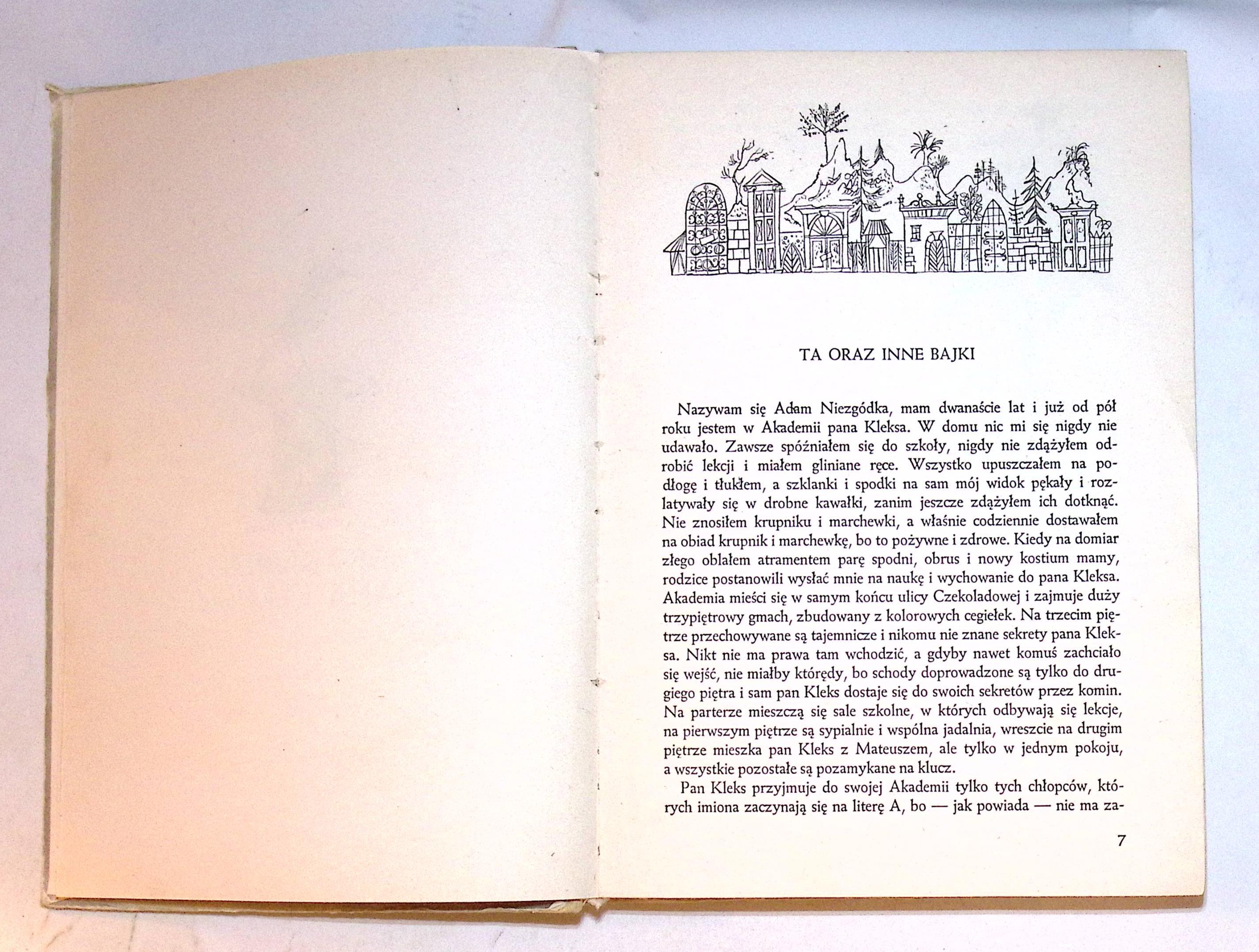 Jan BRZECHWA Pan Kleks – Akademia, Podróży, Tryumf Ilustracje: Jan Marcin Szancer Warszawa 1968 Czytelnik 333, [3] s. o. oryginalna półpłócienna s. db otarcia krawędzi okładki, pęknięcie wyklejki wzdłuż linii zgięcia „Pan Kleks” Jana Brzechwy, ozdobiony charakterystycznymi ilustracjami Jana Marcina Szancera, stanowi jedną z najbardziej rozpoznawalnych polskich książek dla dzieci. Autor, znany z humorystycznych i pełnych wyobraźni wierszy, stworzył opowieść o niezwykłym profesorze i jego magicznej Akademii, gdzie codzienność miesza się z czarami, a mądre przesłania przeplatają się z przygodami. Szancer, wybitny ilustrator, wzbogacił tekst subtelnymi, a zarazem barwnymi rysunkami, idealnie oddającymi fantastyczny klimat historii. Wspólne dzieło Brzechwy i Szancera do dziś zachwyca młodych czytelników dowcipem i ciepłem, a zarazem zachęca do nieskrępowanej kreatywności. |