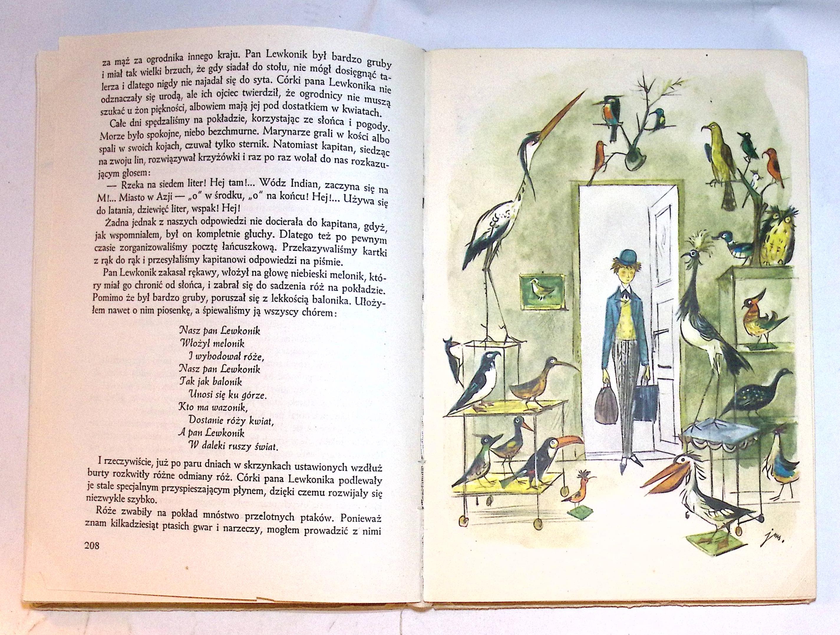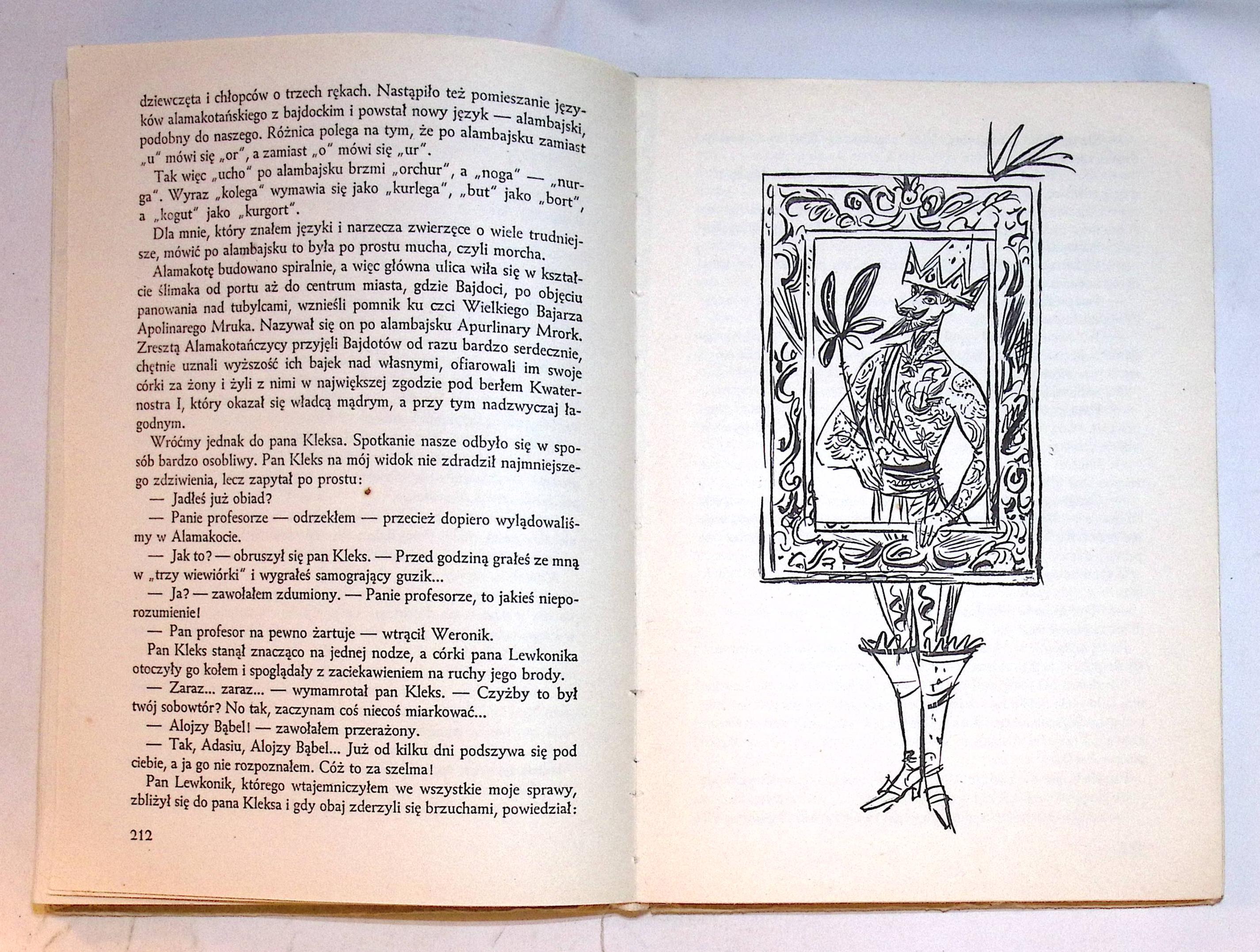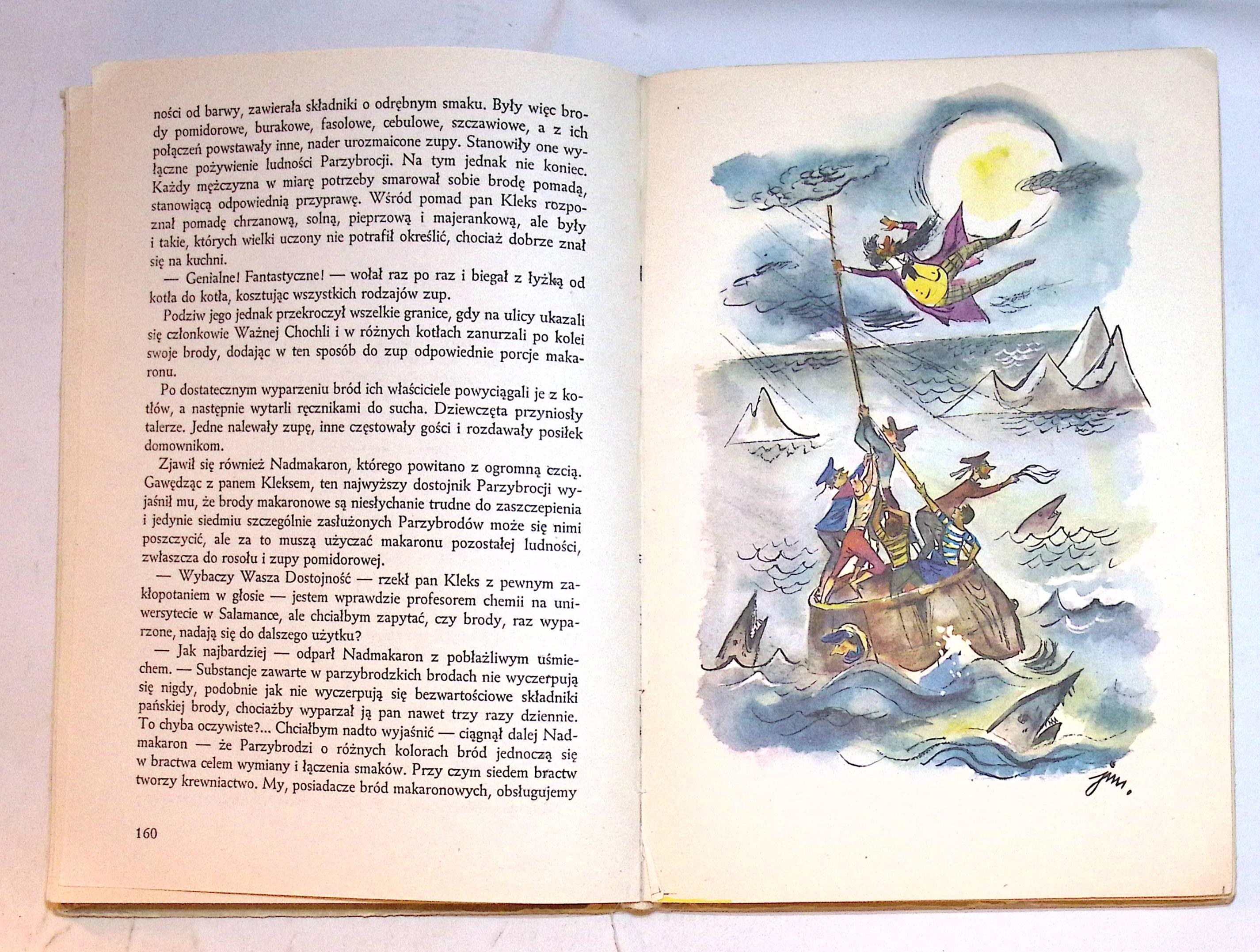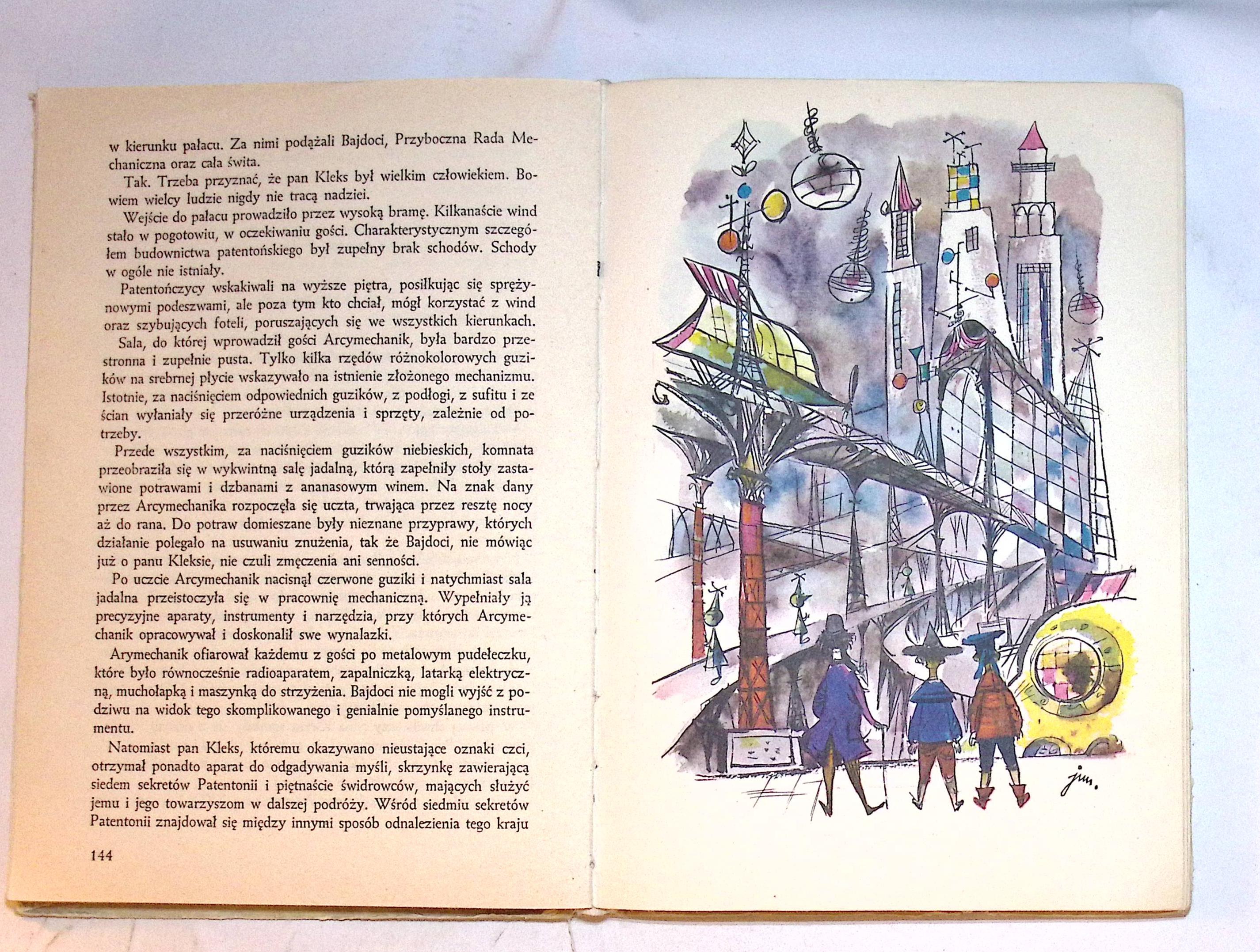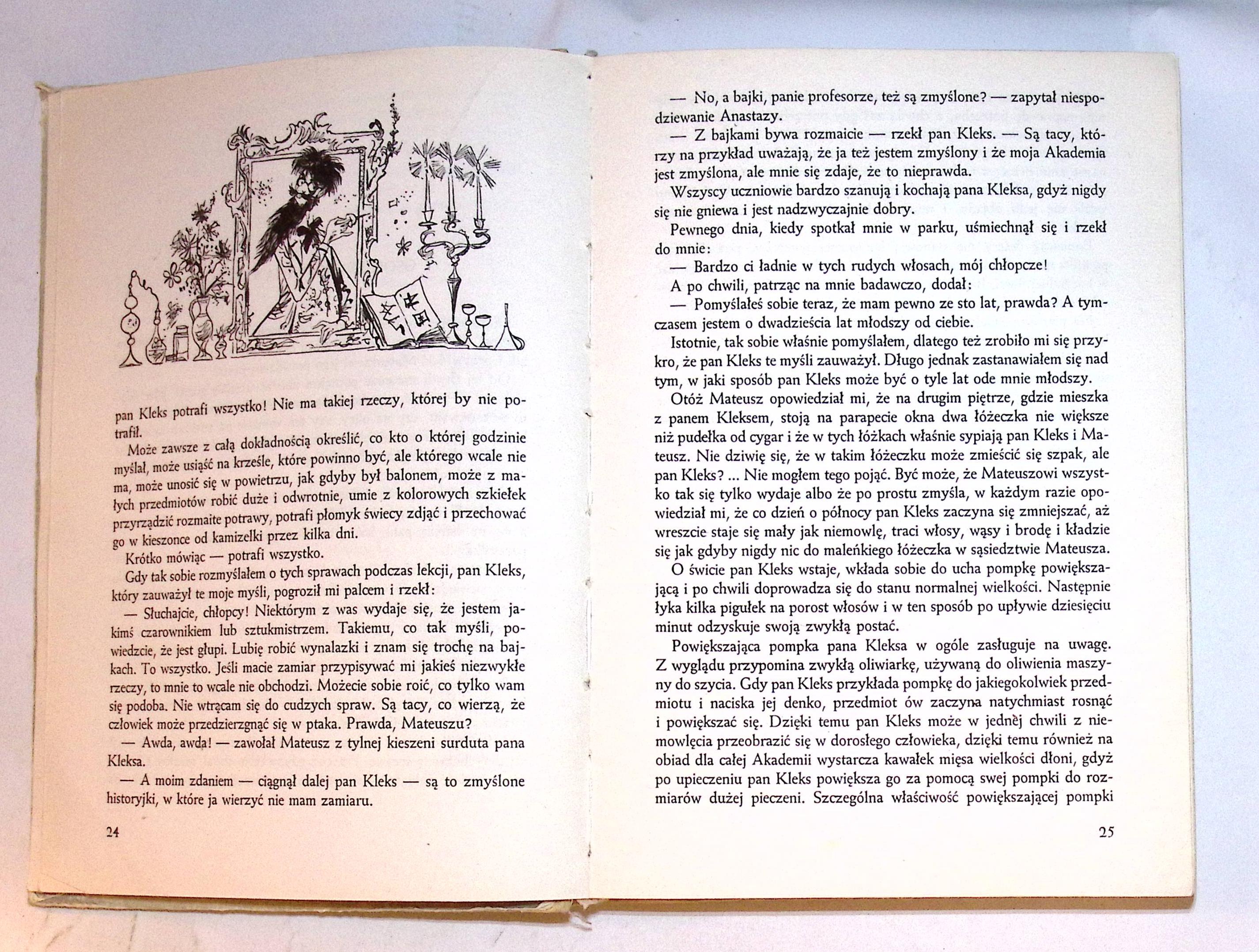 Jan BRZECHWA Pan Kleks – Akademia, Podróży, Tryumf Ilustracje: Jan Marcin Szancer Warszawa 1968 Czytelnik 333, [3] s. o. oryginalna półpłócienna s. db otarcia krawędzi okładki, pęknięcie wyklejki wzdłuż linii zgięcia „Pan Kleks” Jana Brzechwy, ozdobiony charakterystycznymi ilustracjami Jana Marcina Szancera, stanowi jedną z najbardziej rozpoznawalnych polskich książek dla dzieci. Autor, znany z humorystycznych i pełnych wyobraźni wierszy, stworzył opowieść o niezwykłym profesorze i jego magicznej Akademii, gdzie codzienność miesza się z czarami, a mądre przesłania przeplatają się z przygodami. Szancer, wybitny ilustrator, wzbogacił tekst subtelnymi, a zarazem barwnymi rysunkami, idealnie oddającymi fantastyczny klimat historii. Wspólne dzieło Brzechwy i Szancera do dziś zachwyca młodych czytelników dowcipem i ciepłem, a zarazem zachęca do nieskrępowanej kreatywności. |
