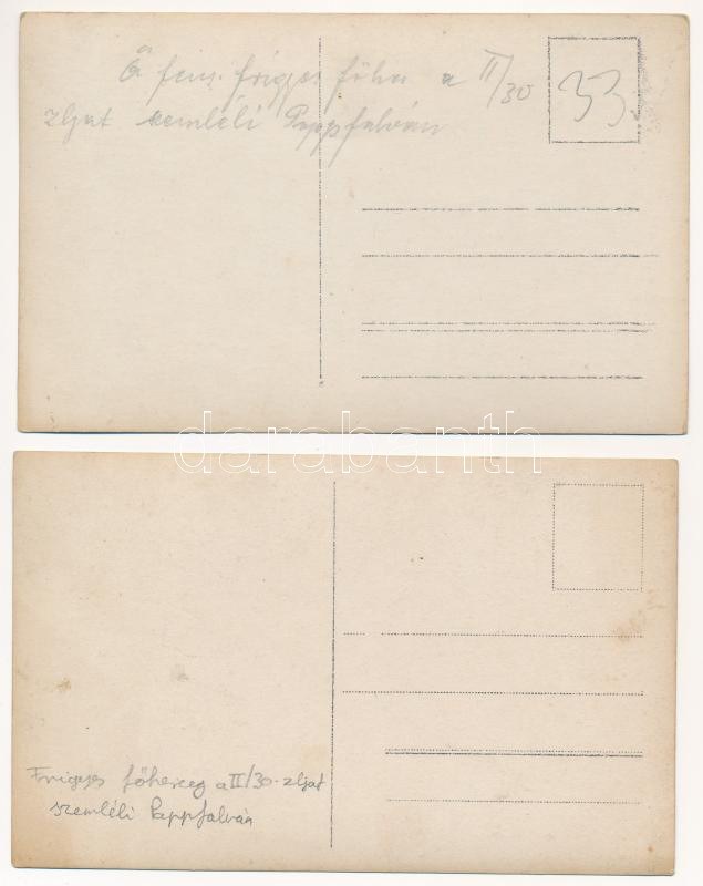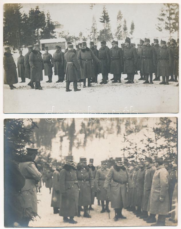 Tibau, Ciben, Pappfalva (Carlibaba, Kirlibaba, Bukovina, Bucovina); Frigyes főherceg a II/30. zászlóalj katonáit szemléli / Archduke Friedrich, Duke of Teschen with K.u.k. soldiers, WWI Austro-Hungarian military - 2 db RÉGI fotó képeslap / 2 pre-1945 photo postcards