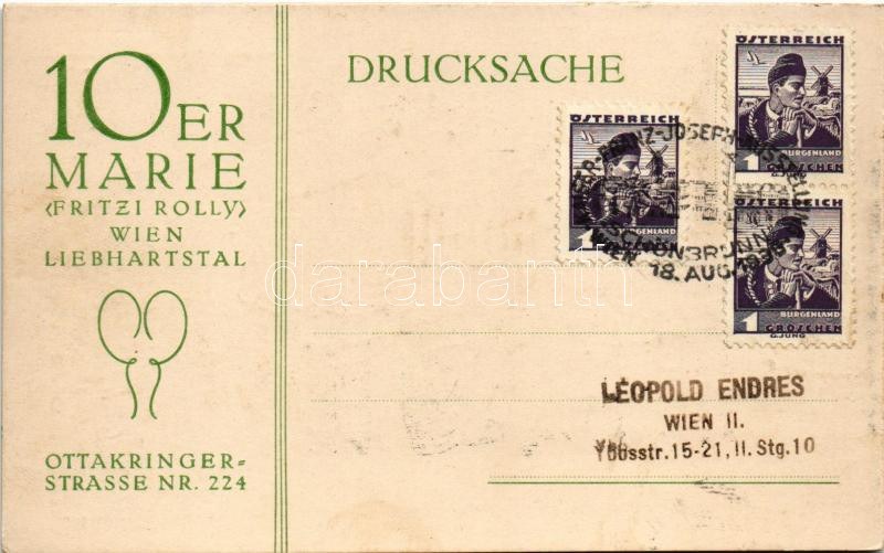 Wien, Vienna, Bécs; 10er Marie Weinhaus (Fritzi Rolly) Liebhartstal, Ottakringerstrasse Nr. 224. / wine bar advertisement. Kunstruckerei Rudolf Lager (fl)
