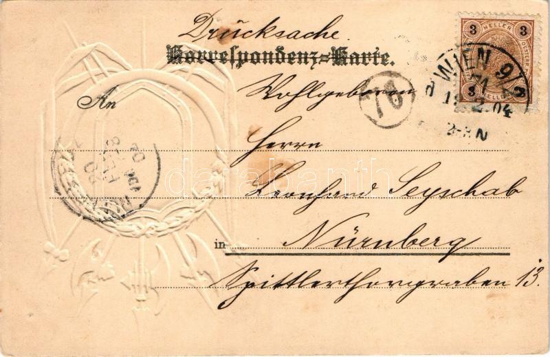 1904 Wien, Vienna, Bécs; Hofoper. A.S.W. 932. / opera house, tram, coat of arms. Art Nouveau, Emb. litho (tiny pinhole...