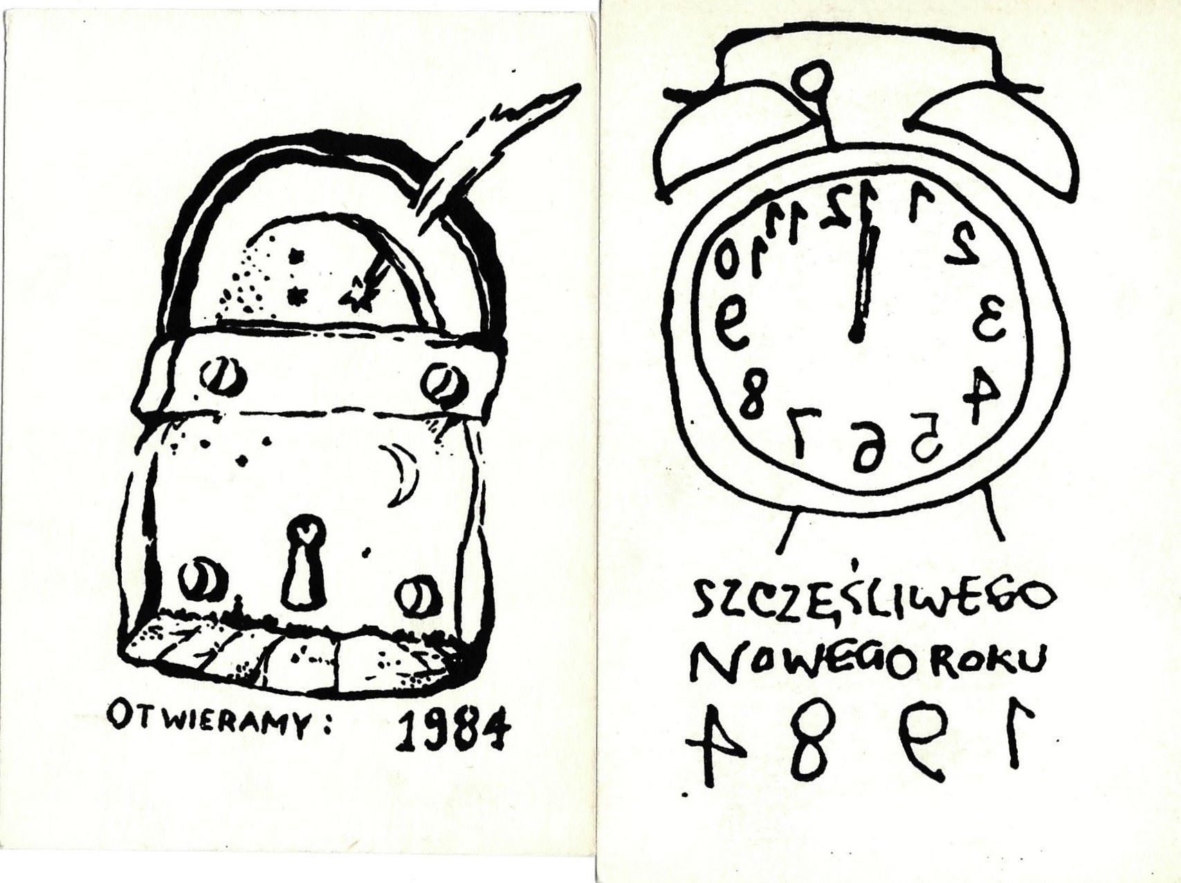 wieksza [budzik] , oraz napis: Szczęśliwego Nowego Roku 1984