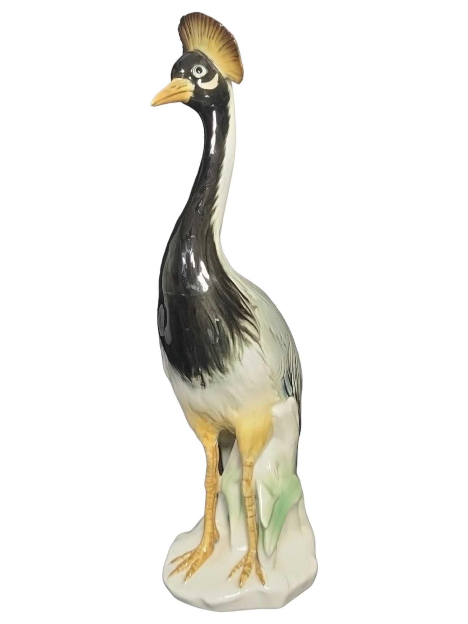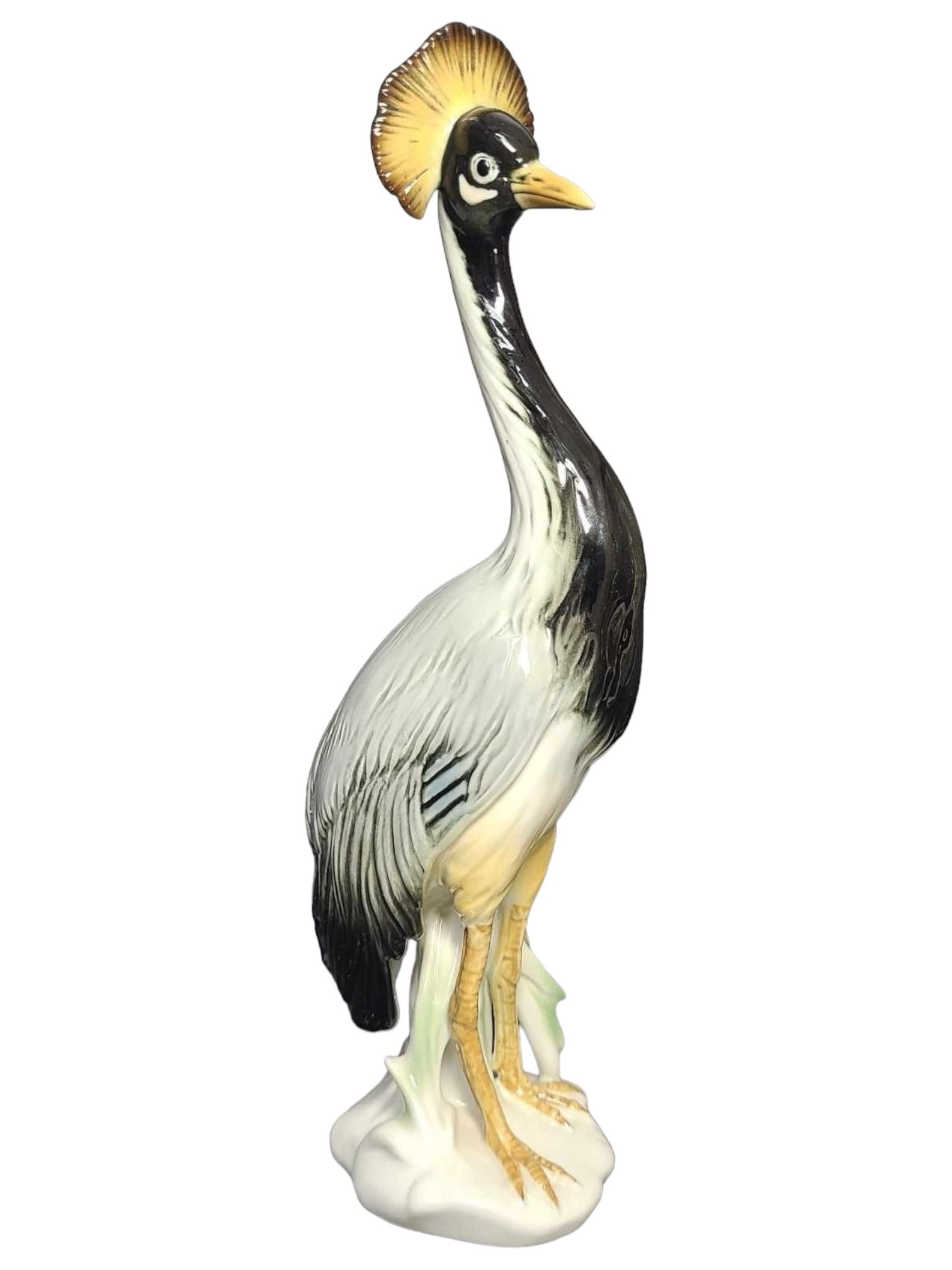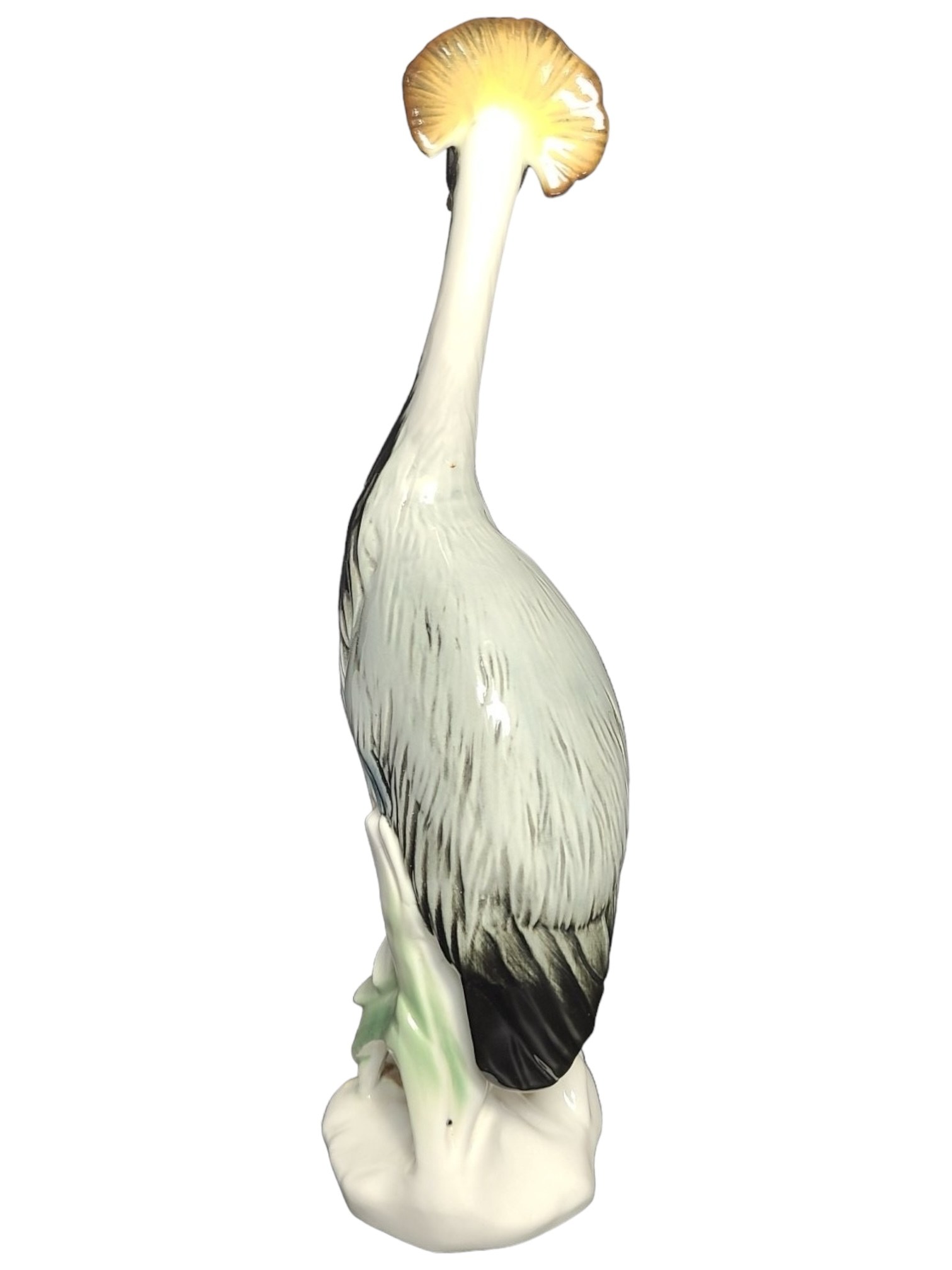 Gorgeous Karl Ens Volkstedt German porcelain Crowned Crane figure.
