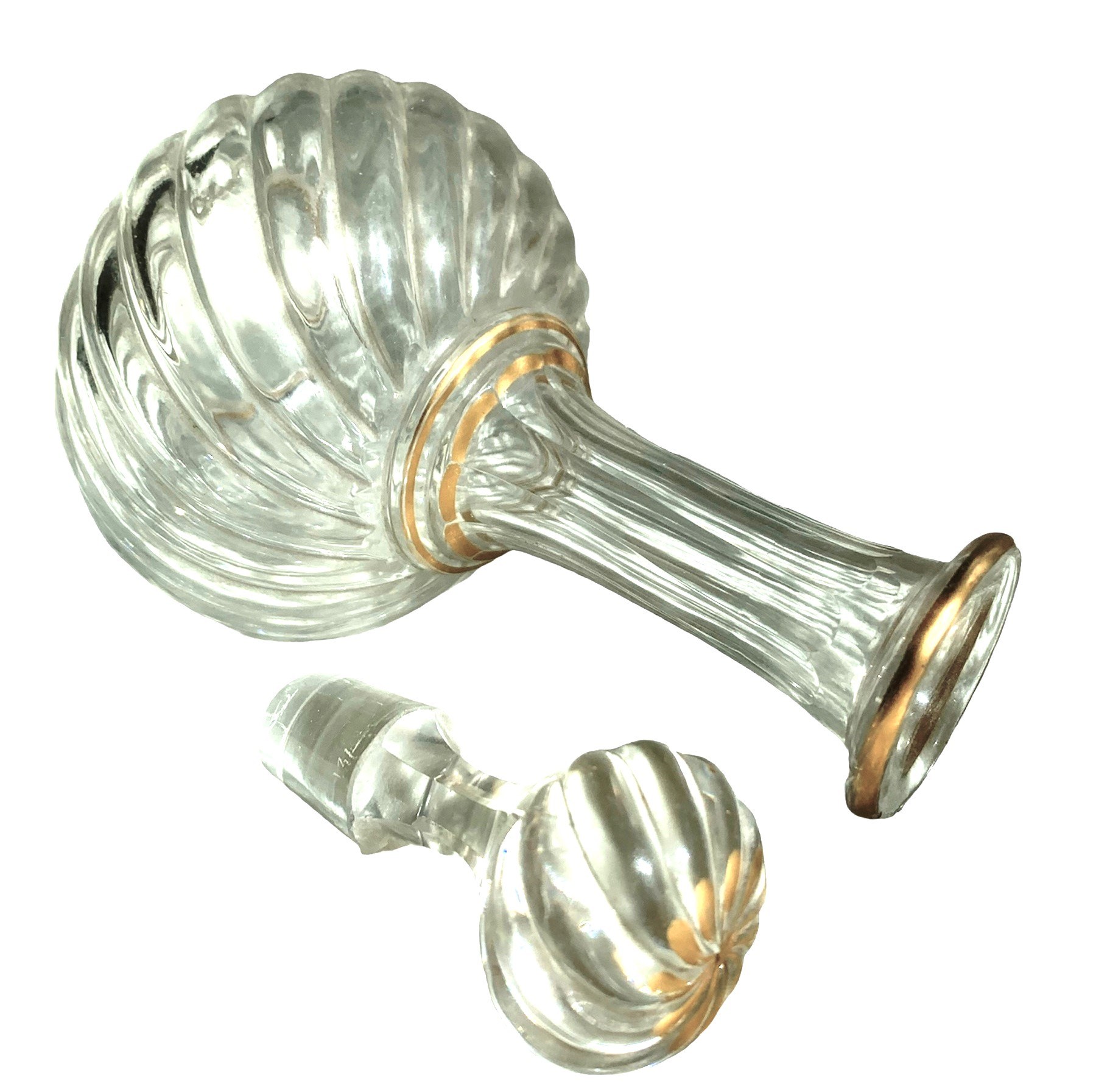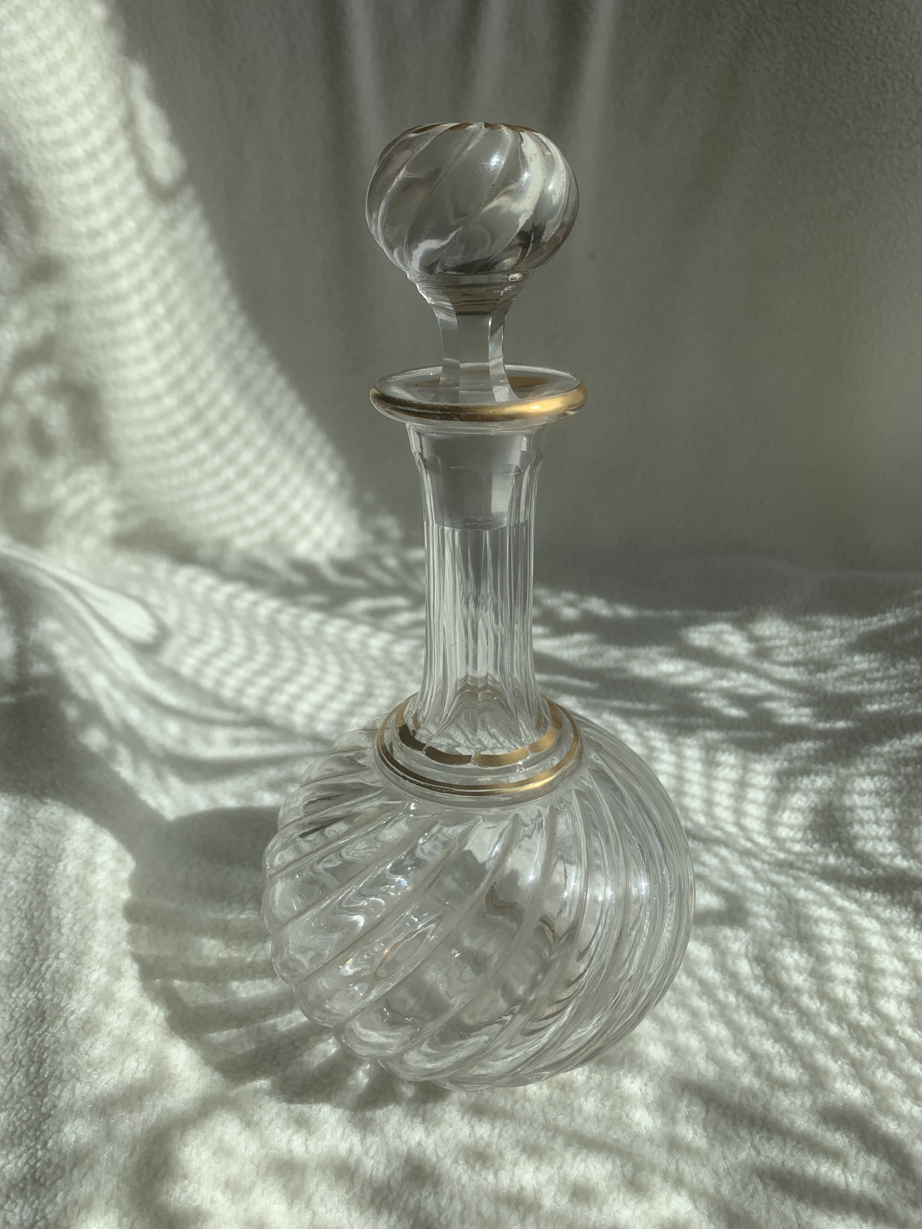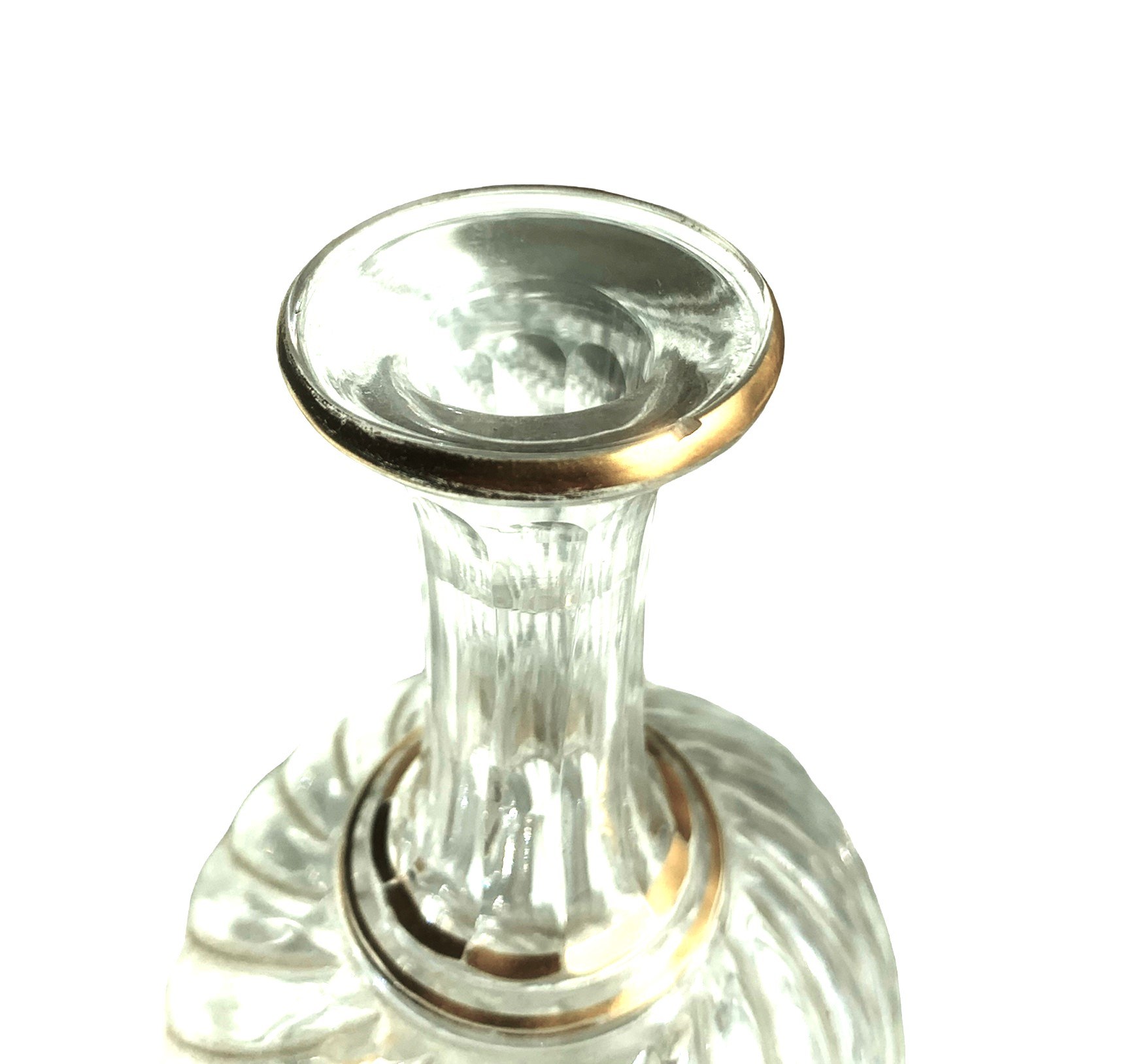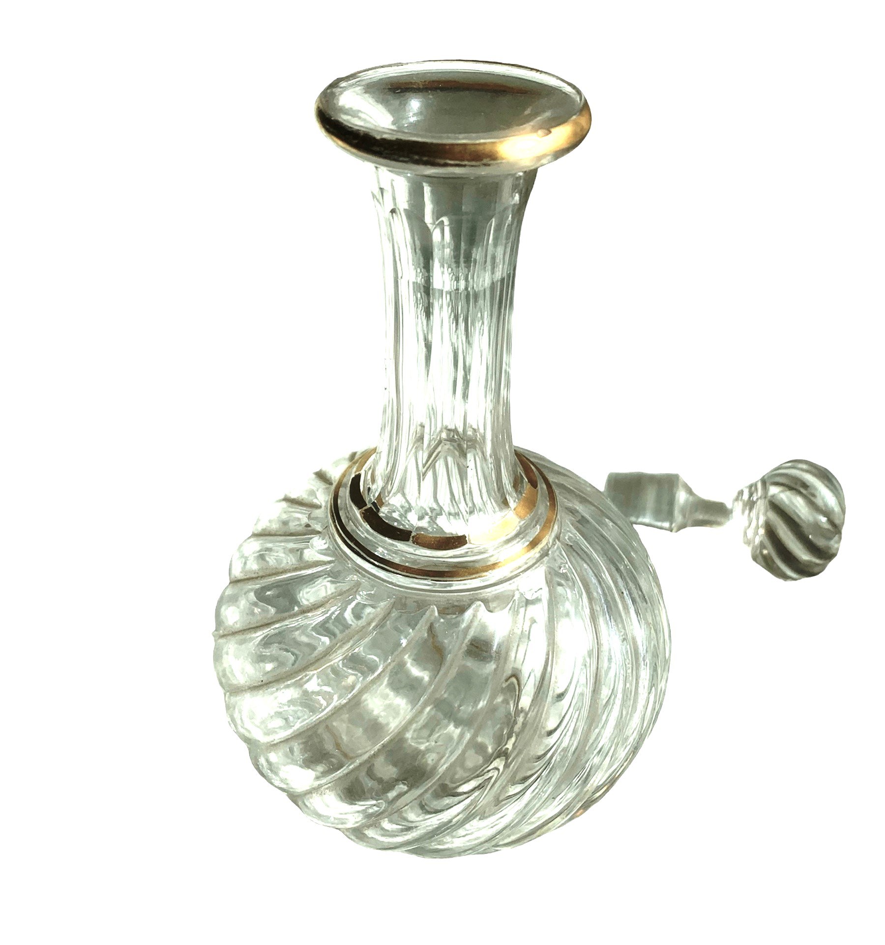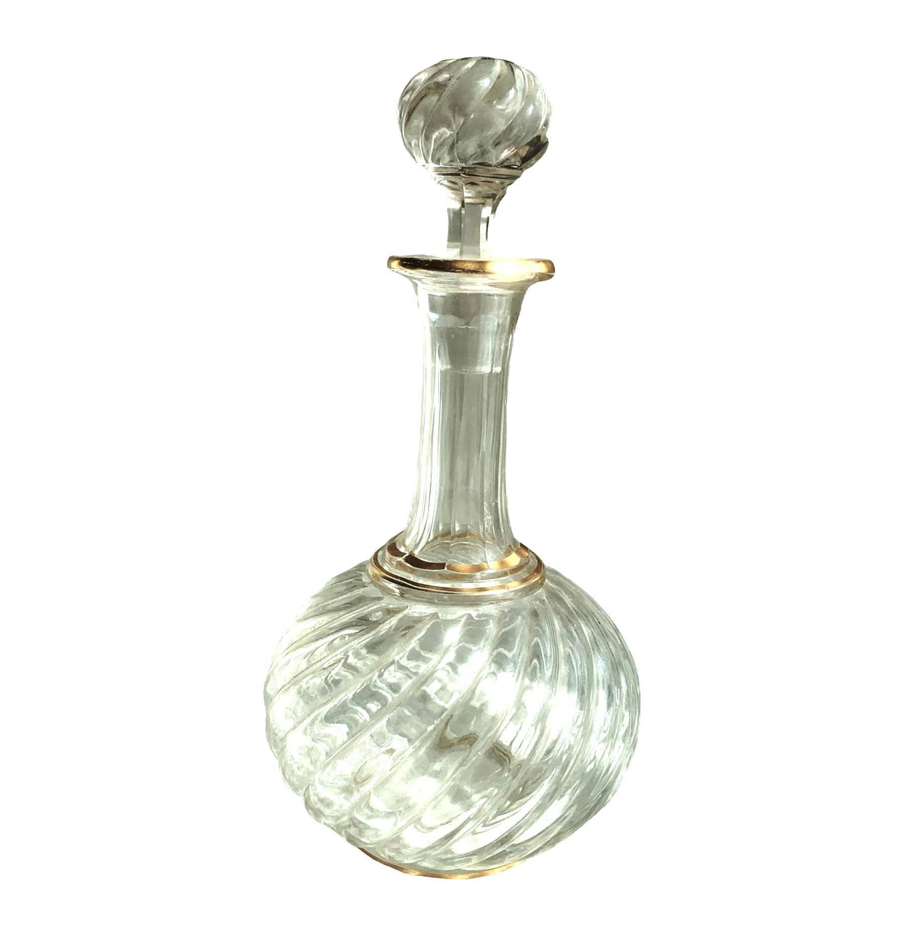 Elegancka karafka o oryginalnym kształcie, dodatkowo zdobiona złoceniami. Inspirowana (?) modelem Bambou Baccarat.