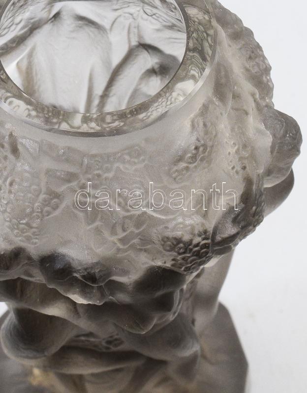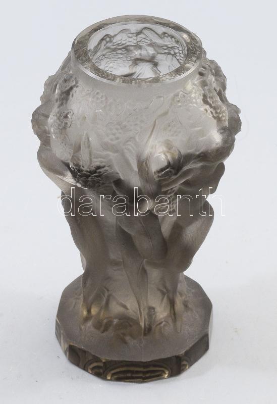 cca 1930/40, Heinrich Hoffmann vagy Curt Schlevogt manufaktúra, Frantisek Pazourek designer: Nőalakos váza. Savmaratott színezett üveg, jelzés nélkül, pattogzással, m: 13 cm /// c. 1930/40, Heinrich Hoffmann or Curt Schlevogt manufactory, designer František Pazourek: Female Figure Vase. Acid-etched colored glass, unsigned, with chipping, height: 13 cm.