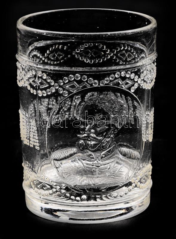 Gróf Andrássy Gyula arcképével és nevével díszített emlékpohár, jelzés nélkül, aljánál minimális pattogzással, m: 8 cm ...
