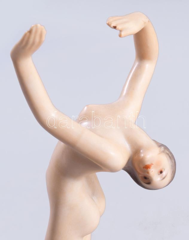 Herendi akt, kézzel festett, jelzett (Lux Elek), kis mázhibával, jelzett (masszába nyomott és rajzolt jelzéssel), 18,5 cm /// Herend Nude, hand-painted, signed (Lux Elek), with minor glaze imperfection, marked (both impressed and painted), height: 18.5 cm.