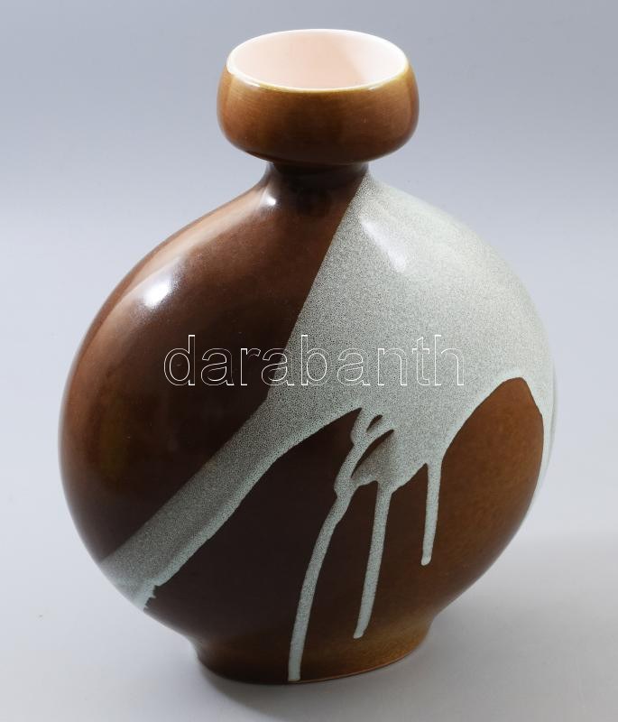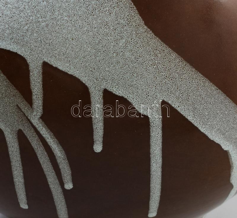 Kravsko lapított barna kerámia váza. Jelzett, lepattanással, szájánál repedéssel, m: 28 cm