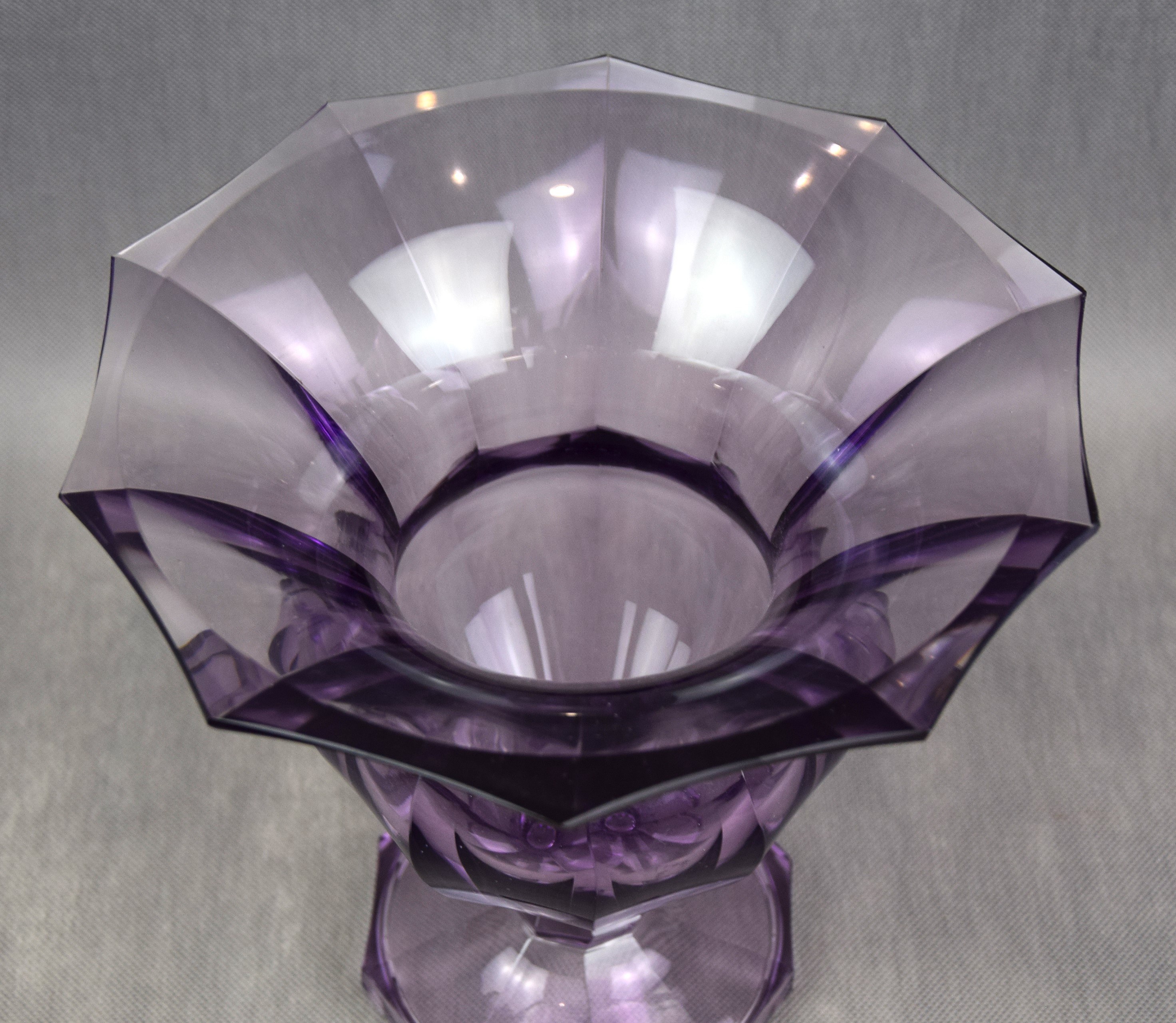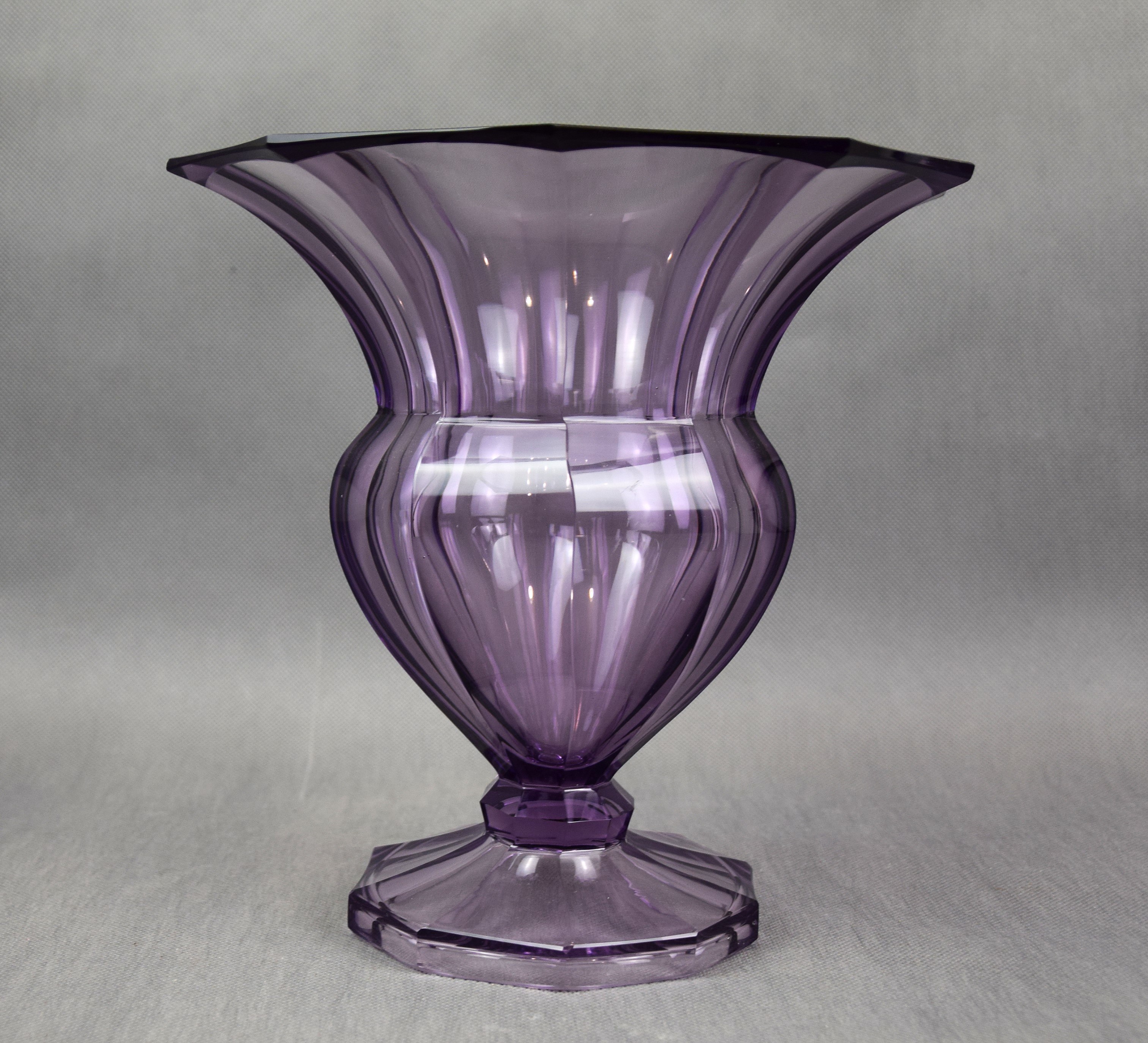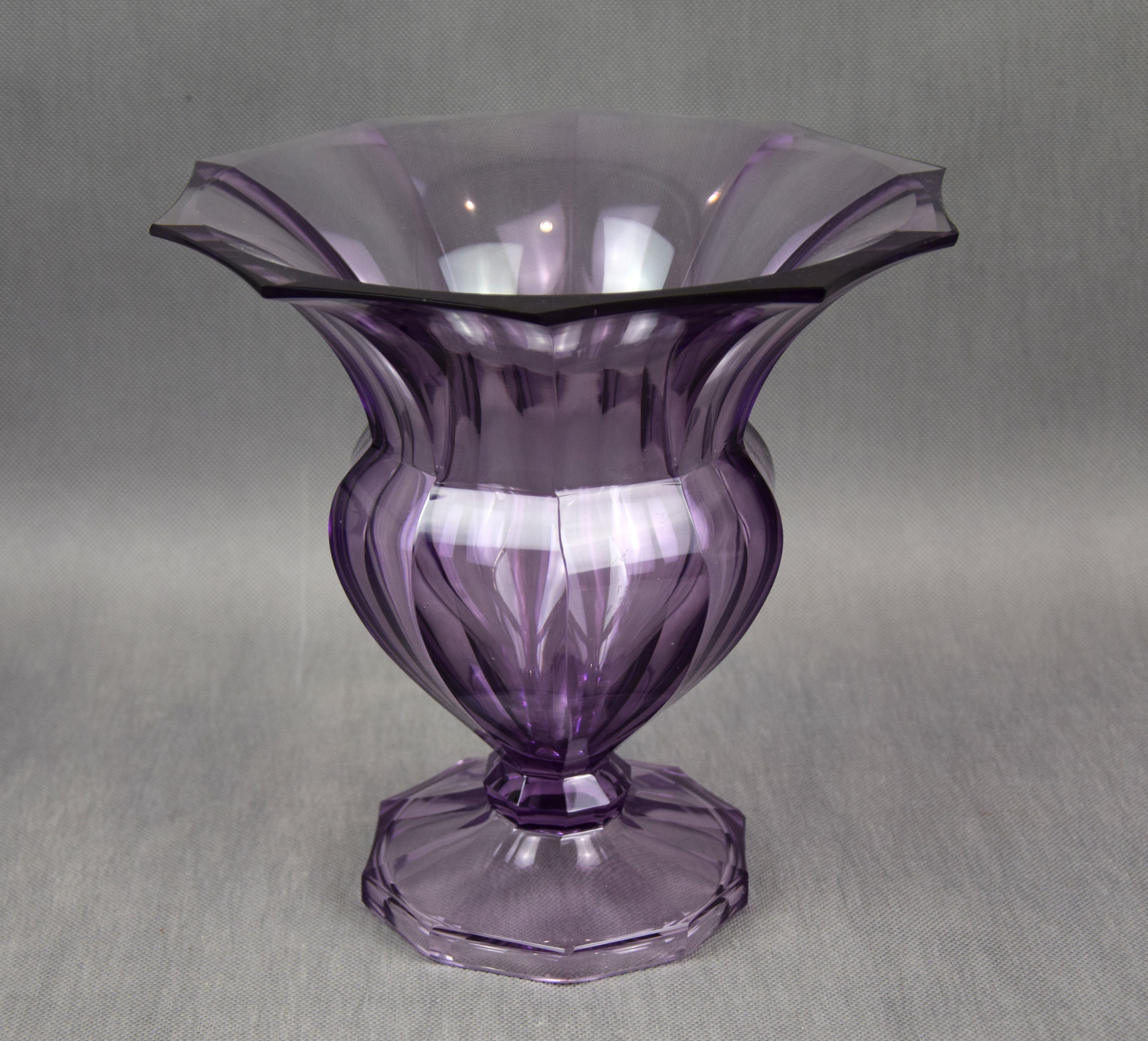 Bardzo trudny do wykonania szlifowany wazon, wymagający dużych umiejętności. Tego typu skomplikowane, szlifowane wazony były bardzo drogie w hutach przedwojennych.