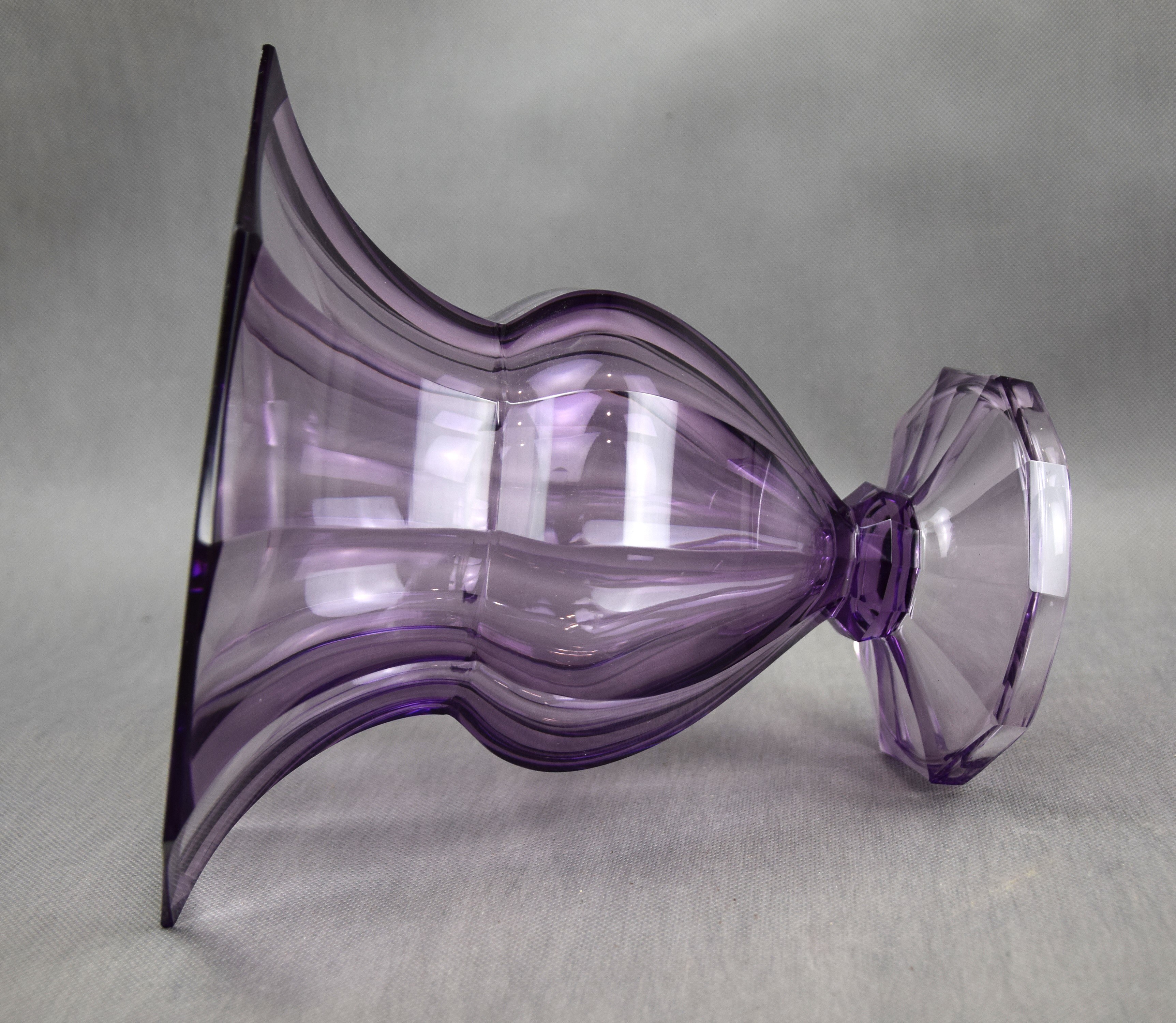 Szkło barwione w masie na kolor fioletowy, szlifowane.