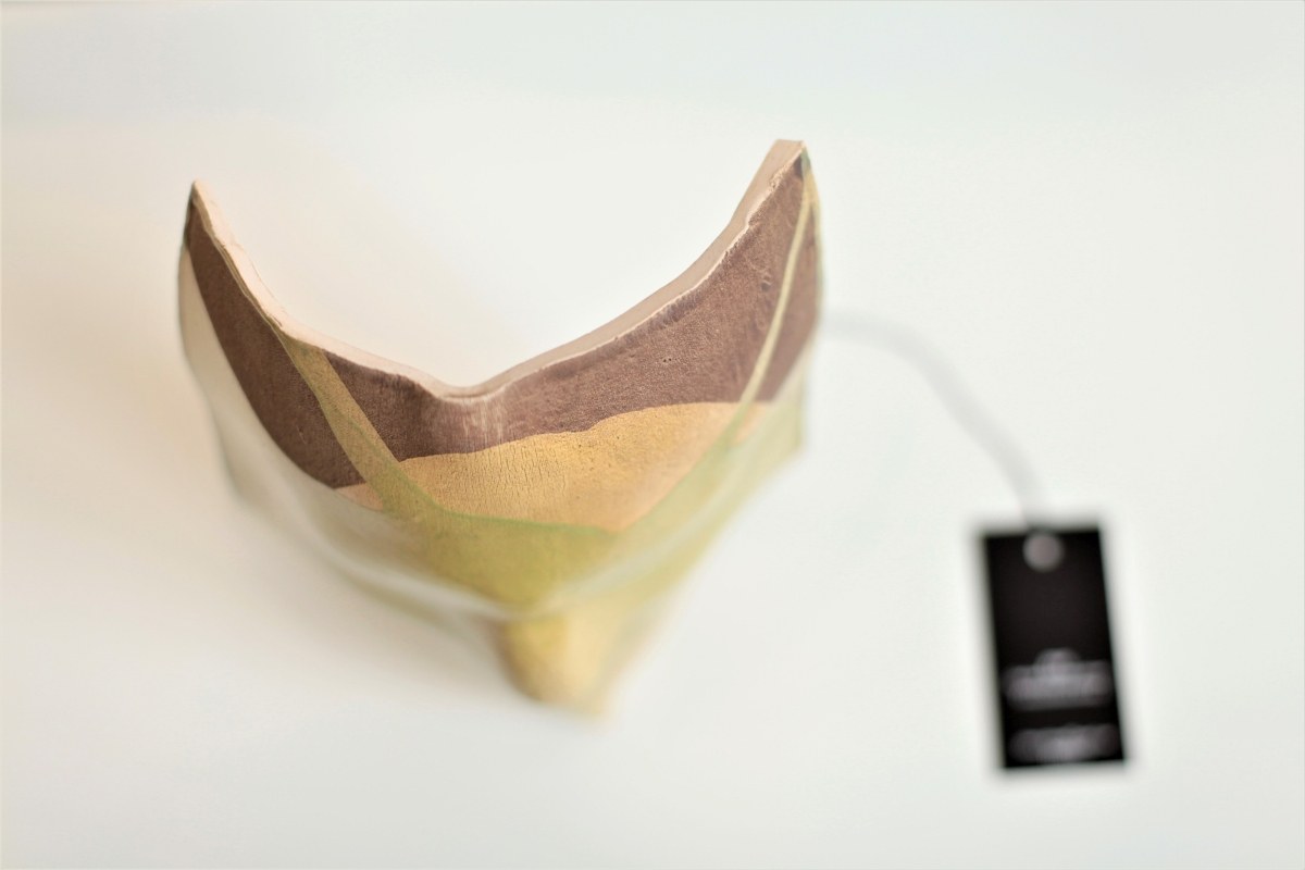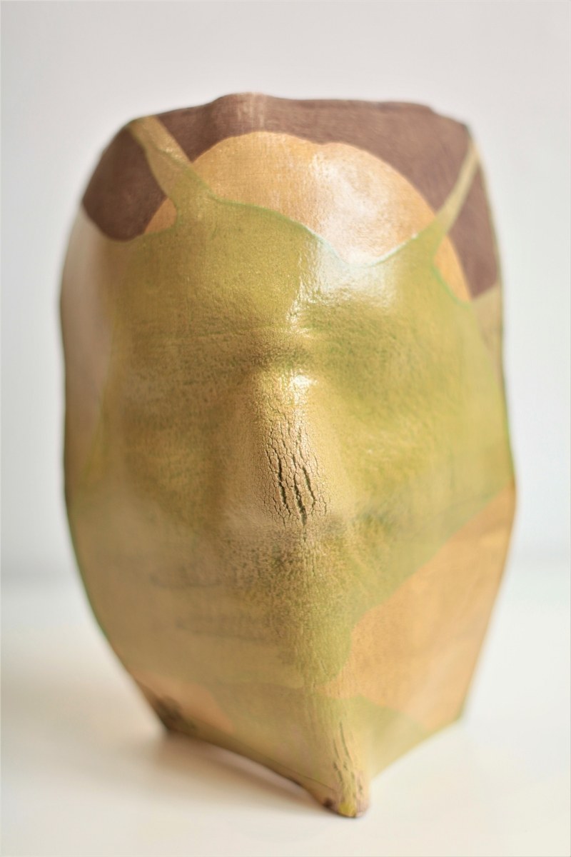 dekoracyjna maska ceramiczna szkliwiona, ręcznie wykonana, 24 x 17 x 11 cm, sygn. na froncie, l.d.: monogram