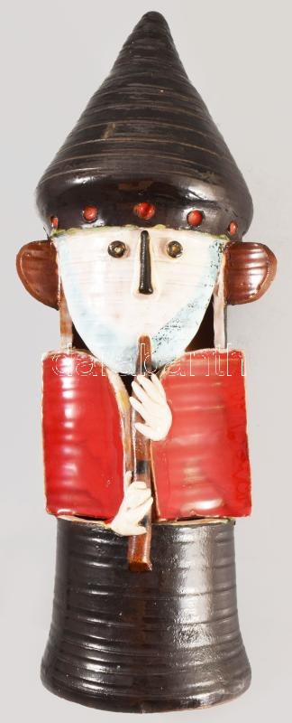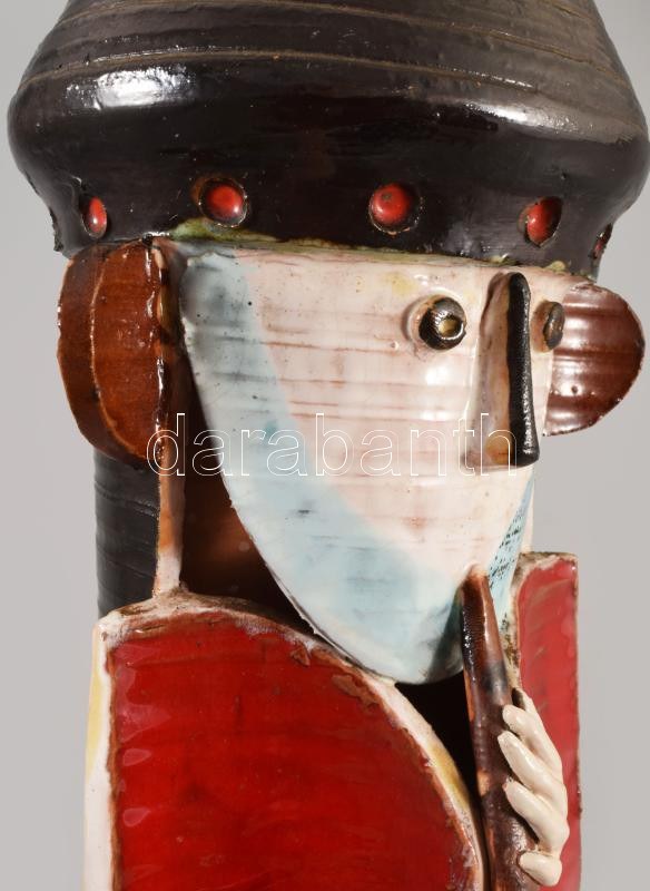 Papp János István (1934-2004): Nagyméretű mázas kerámia figura, kézzel festett, alján jelzett, 40 cm