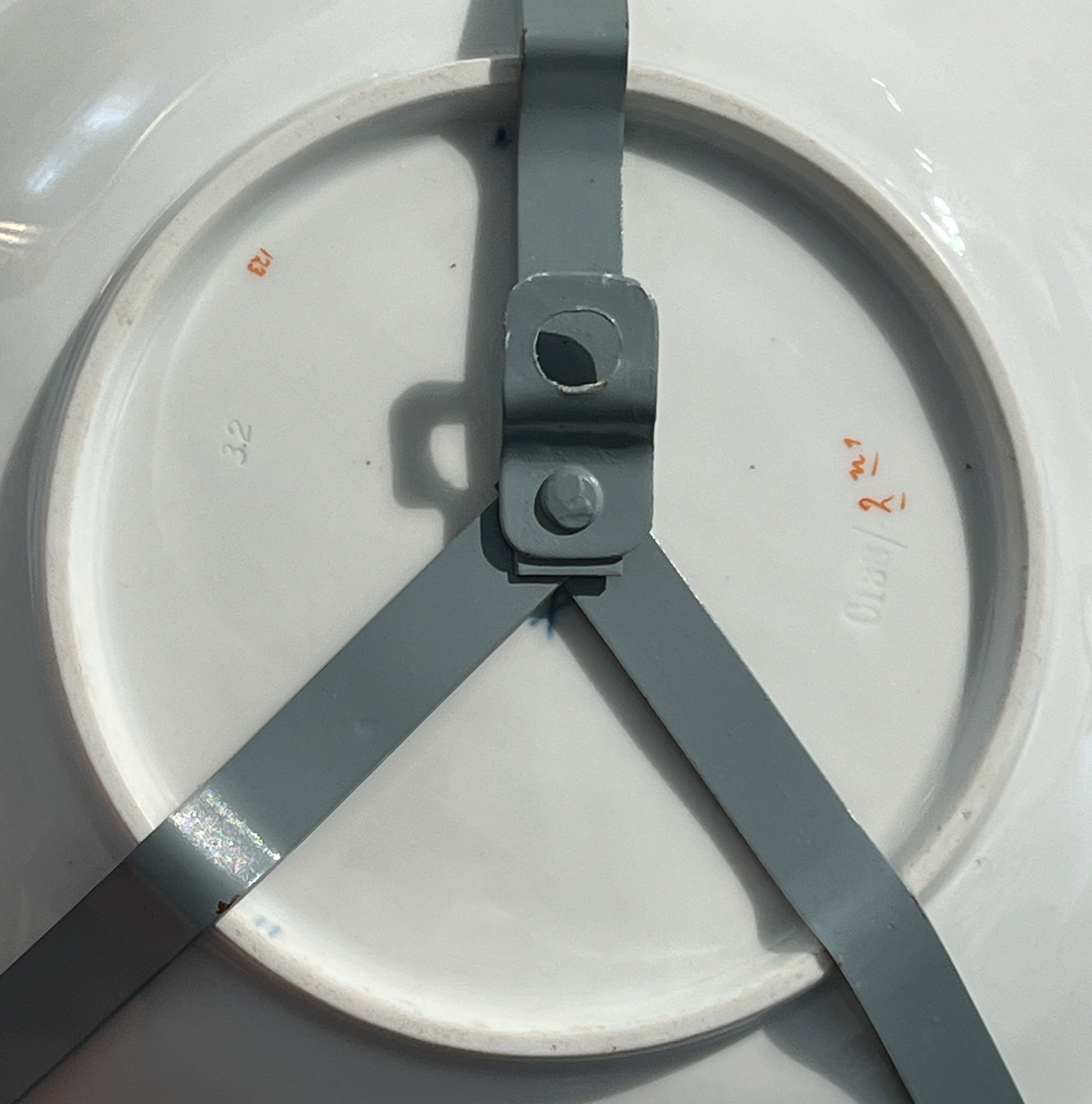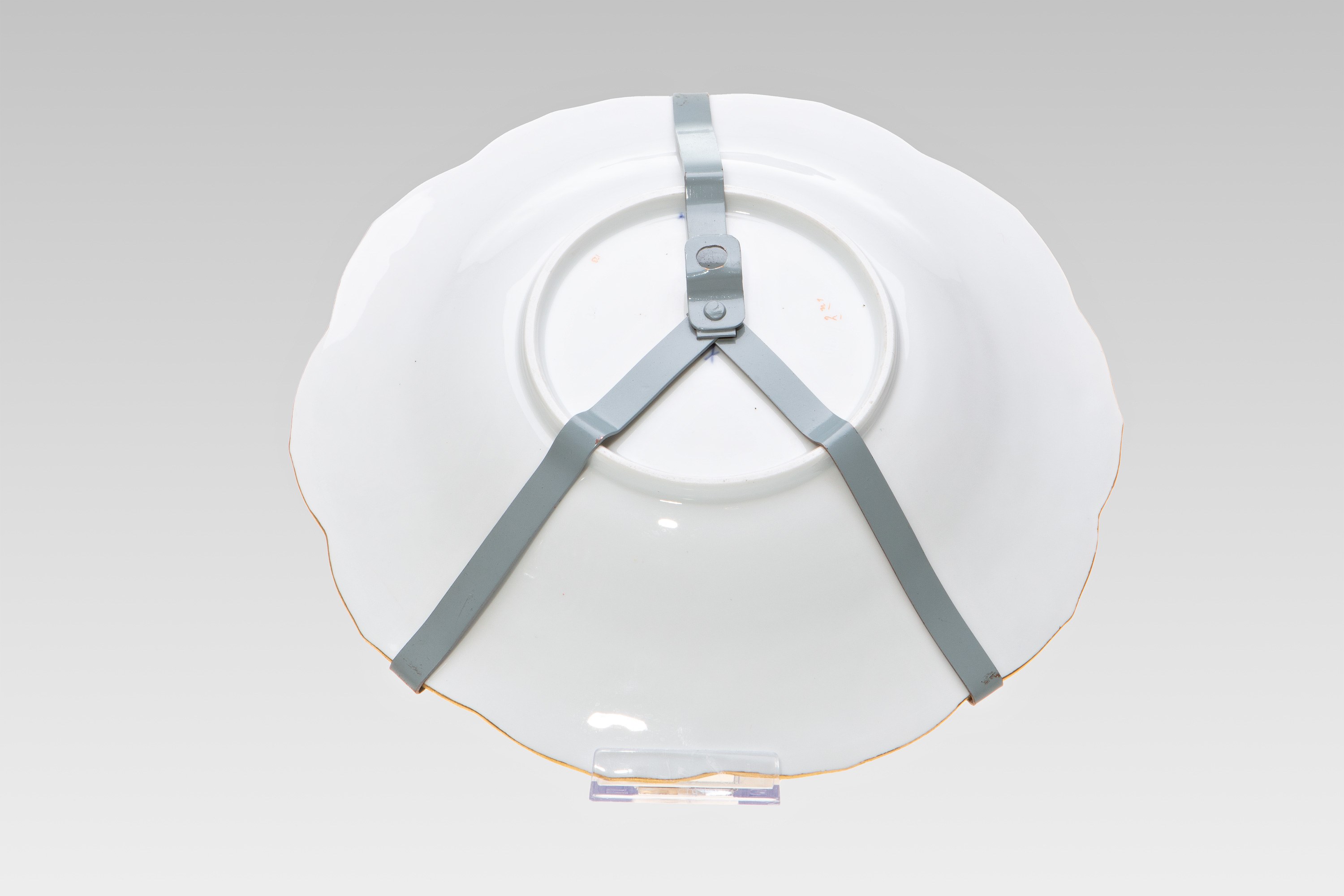 around 1900 | porcelain glazed, decorated with cobalt and gold embossed leaf decor, hanging system at the back | 27 x 6 cm (diameter x height) | marked: from below