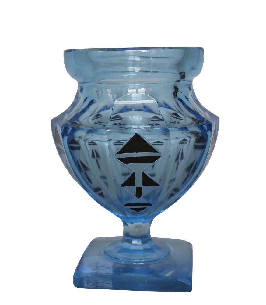 szkło kryształowe barwione niebieskie, szlifowane, malowane, wys.12.5 cm