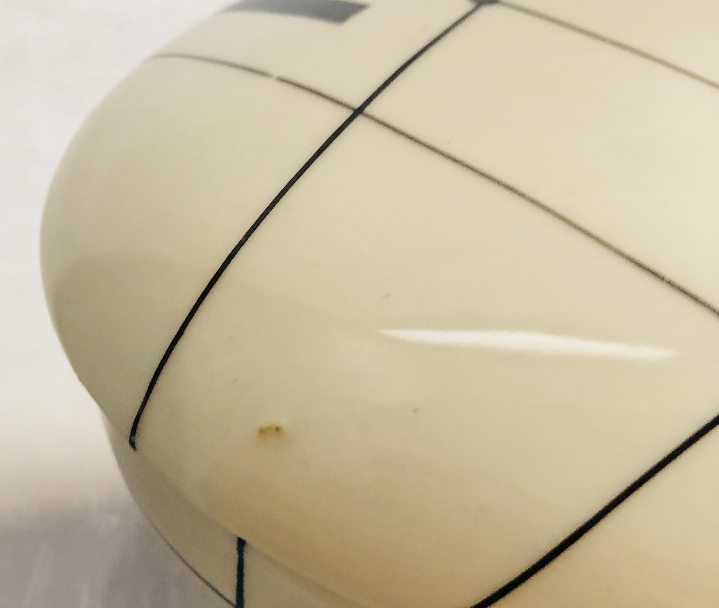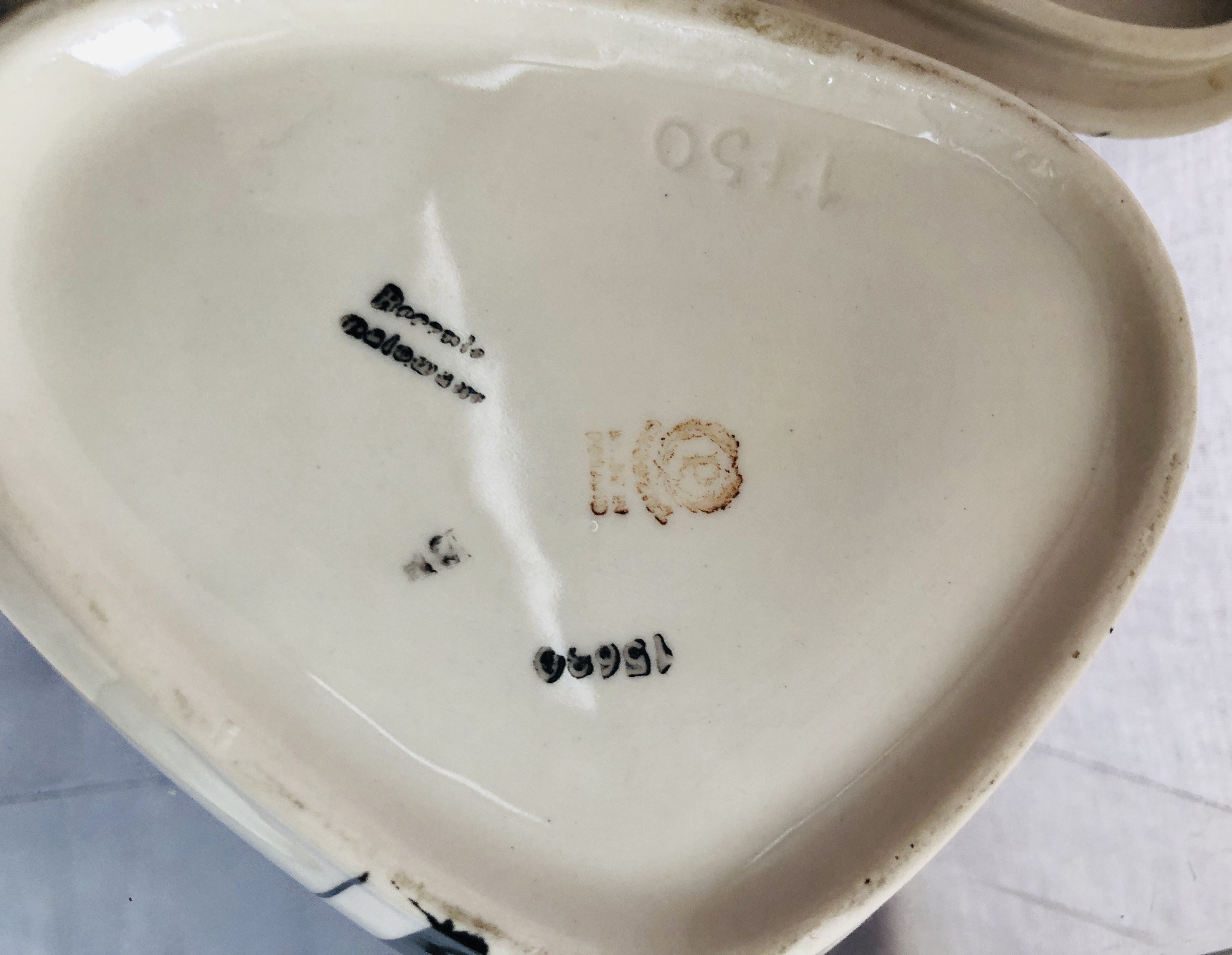 Porcelitowa bomboniera z nakryciem, New look, porcelit biały, malowany, wym, 16x13x8 cm, lata 60-te XX w. stan bdb, niewielki błąd wypału widoczny na zdjęciu.