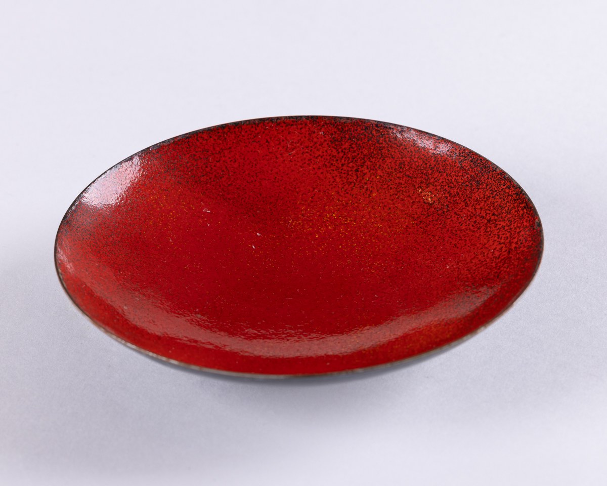 miedź, emalia, wys. 2,5 cm, śr. 12,5 cm, na spodzie sygnatura z symbolem ryby