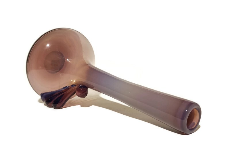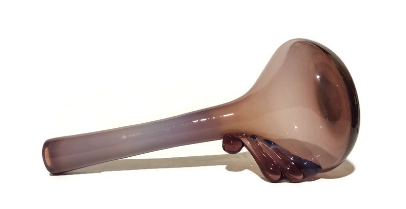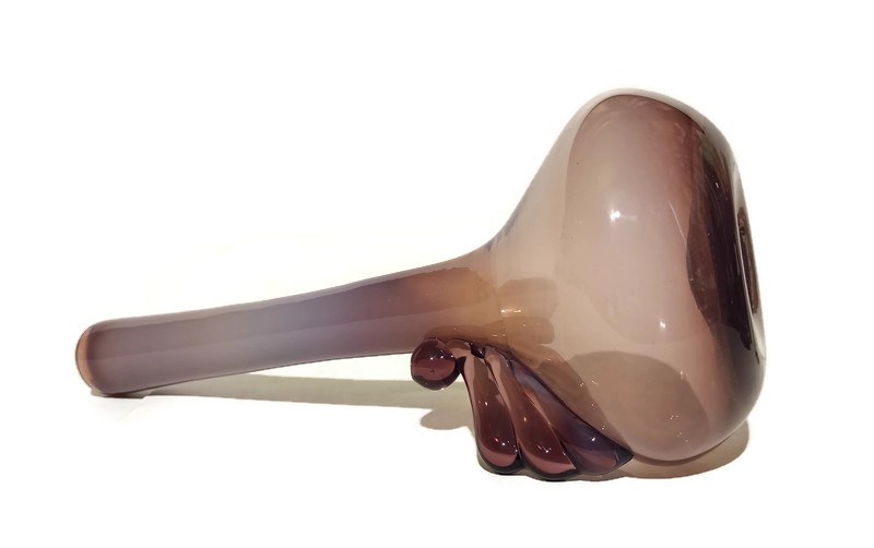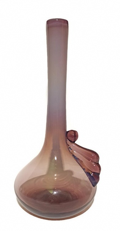 szkło barwione w masie, kolor tonowany - mleczny fiolet przechodzący w transparentny, wysokość 36cm, soczewka