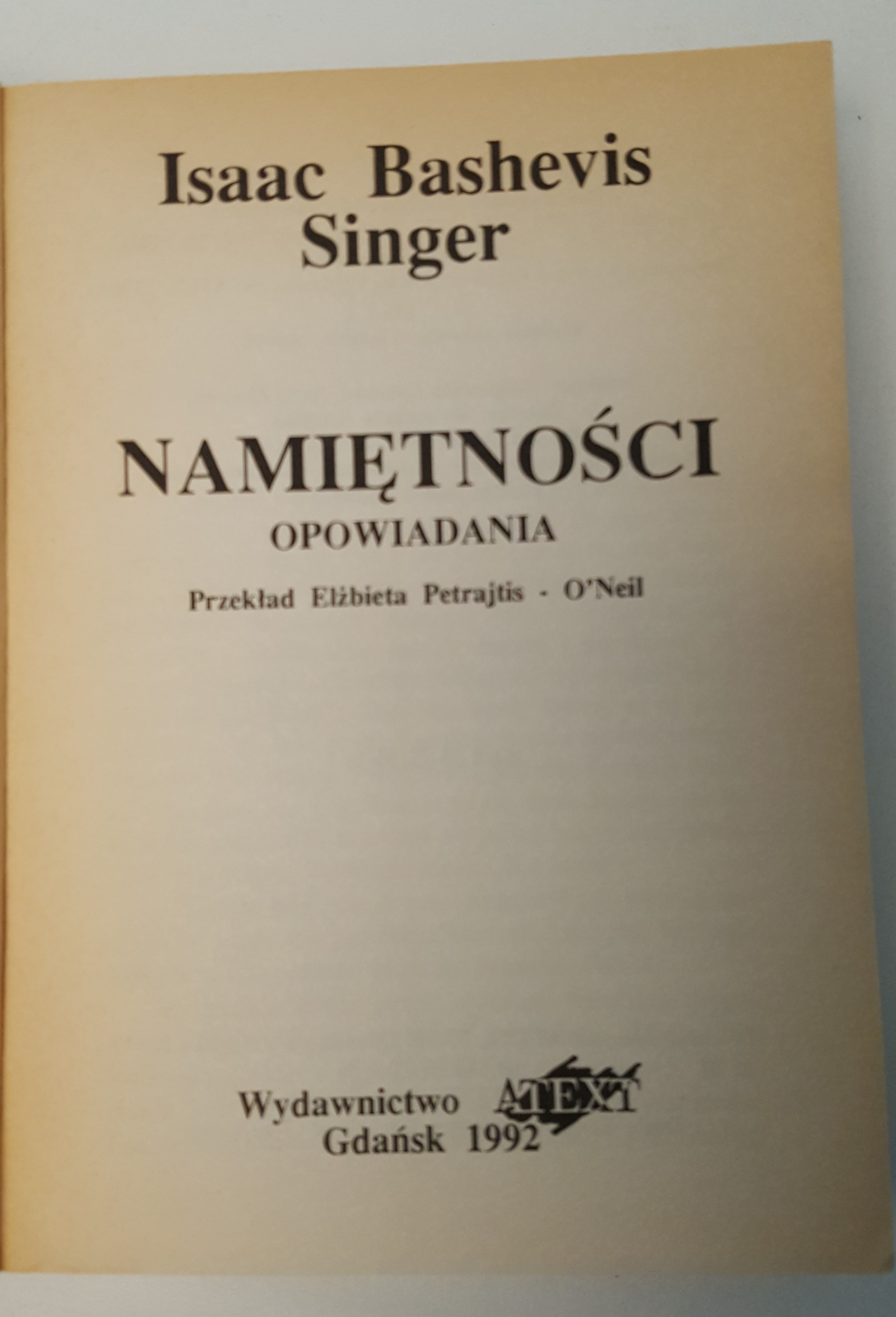SINGER Isaac Bashevis - NAMIĘTNOŚCI. Opowiadania