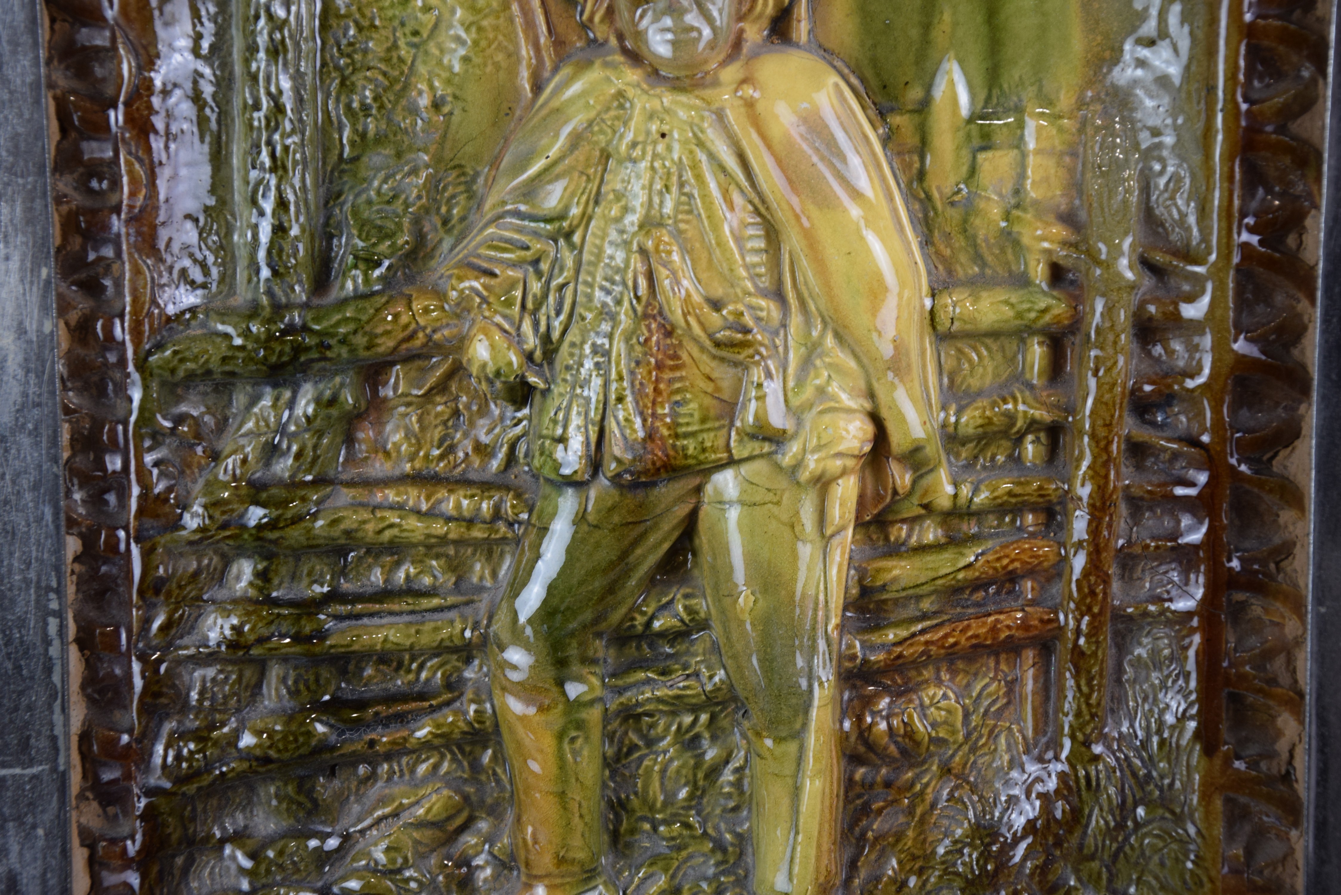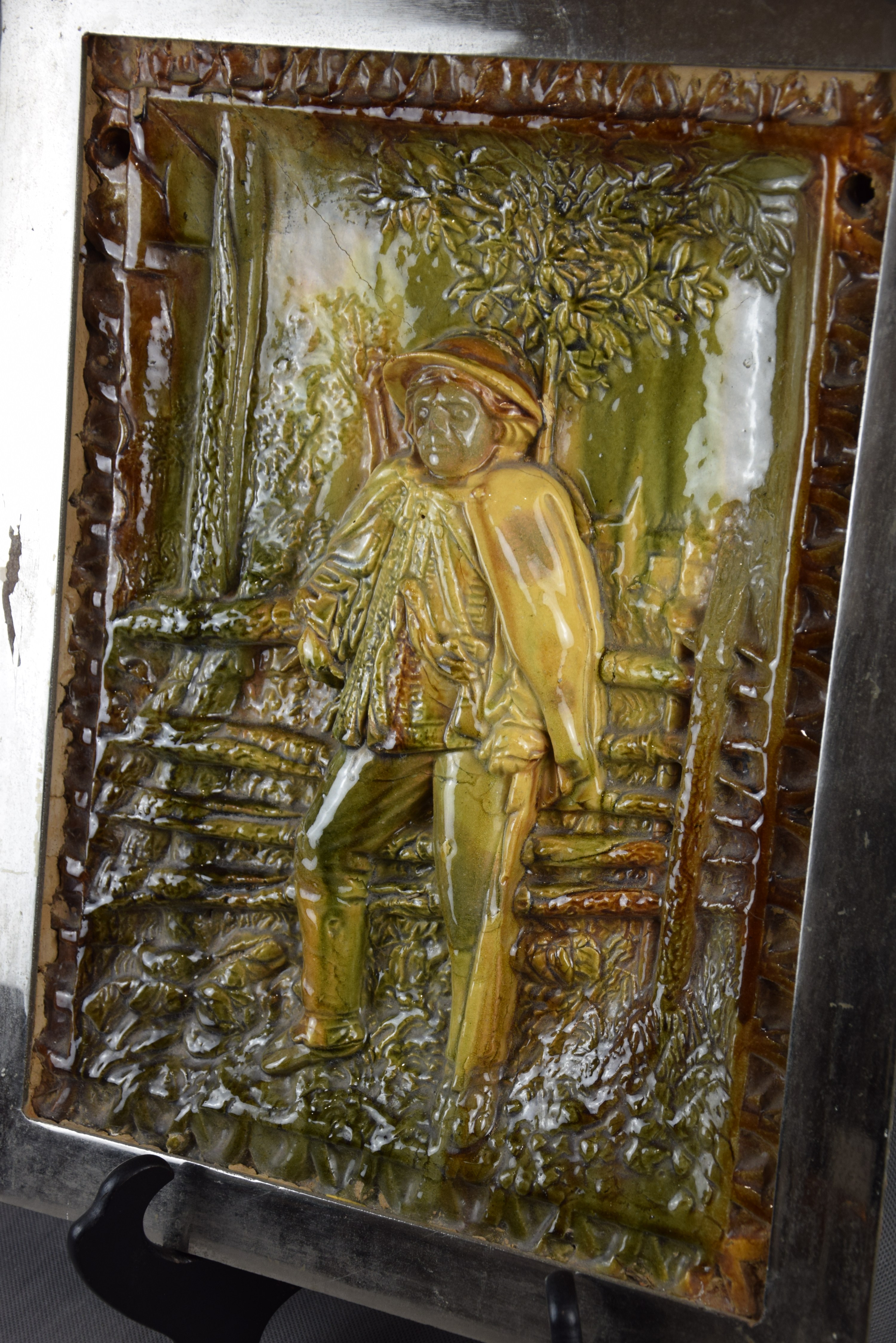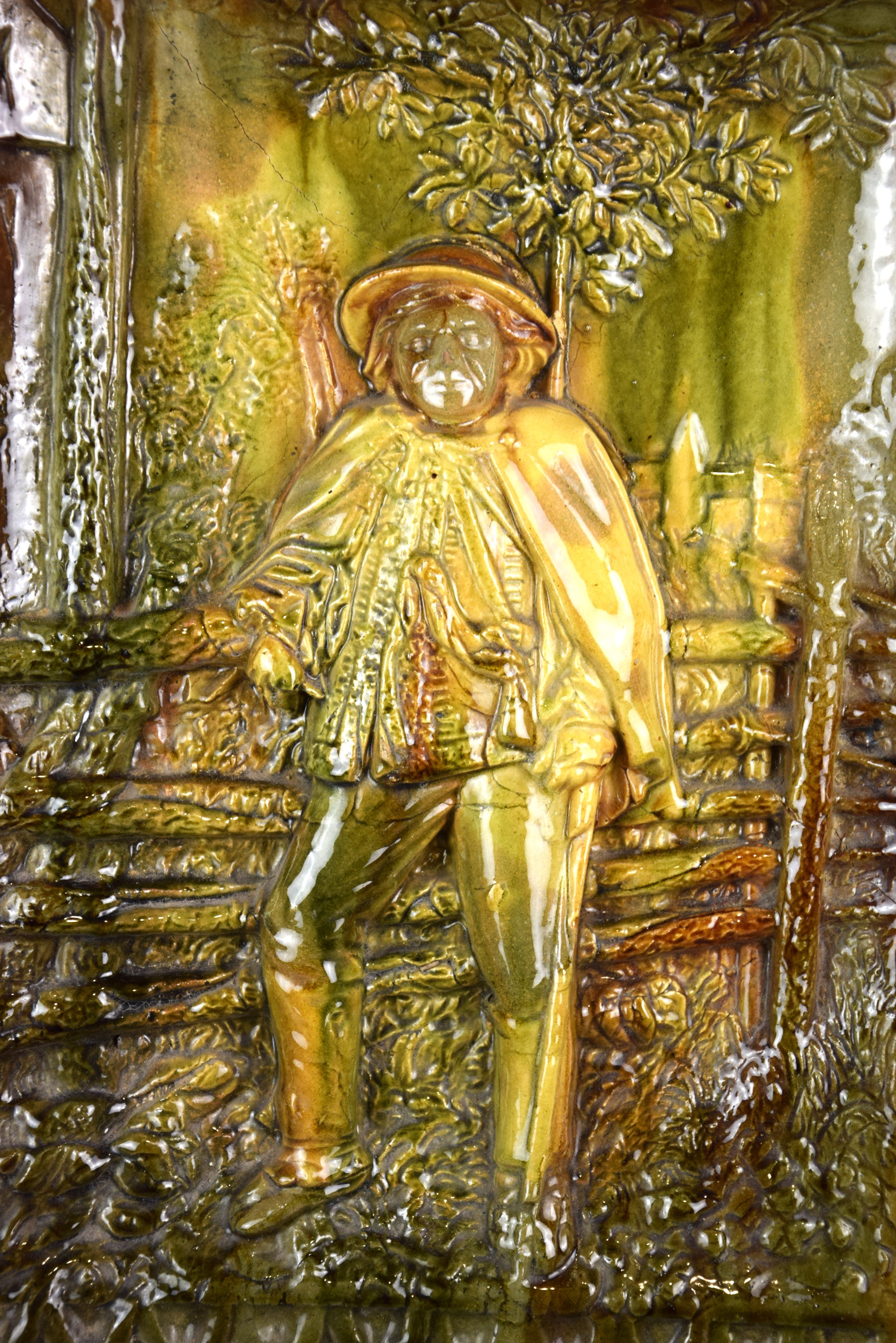 Duża ceramiczna plakieta/płaskorzeźba z góralem. "Góral przy ogrodzeniu".