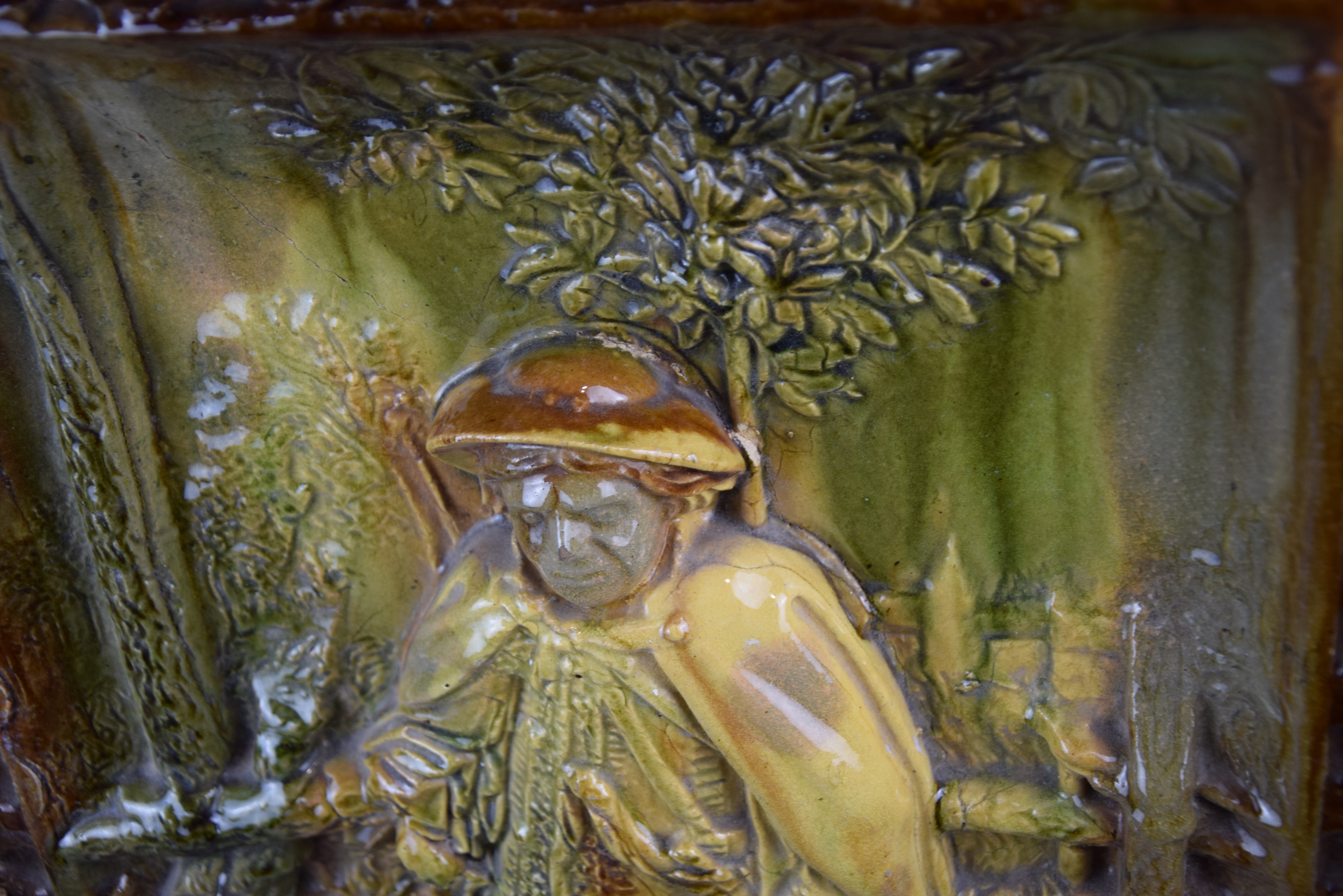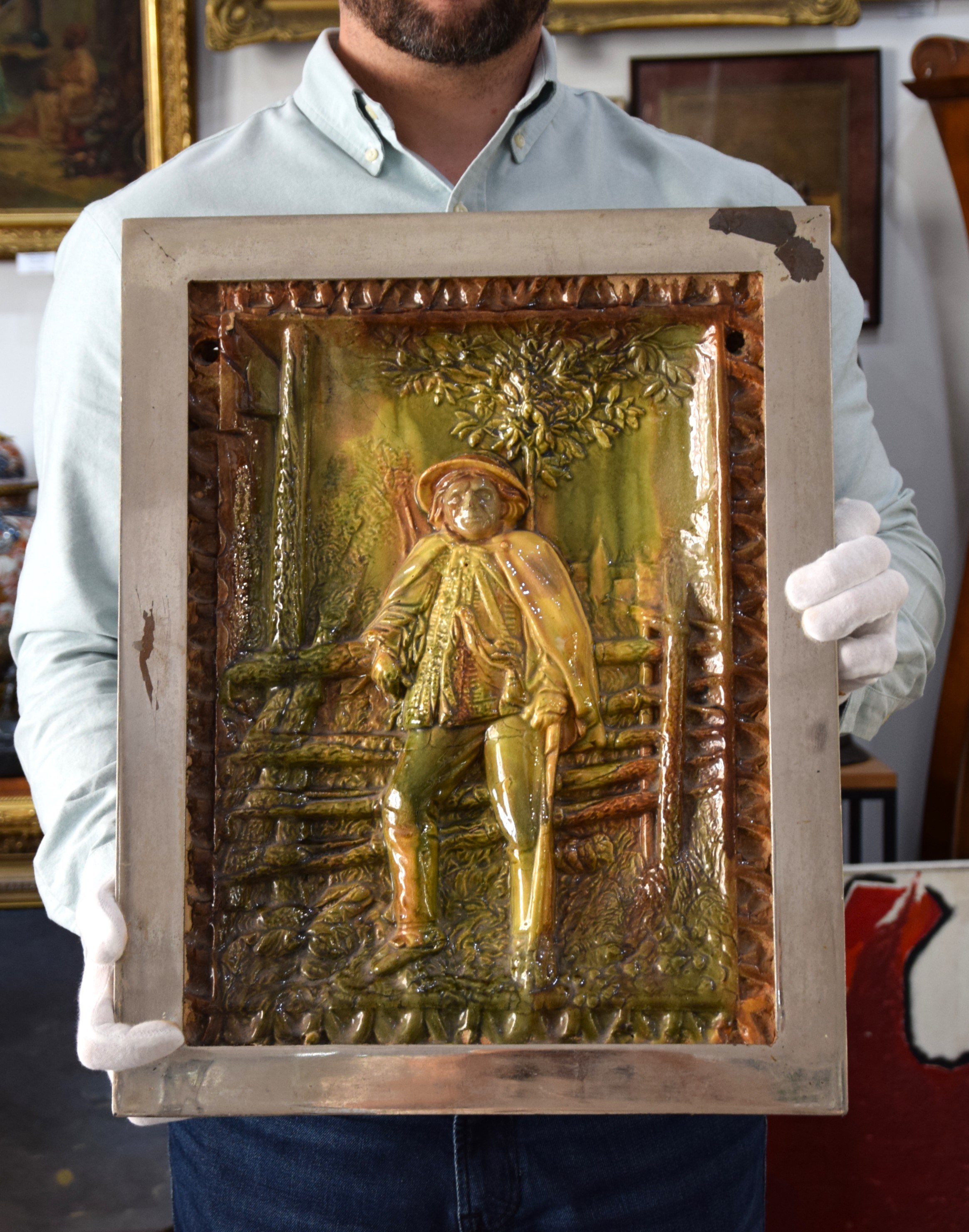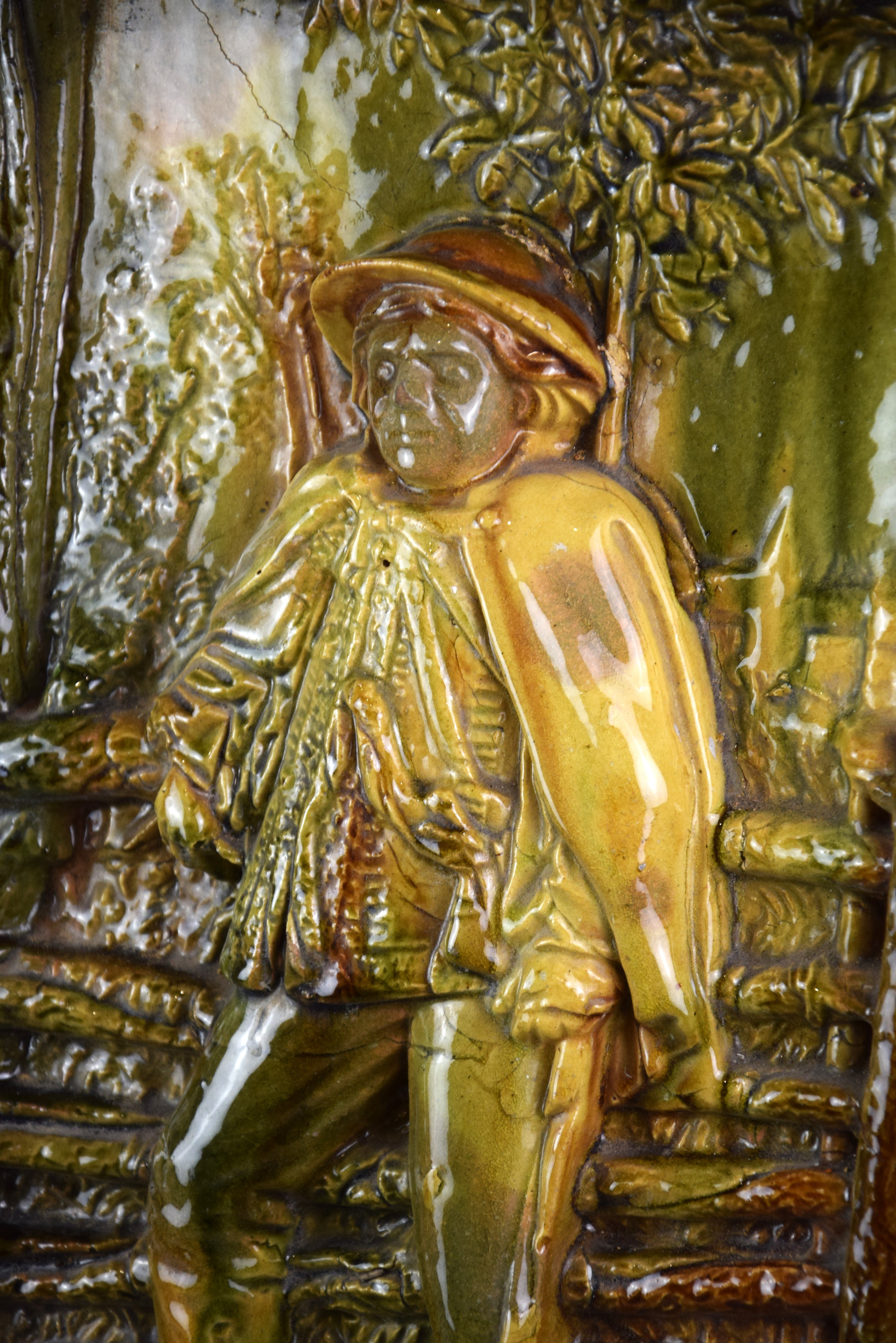 Duża ceramiczna plakieta/płaskorzeźba z góralem. "Góral przy ogrodzeniu".