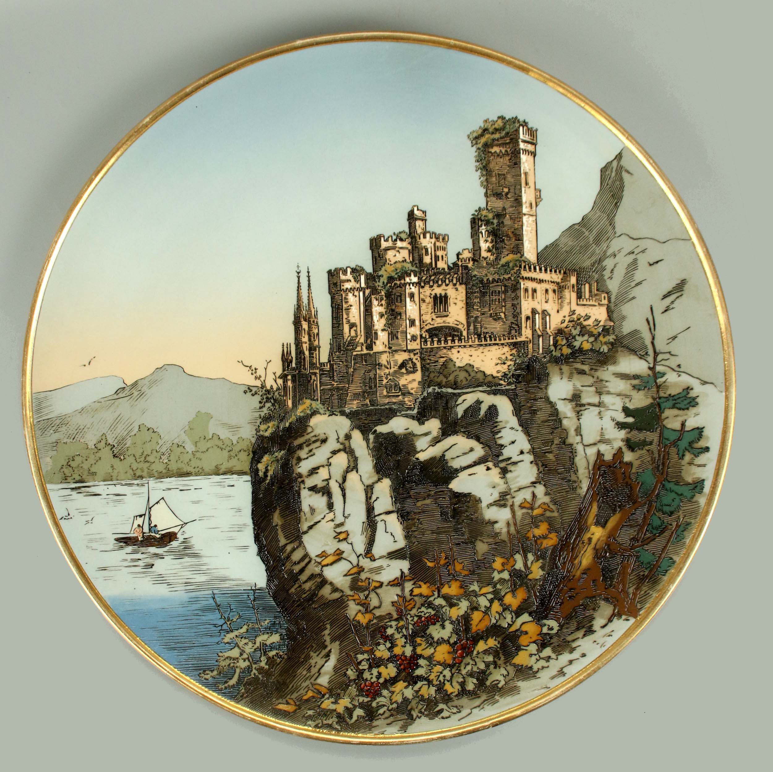 Duży talerz, zamek Rheinstein, Niemcy, Mettlach, 1898 r.