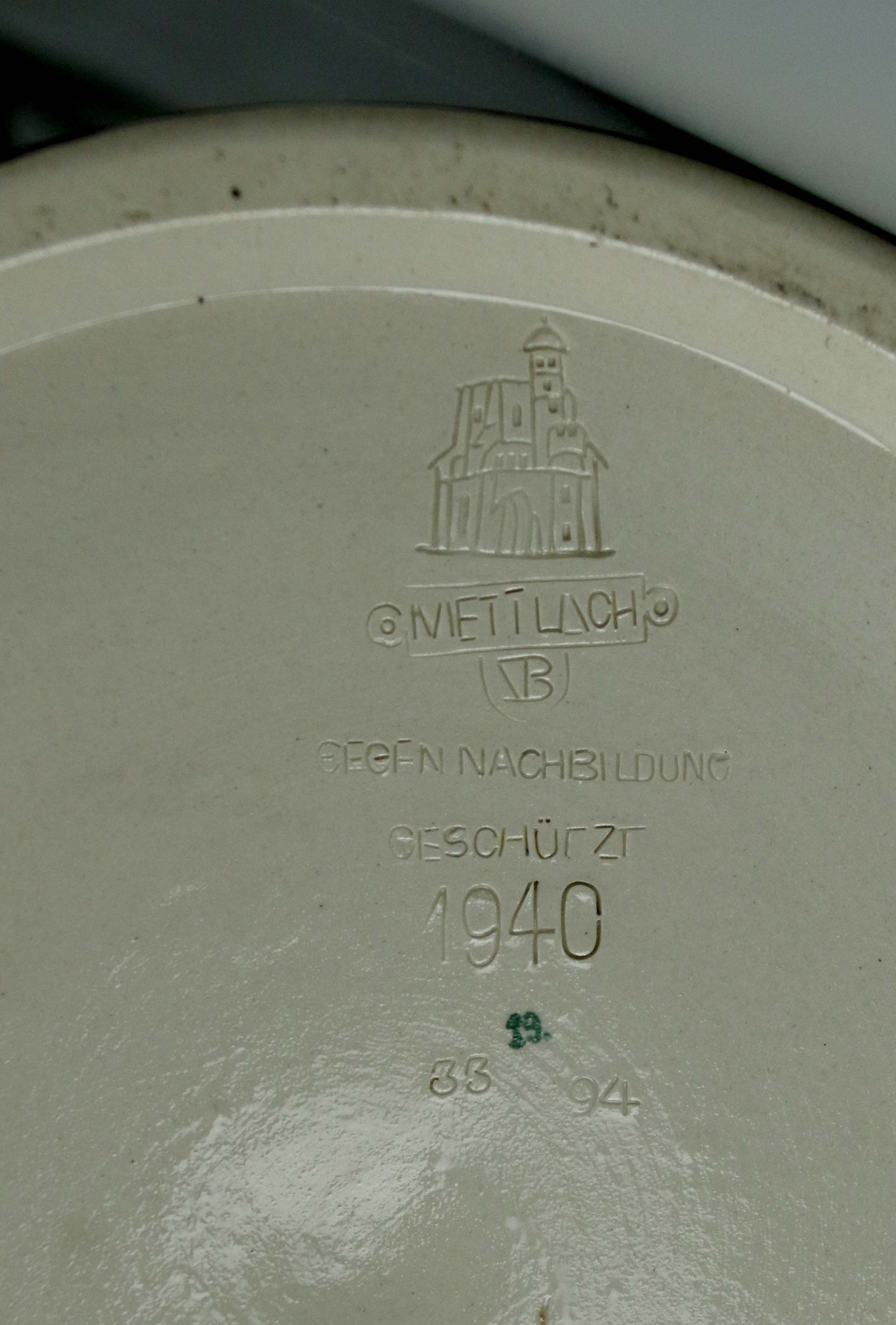 Sygnowany wyciskiem: zamek /METTLACH/, model: 1940, dat.: 94 (1894)