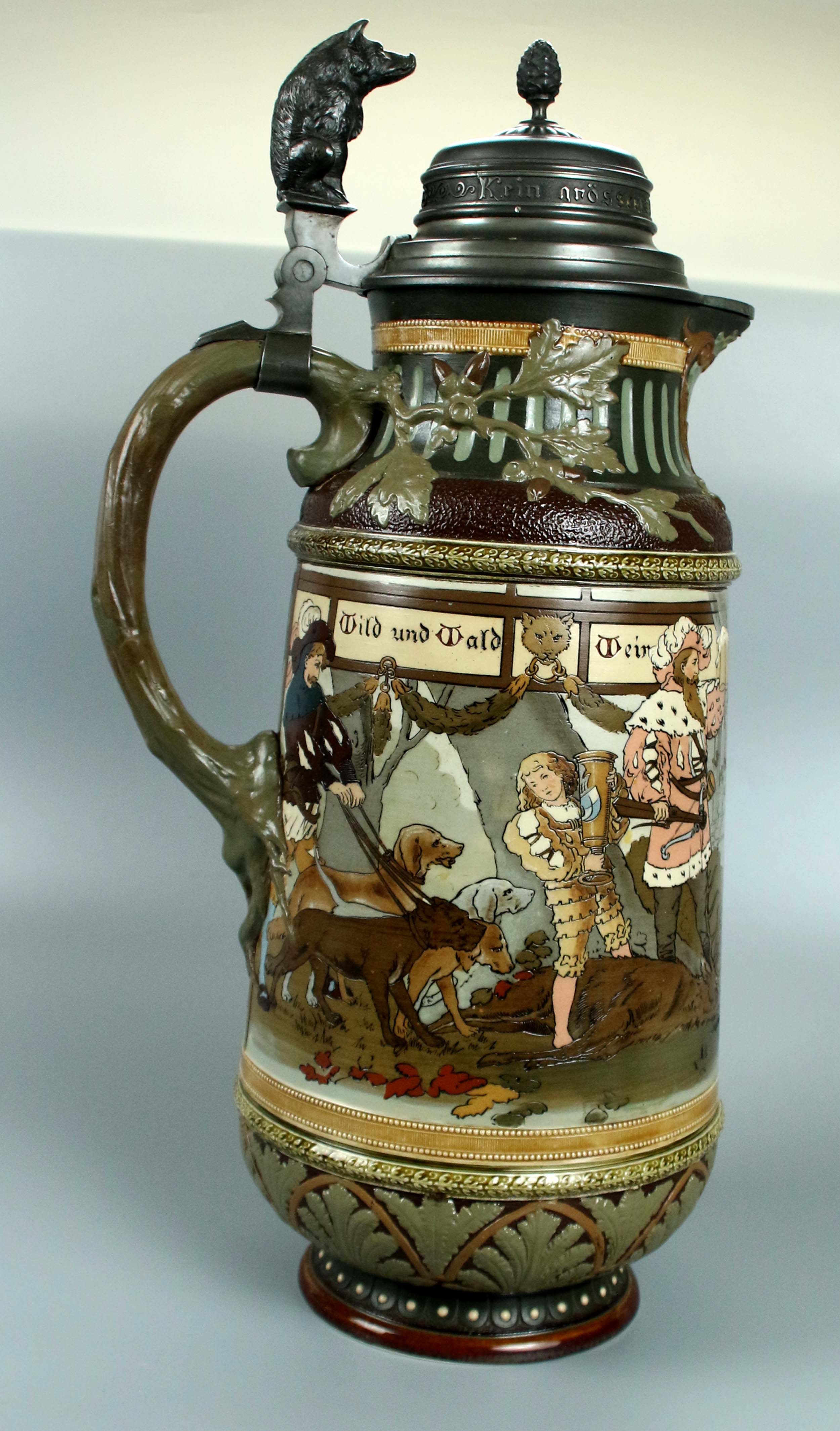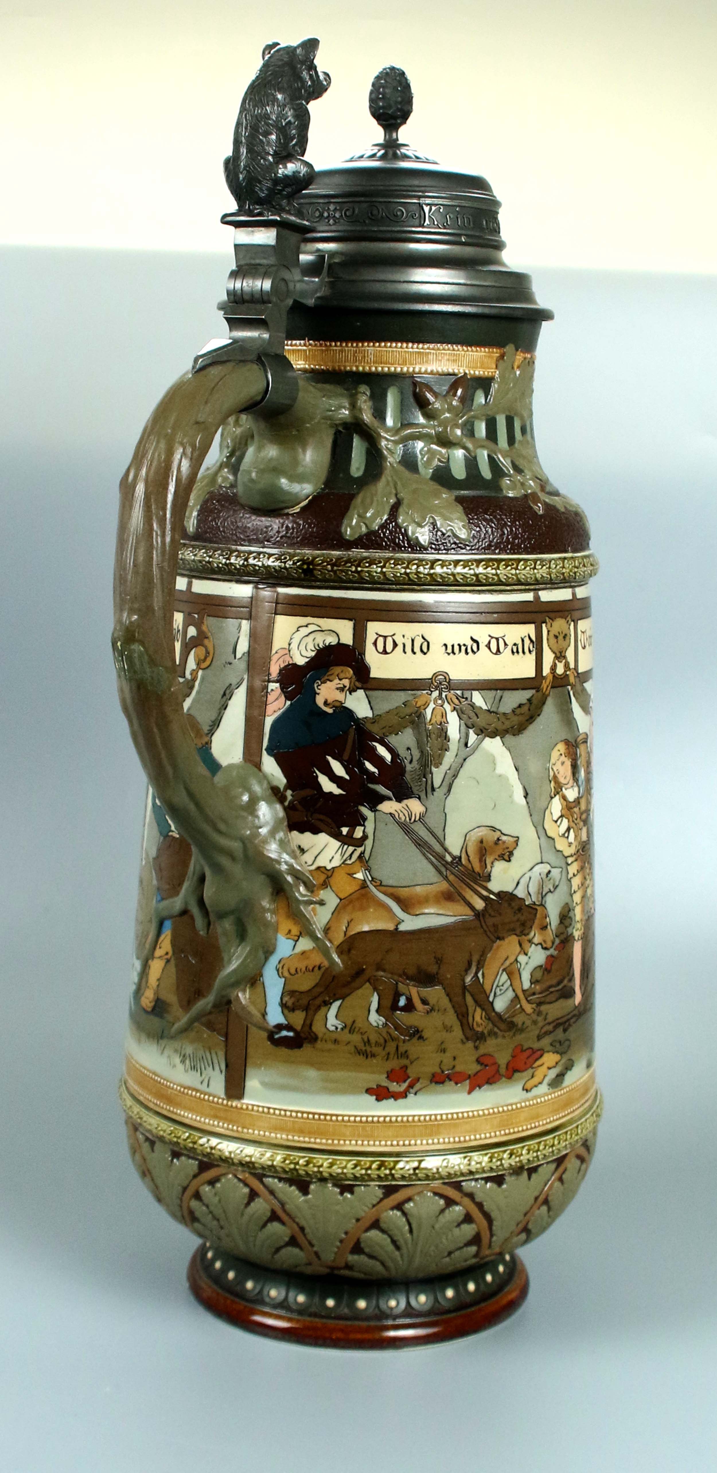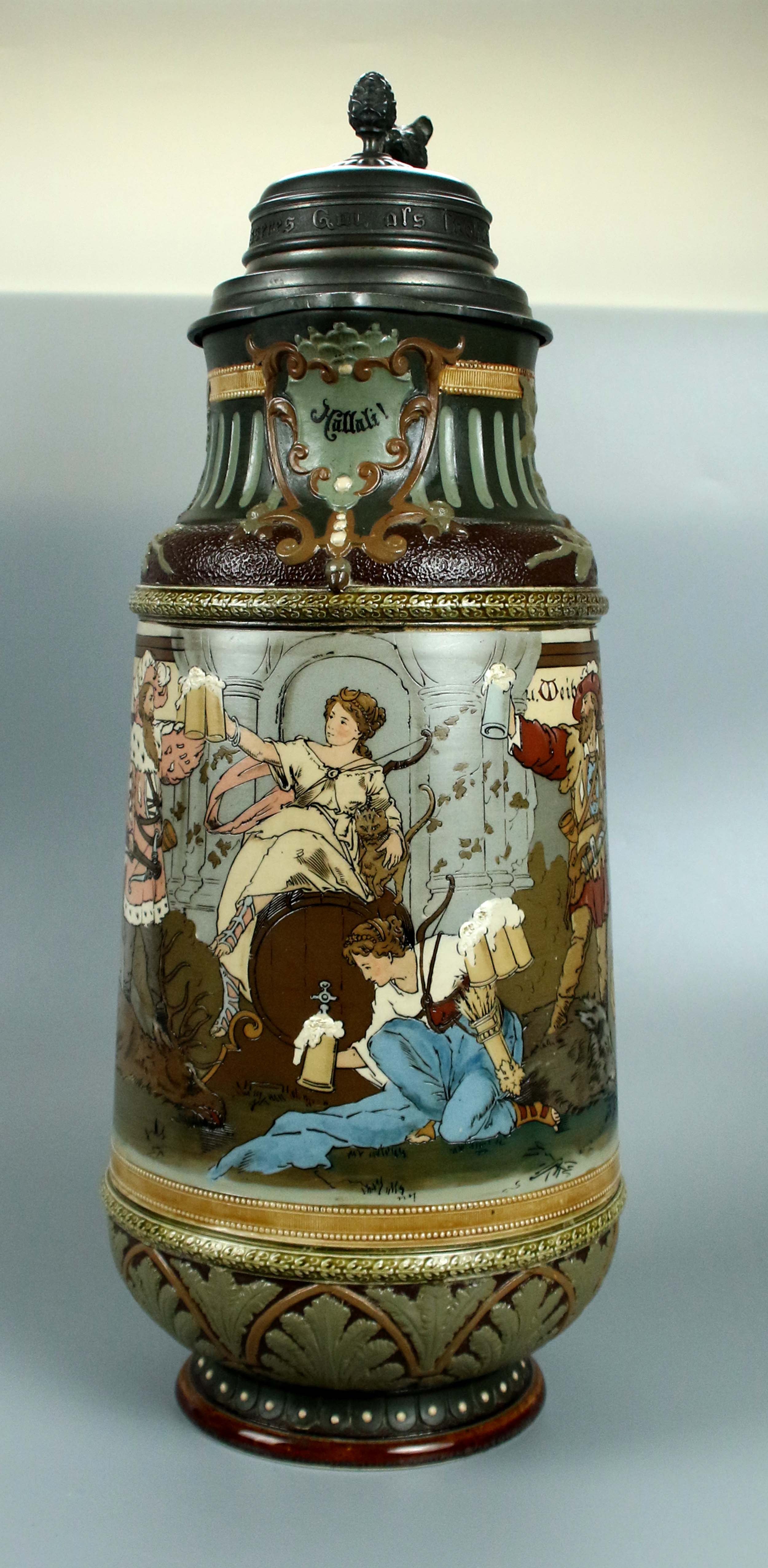 Dzban do wina ze sceną myśliwską, (Myśliwy i Diana), Niemcy, Mettlach, 1900 r.