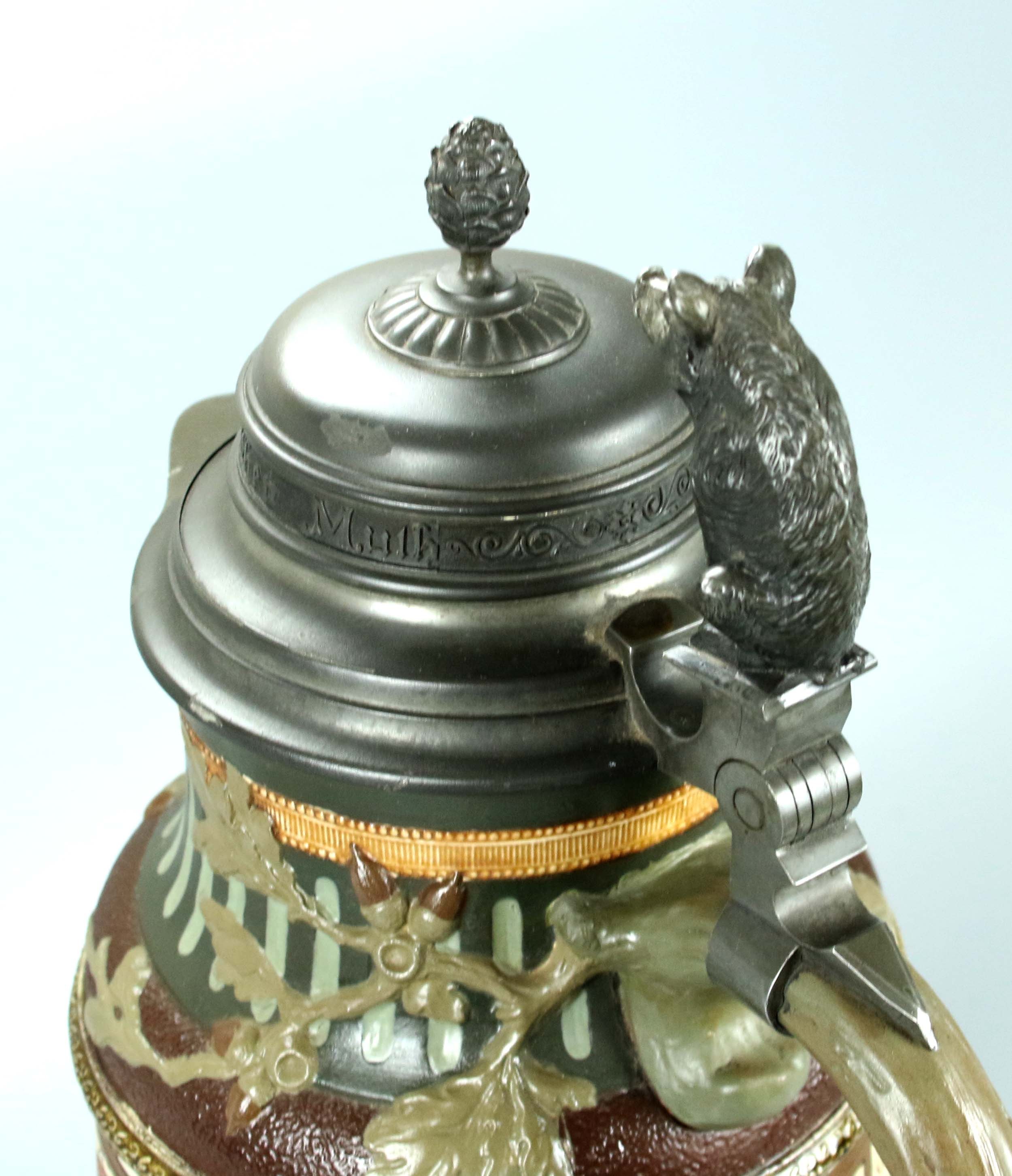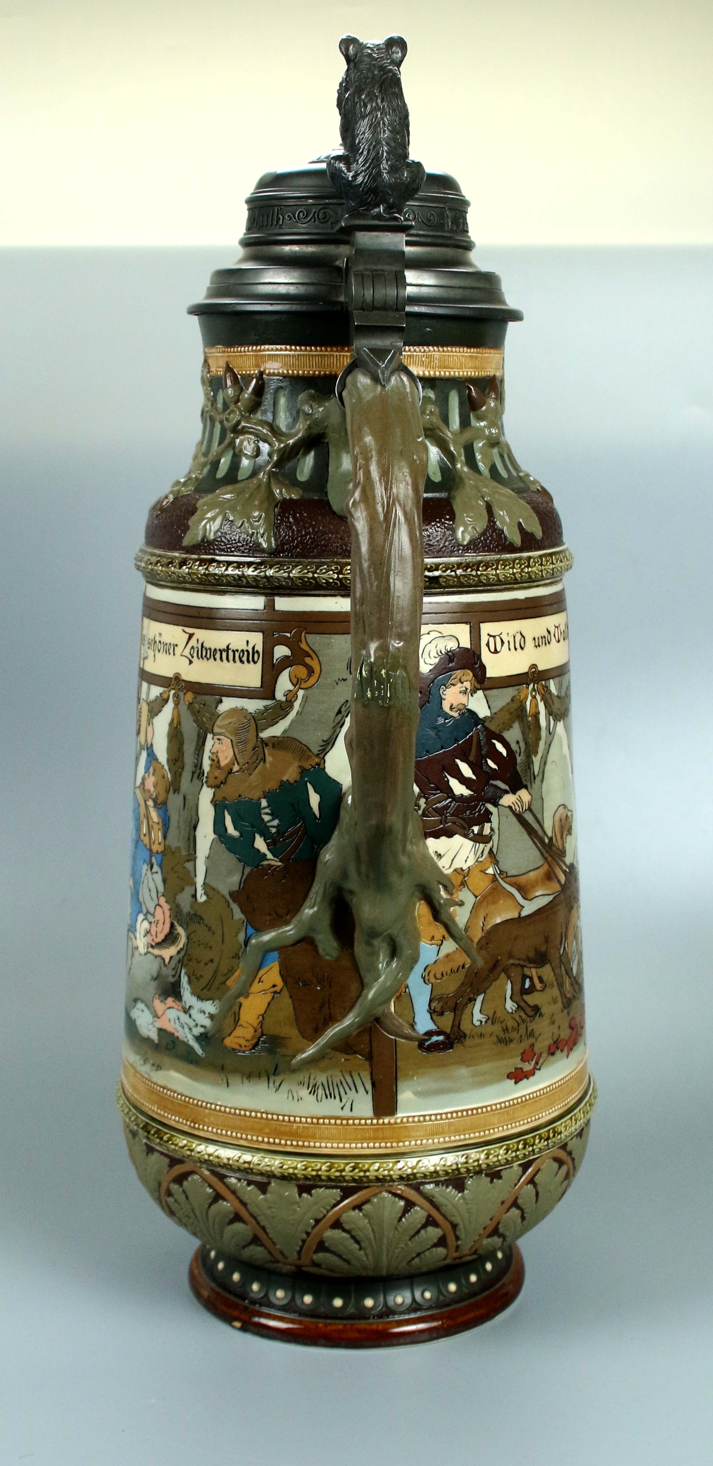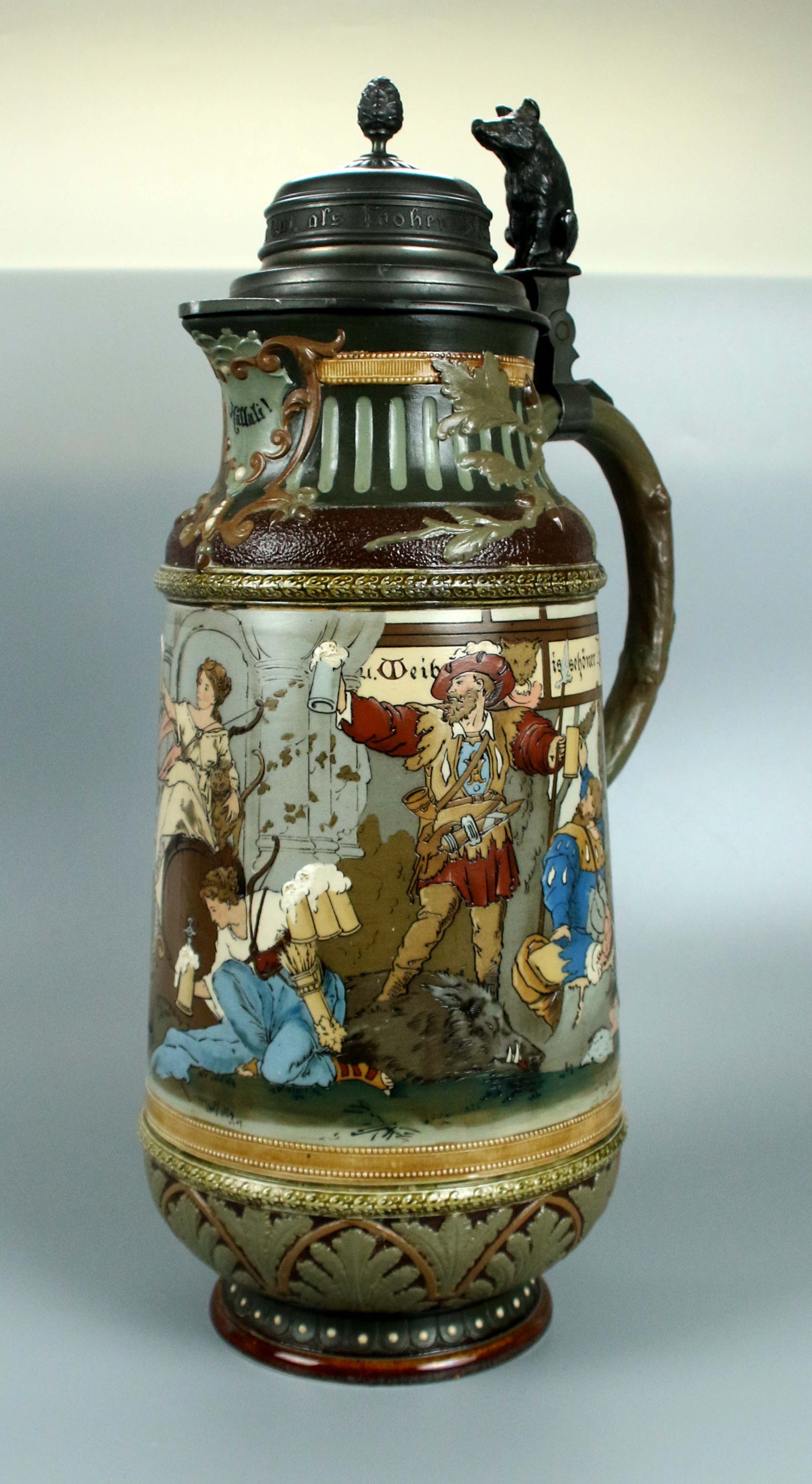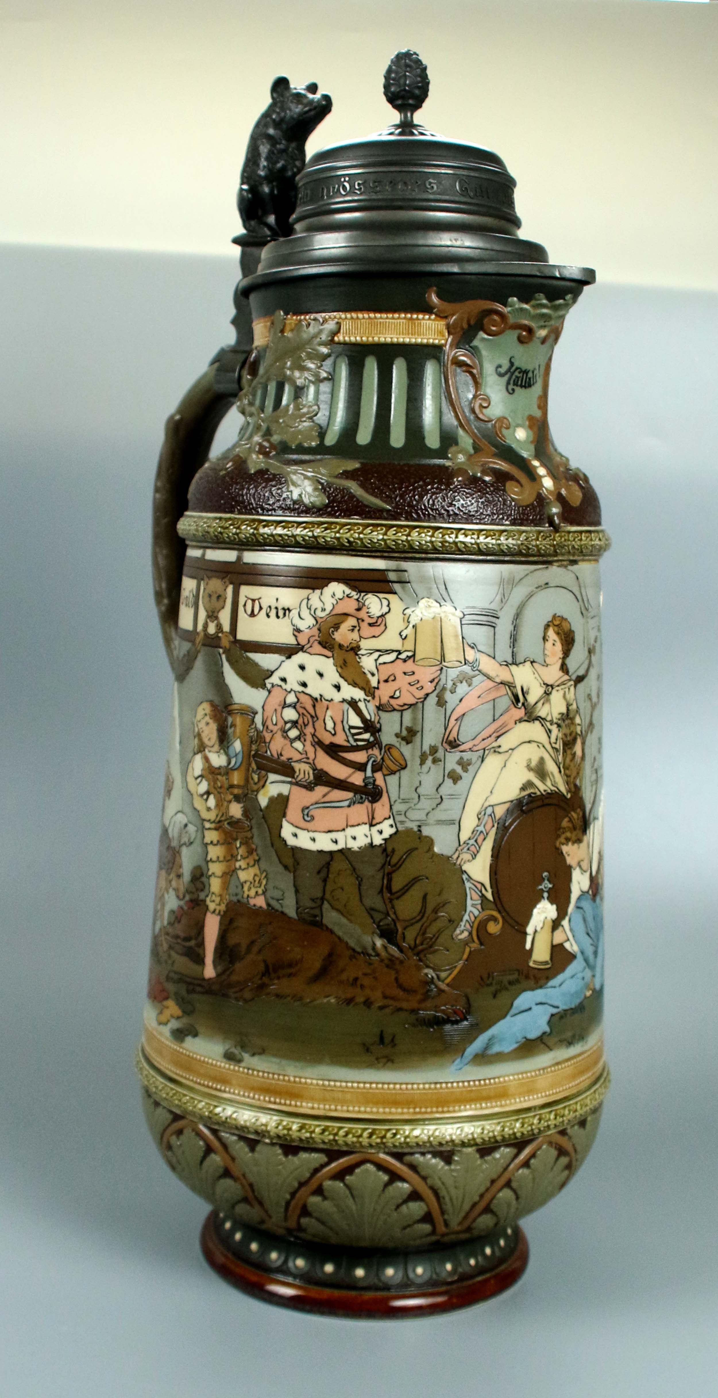 Dzban do wina ze sceną myśliwską, (Myśliwy i Diana), Niemcy, Mettlach, 1900 r.