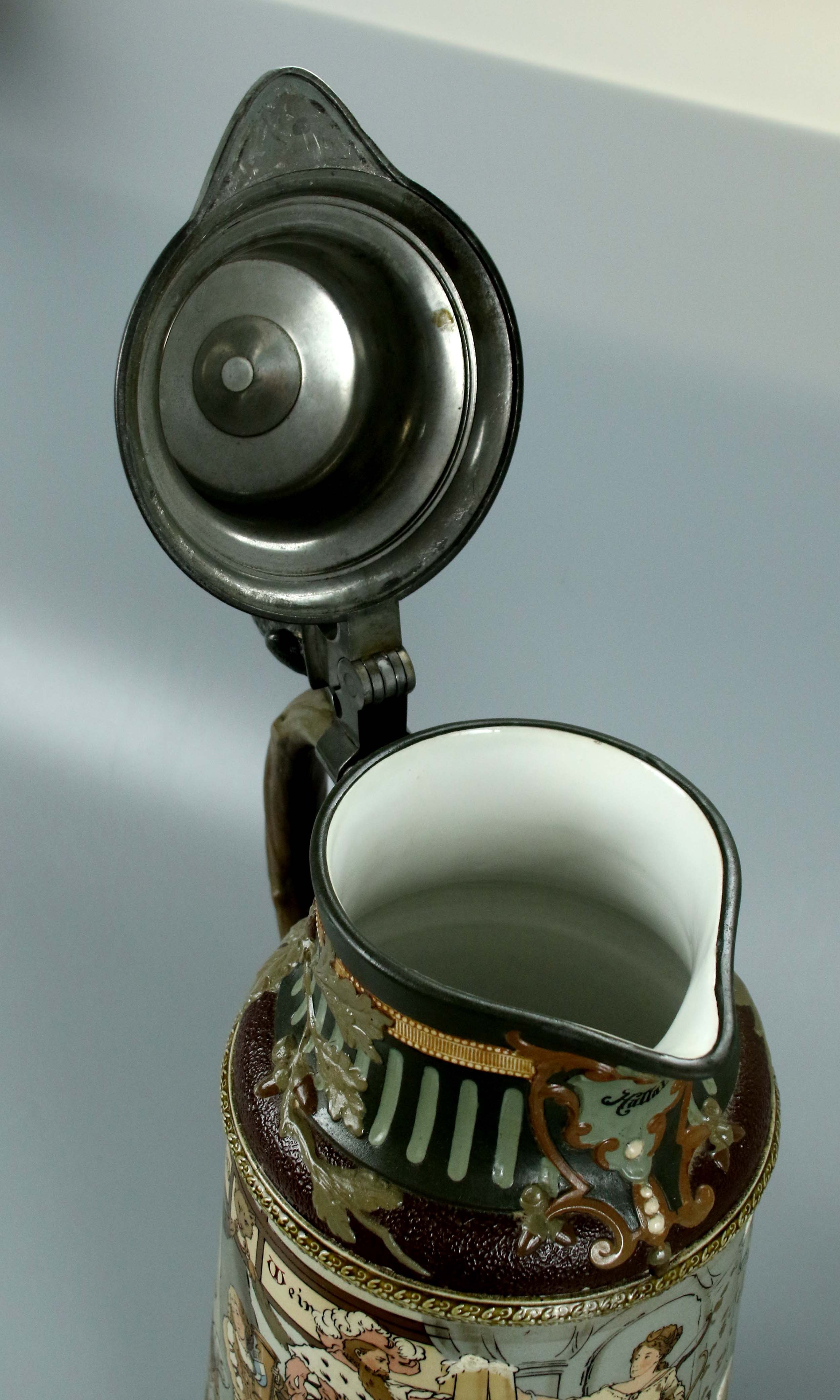 Kamionka szkliwiona, oprawa cynowa, wys. 46 cm, śr. 17 cm, poj. 5,2 l.