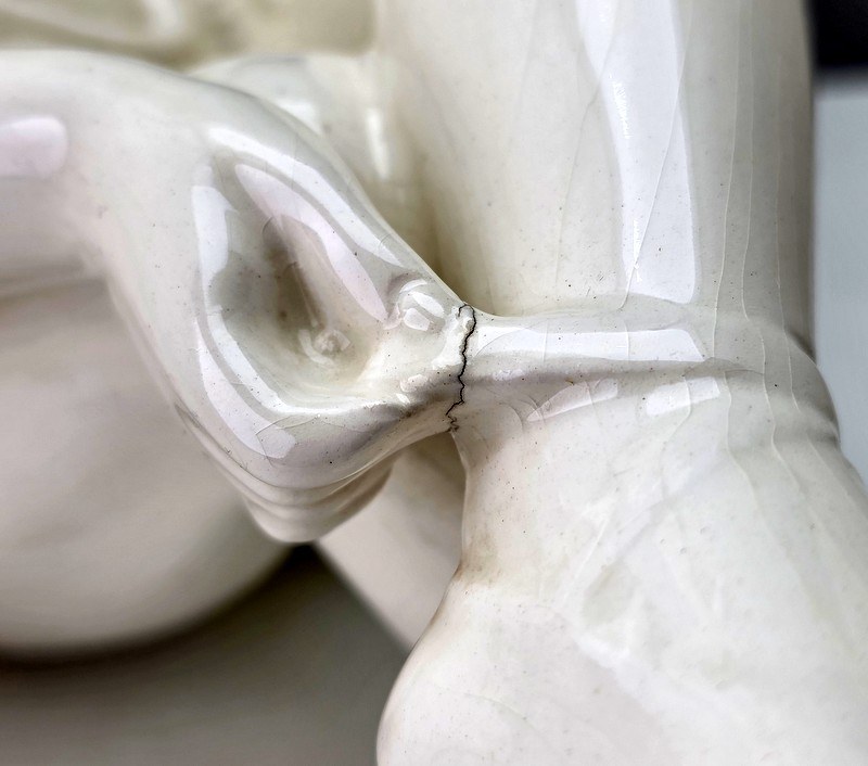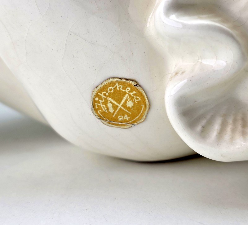 Wyrób ceramiczny, pięknie szkliwiony pokryty podszkliwnyn pajączkiem, który jest procesem naturalnym ubiegającego