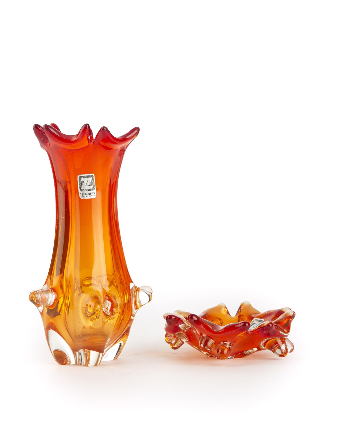 Wymiary: w skład zestawu wchodzi: wazon (18 x 11 x11 cm) i popielnica (4 x 10 x 10 cm)