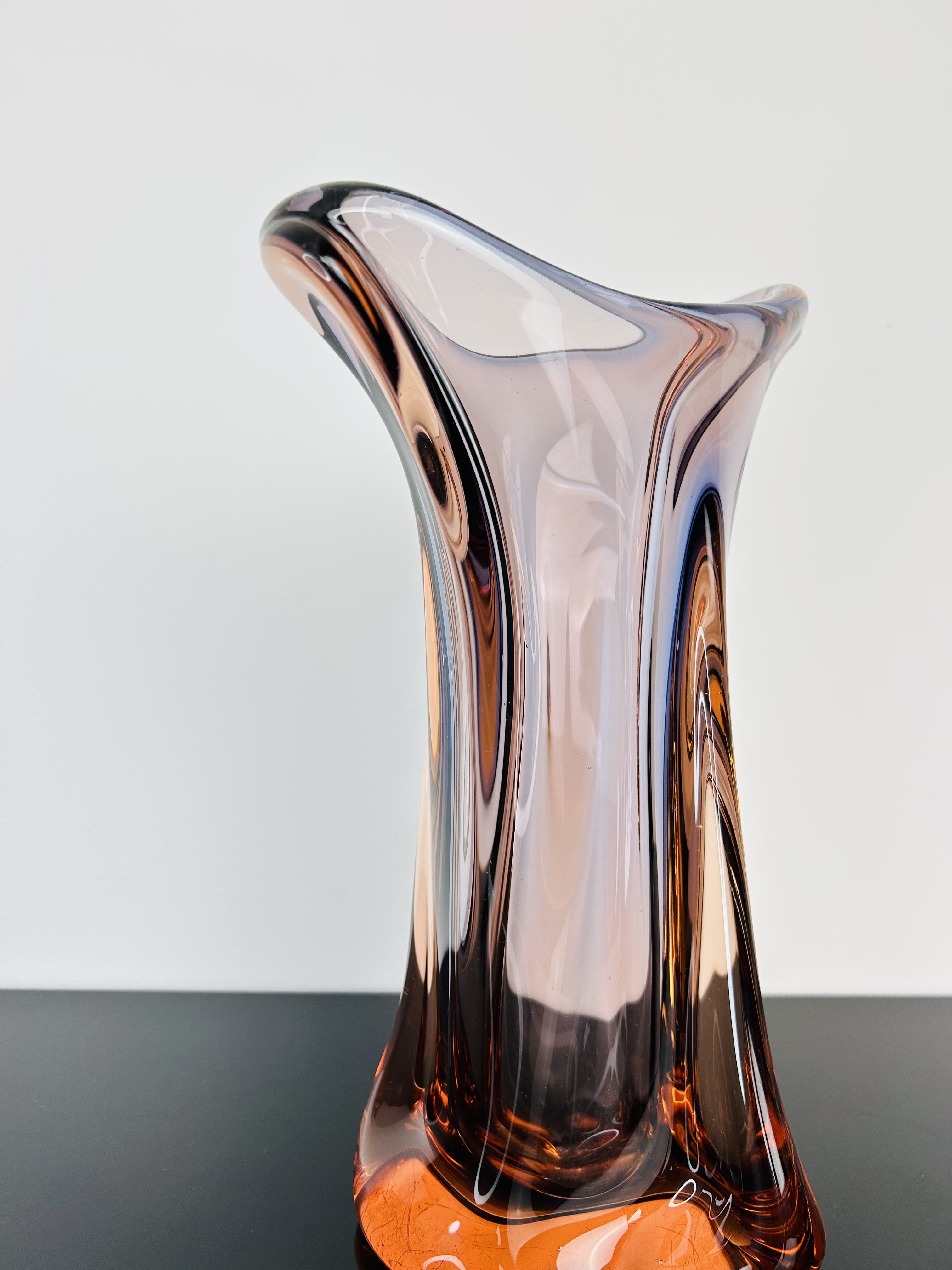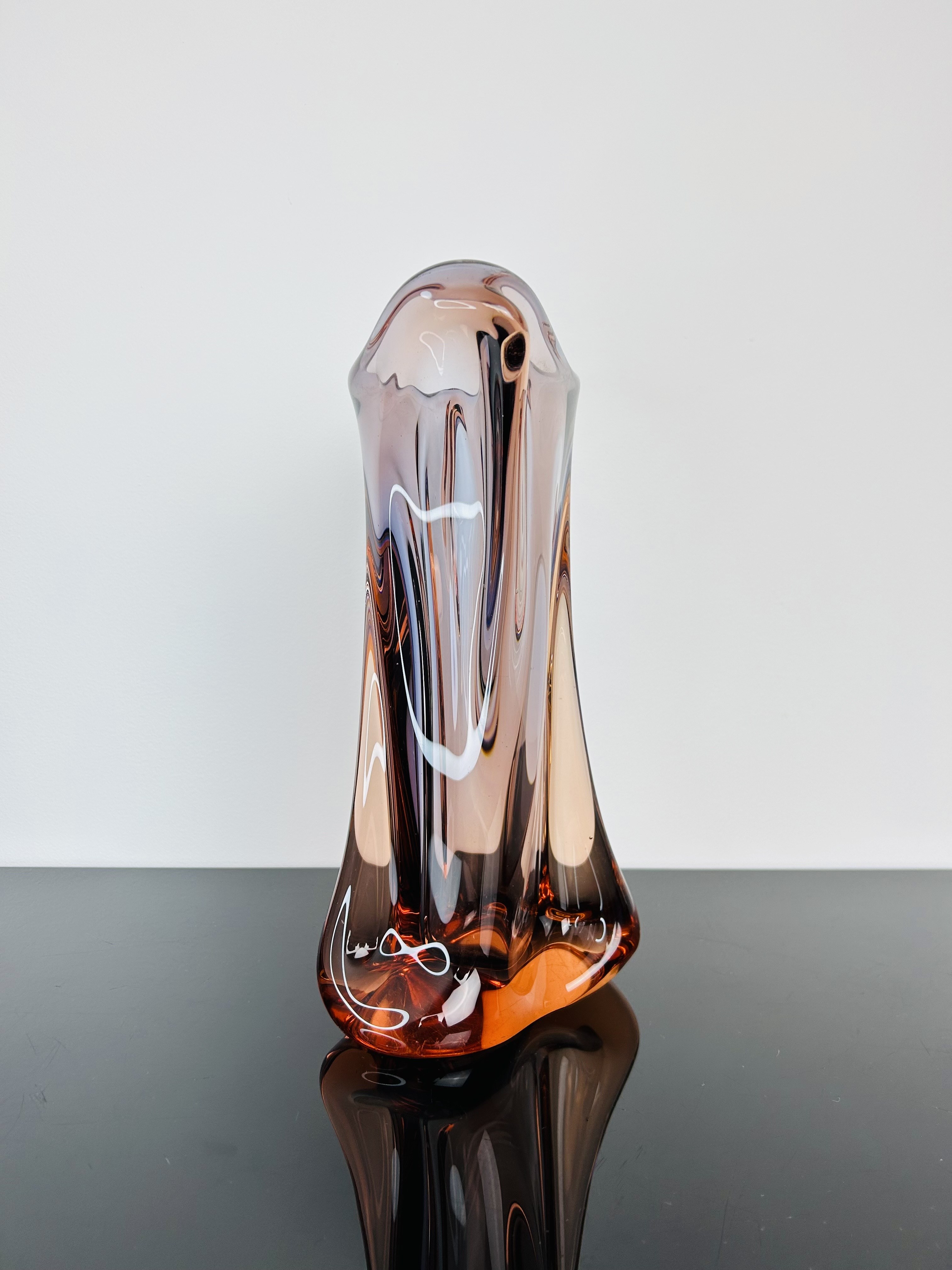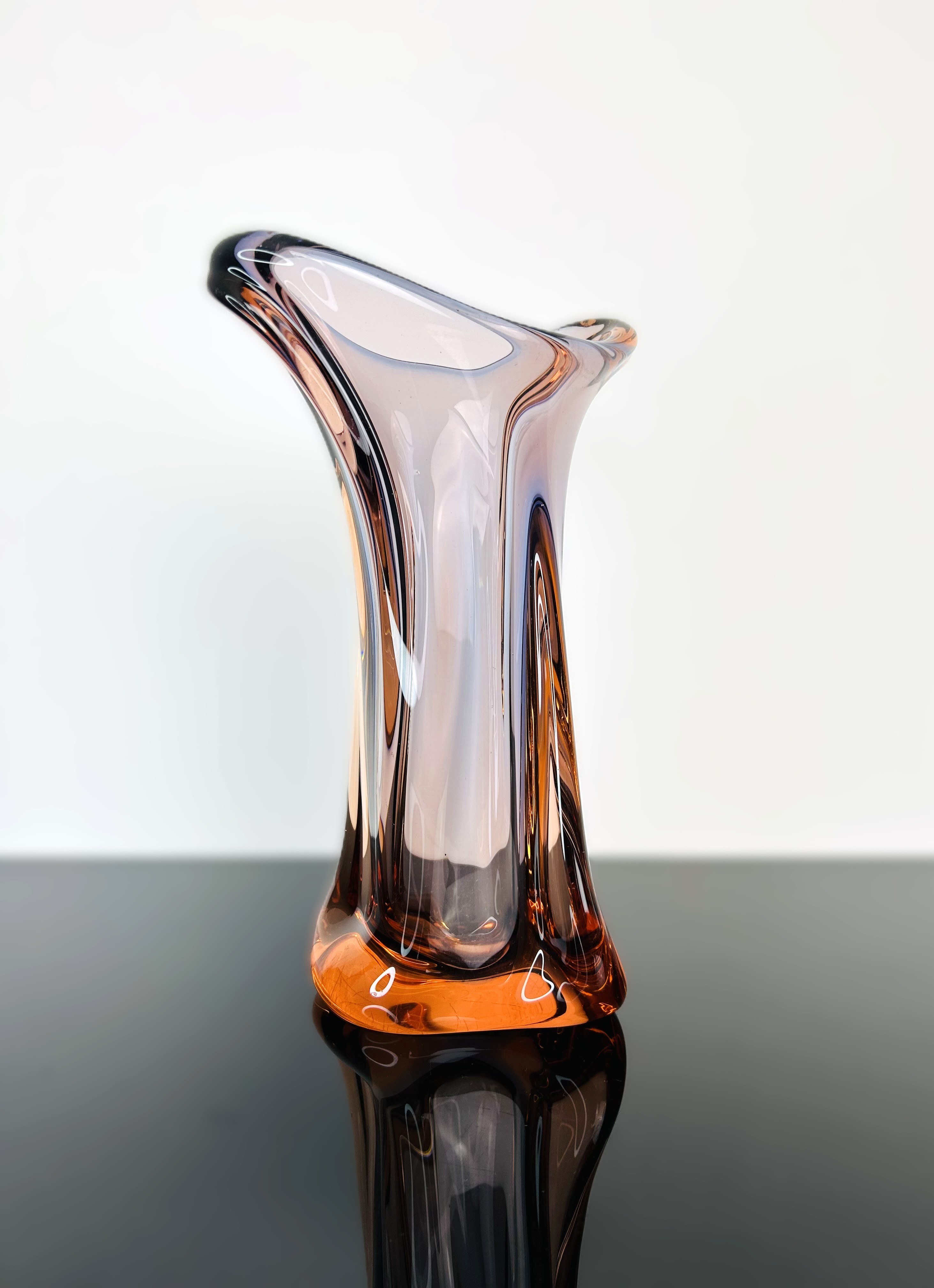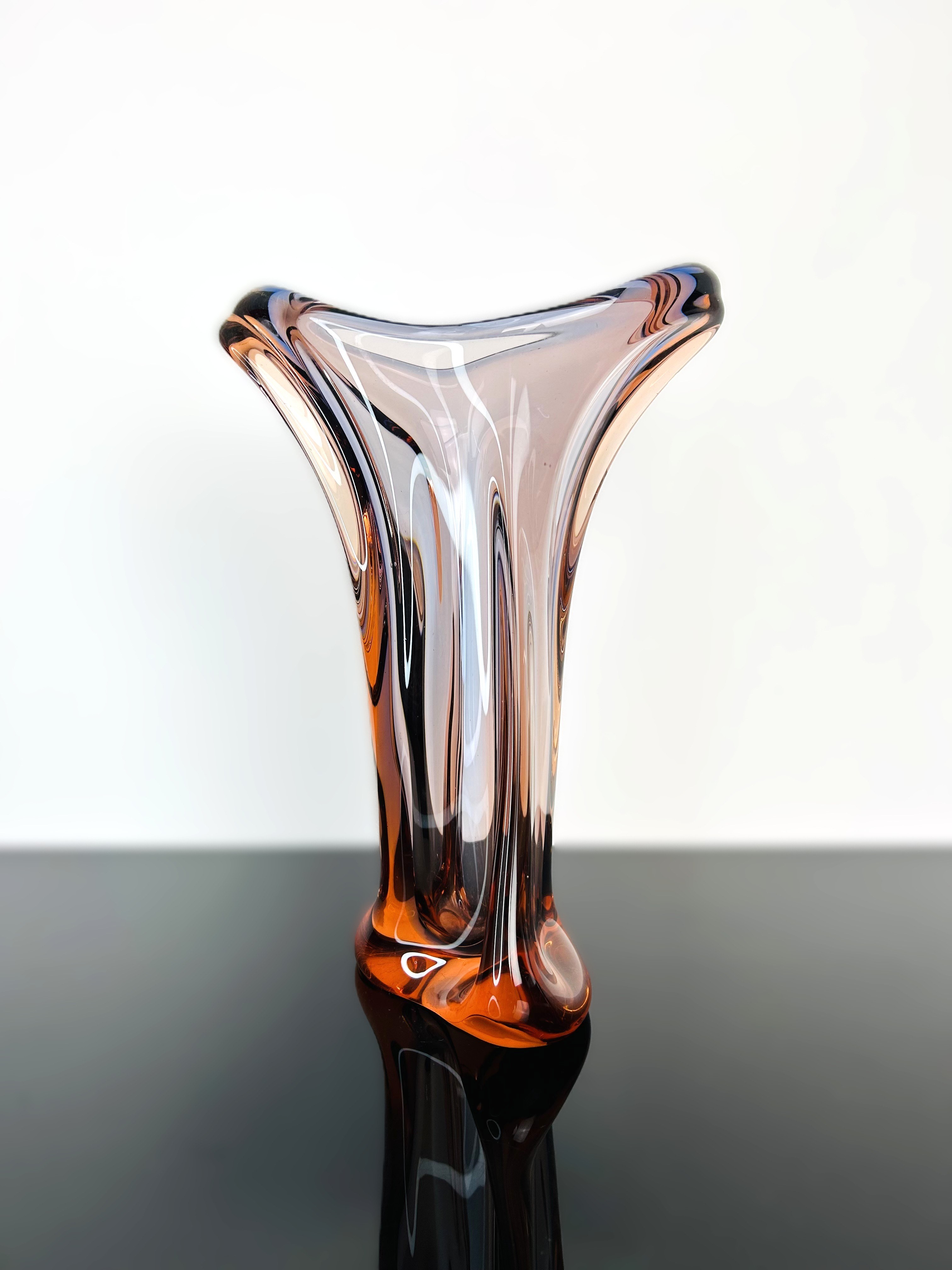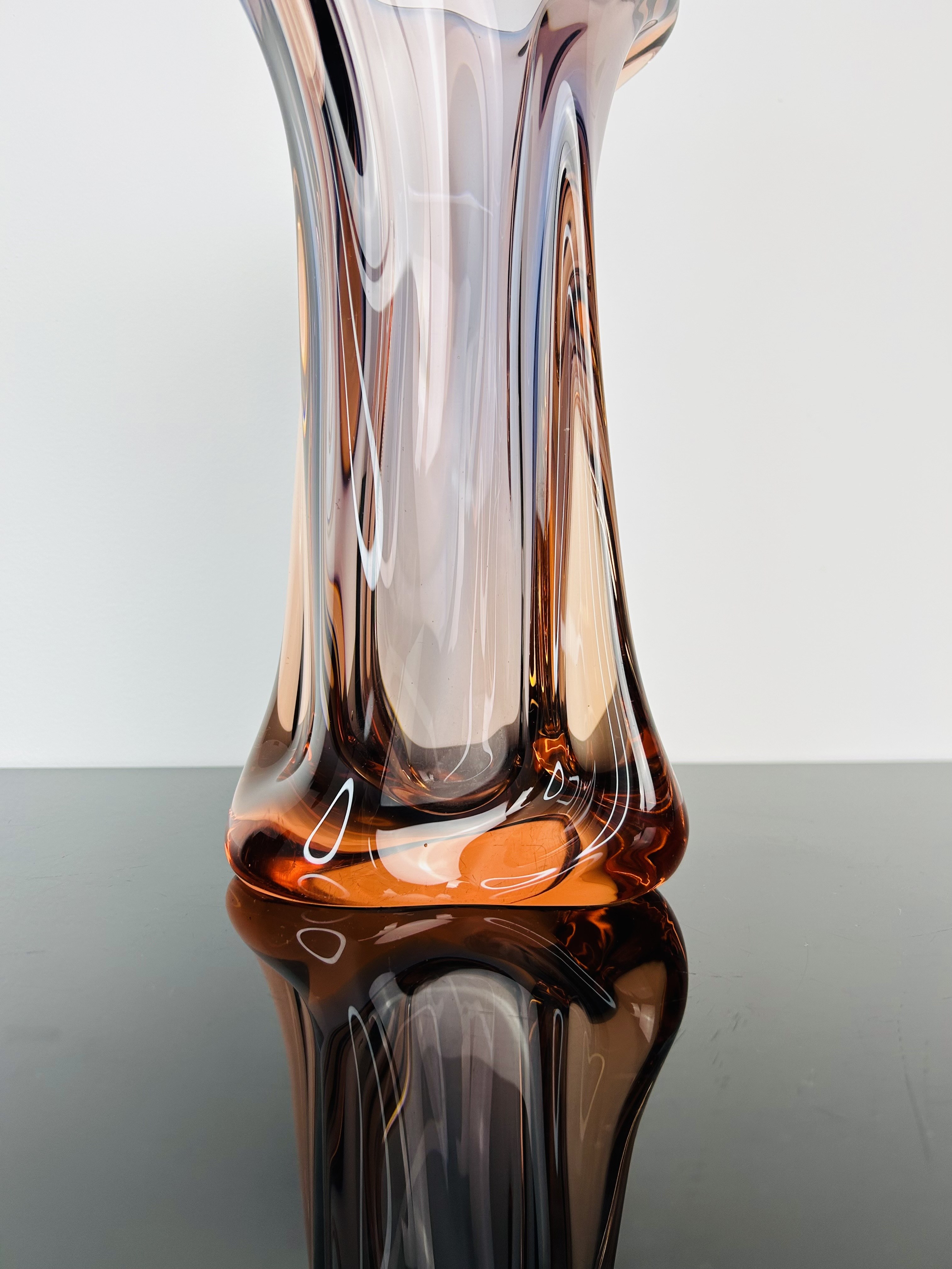 Elegant Czech art glass vase designed by Josef Hospodka (1923–1989) for Chřibská glassworks, 1959. Pattern number: 53215. Hand-shaped and meticulously crafted, ideal as a decorative centerpiece or collectible. Dimensions: Height 31 cm. Excellent vintage condition, no chips or cracks.