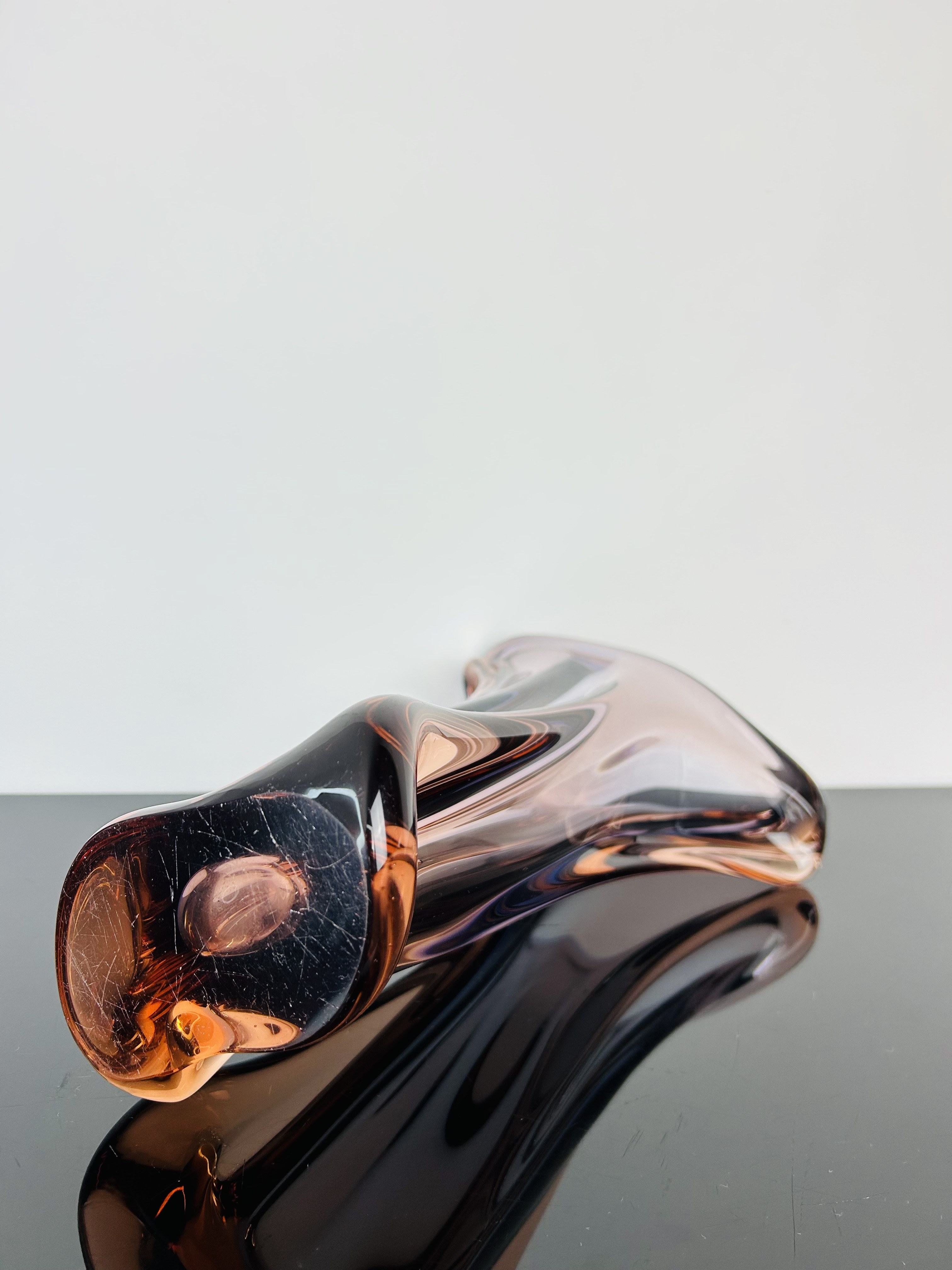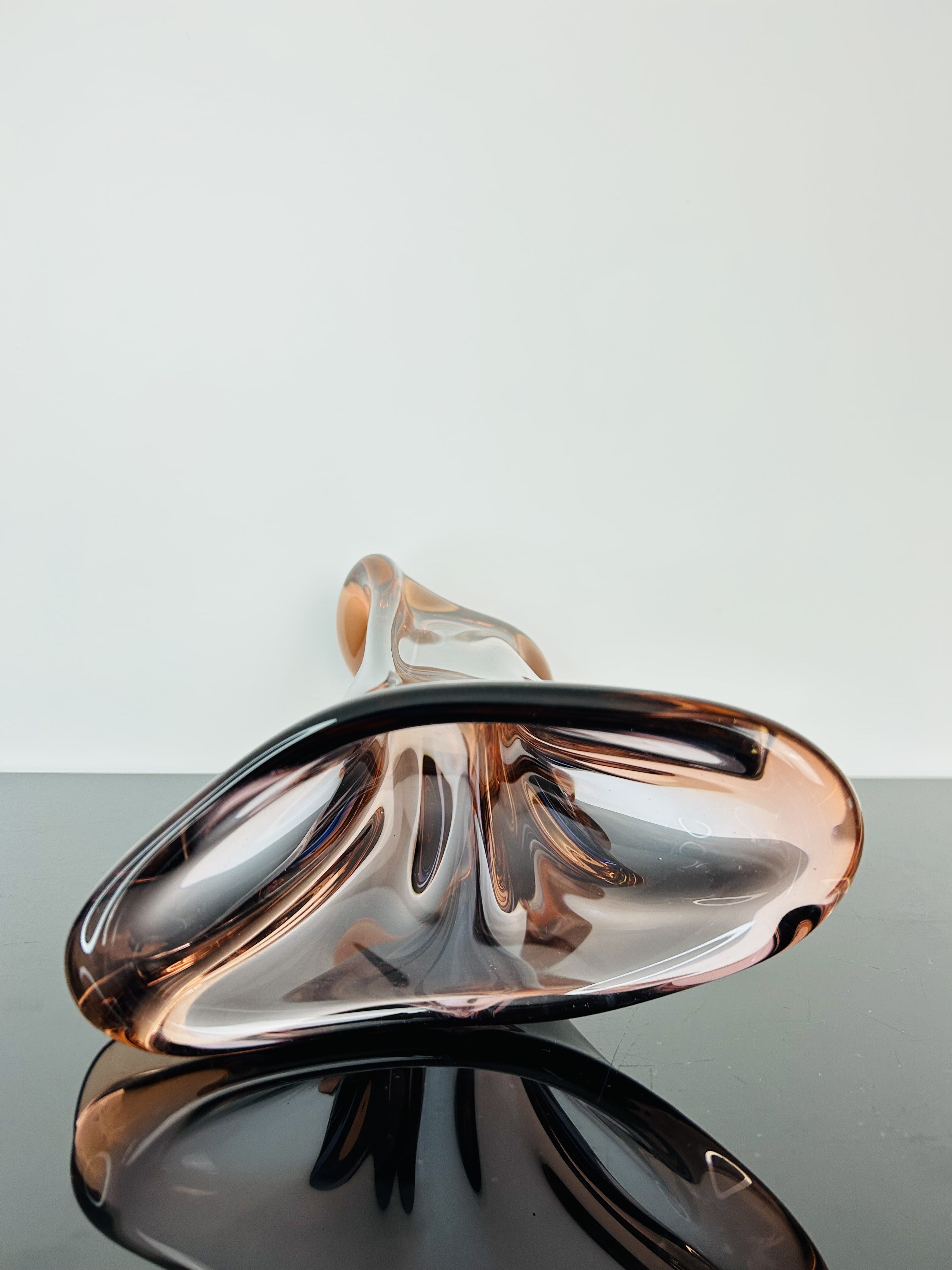 This exceptional vase, produced in 1959 by Josef Hospodka at the renowned Chřibská glassworks, exemplifies mid-century Czech glass artistry. Pattern 53215 showcases Hospodka’s mastery of form and craftsmanship, combining elegant lines with refined precision.