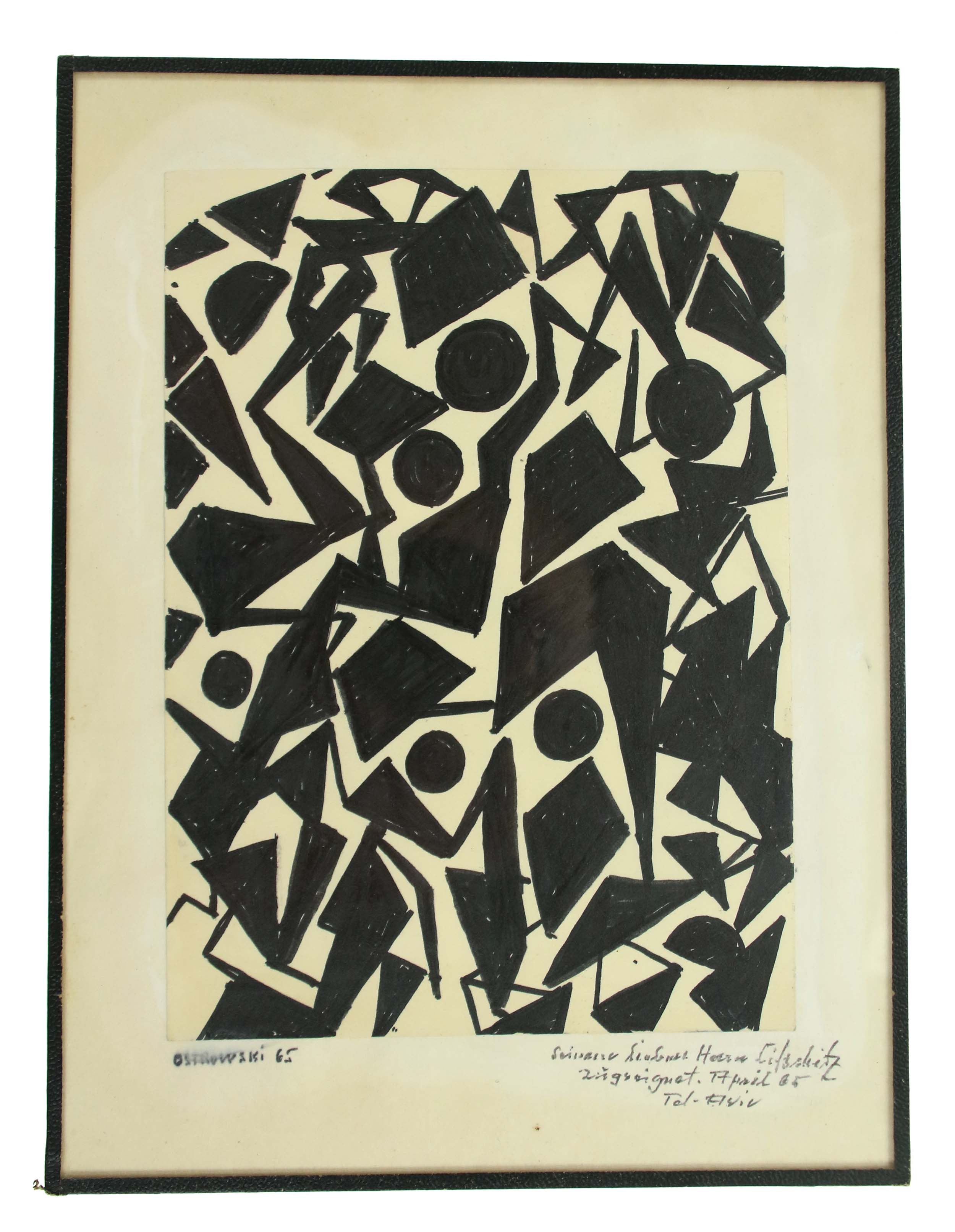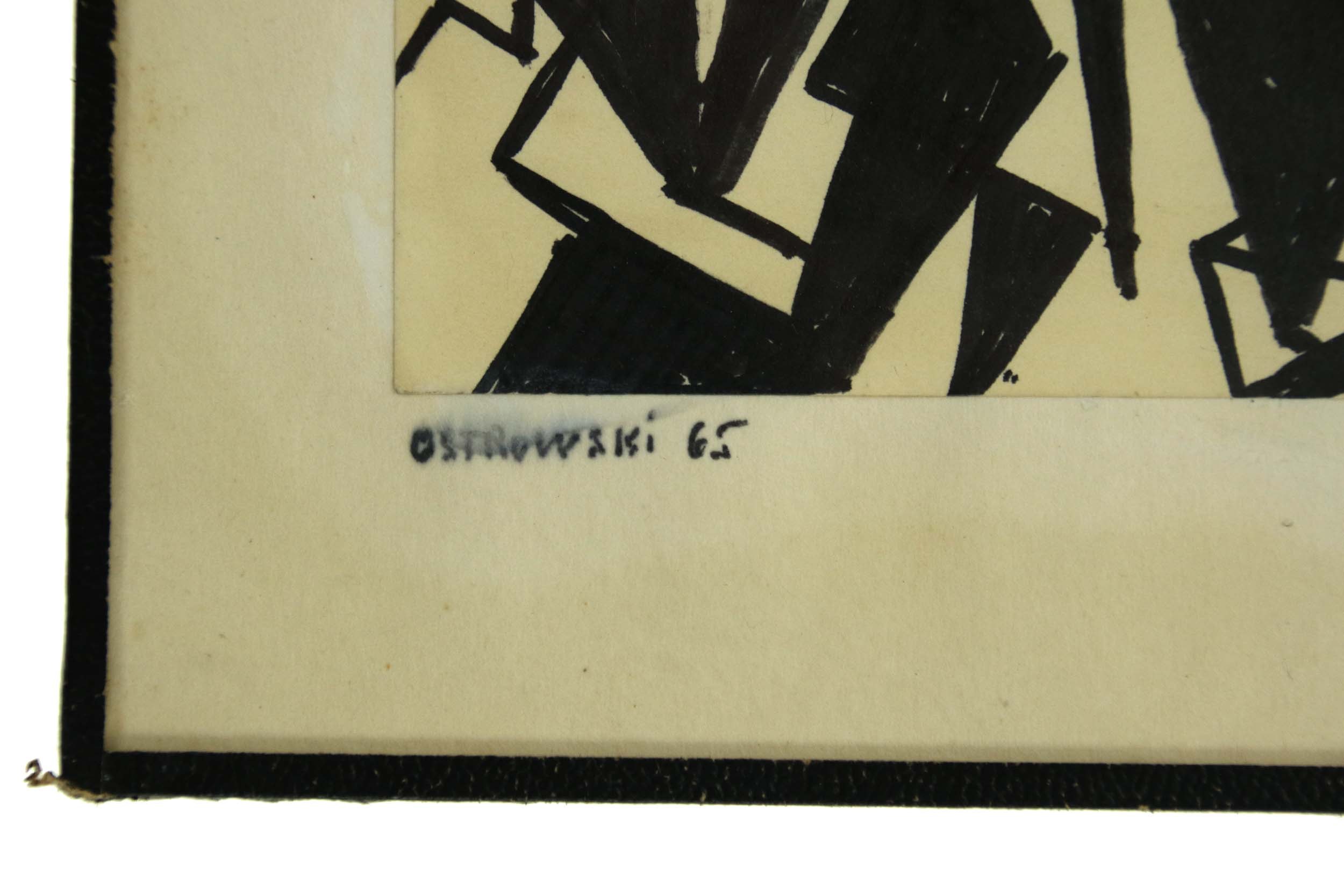 Tusz / papier. Sygn i dat. l.d.: OSTROWSKI 65. Wym. 20 x 14 cm, passe partout 27 x 20 cm.