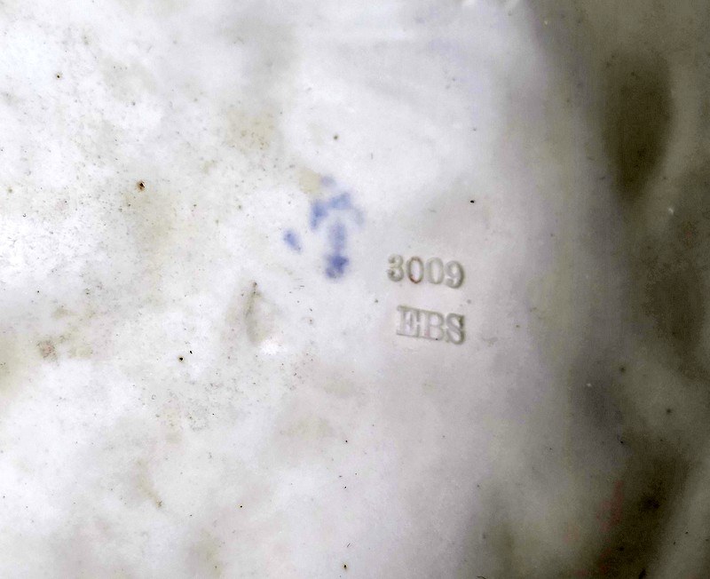 Sygnatura na spodzie figurki - Ernst Bohne & Söhne „EBS" i znak kotwicy datowany od 1878-1896 , oraz wycisk numeryczny : 3009
