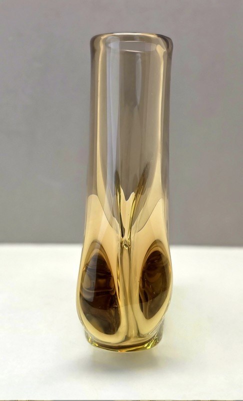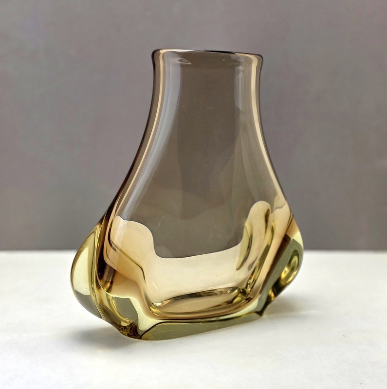 Masywny wazon ze szkła dwubarwnego w kolorze brunatno-cytrynowym , proj. Miroslava Klingera