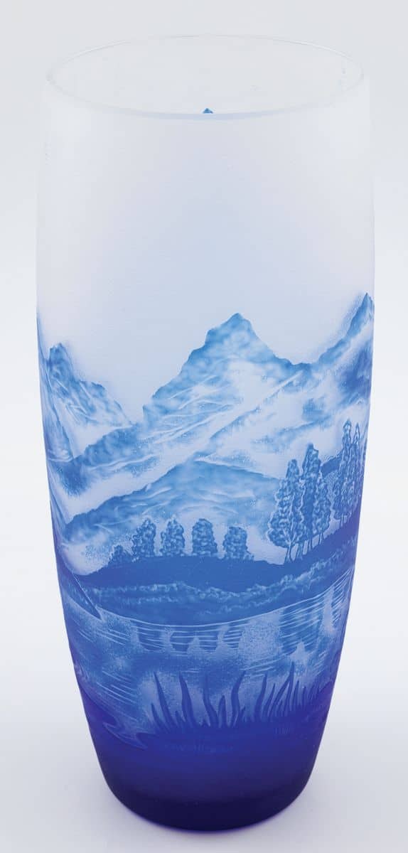 Szkło warstwowe bezbarwne, matowione, powlekane niebieskim, wys. 27 cm