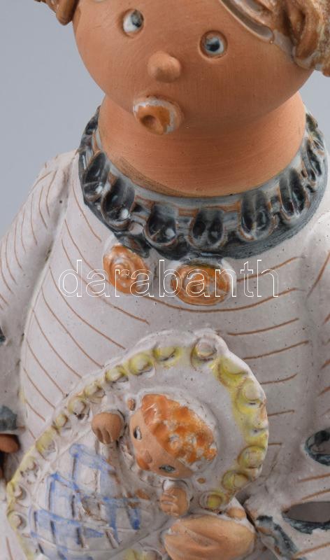 Kiss Roóz Ilona (1920-2010): Anya gyermekével. Mázas kerámia, kézzel festett. Jelzett, hibátlan, m: 31 cm /// Ilona Roóz Kiss (1920-2010): Mother with Child. Glazed ceramic, hand-painted. Signed, flawless, height: 31 cm."
