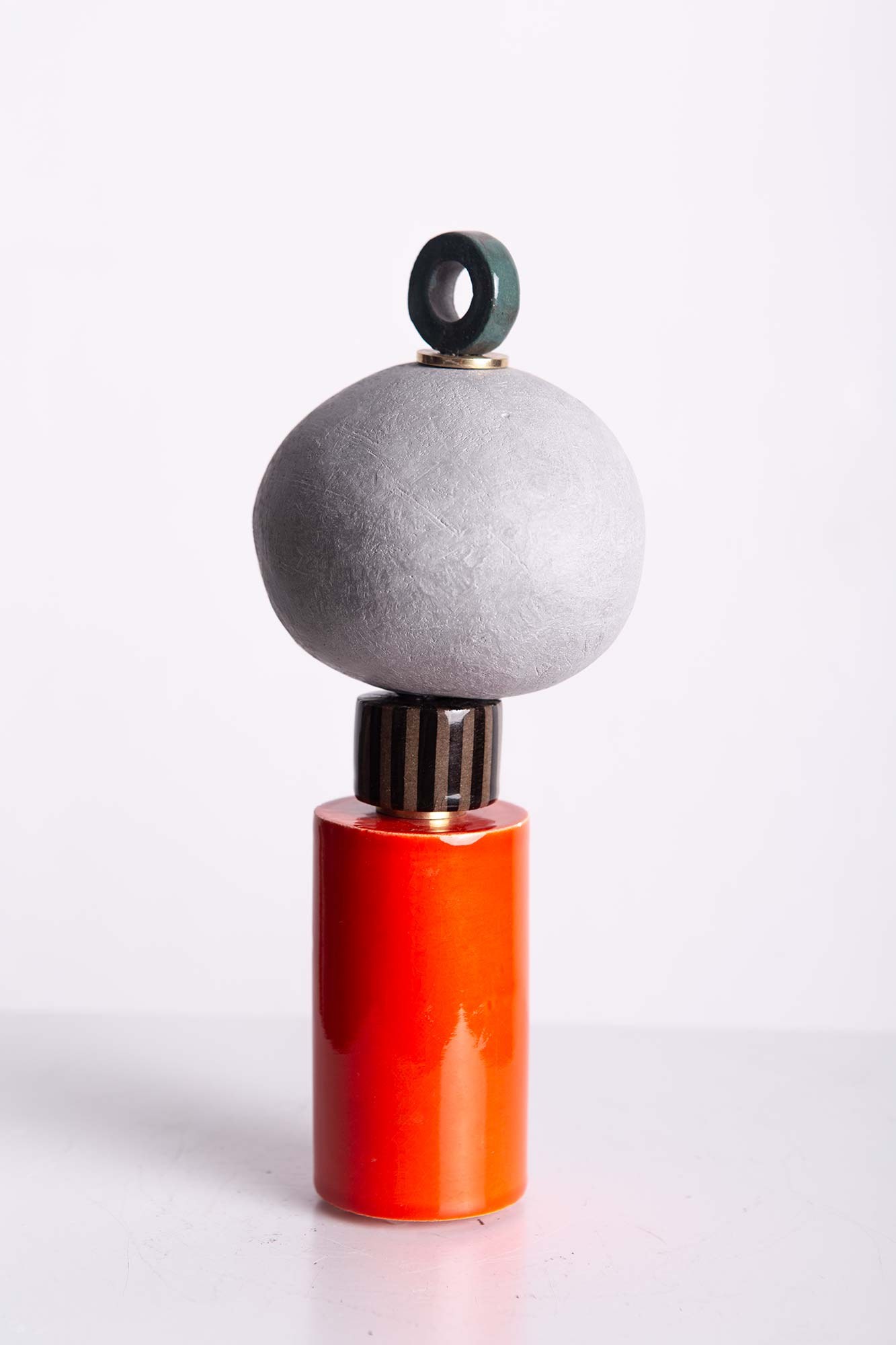 Ceramika szkliwiona, ceramika nieszkliwiona, mosiądz; 21 x 10 x 10 cm