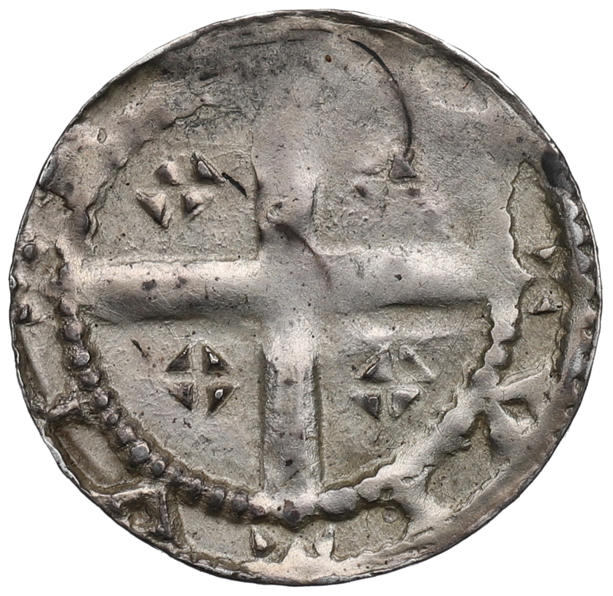 Rewers: w otoku perełkowym krzyż, w otoku zewnętrznym legenda;