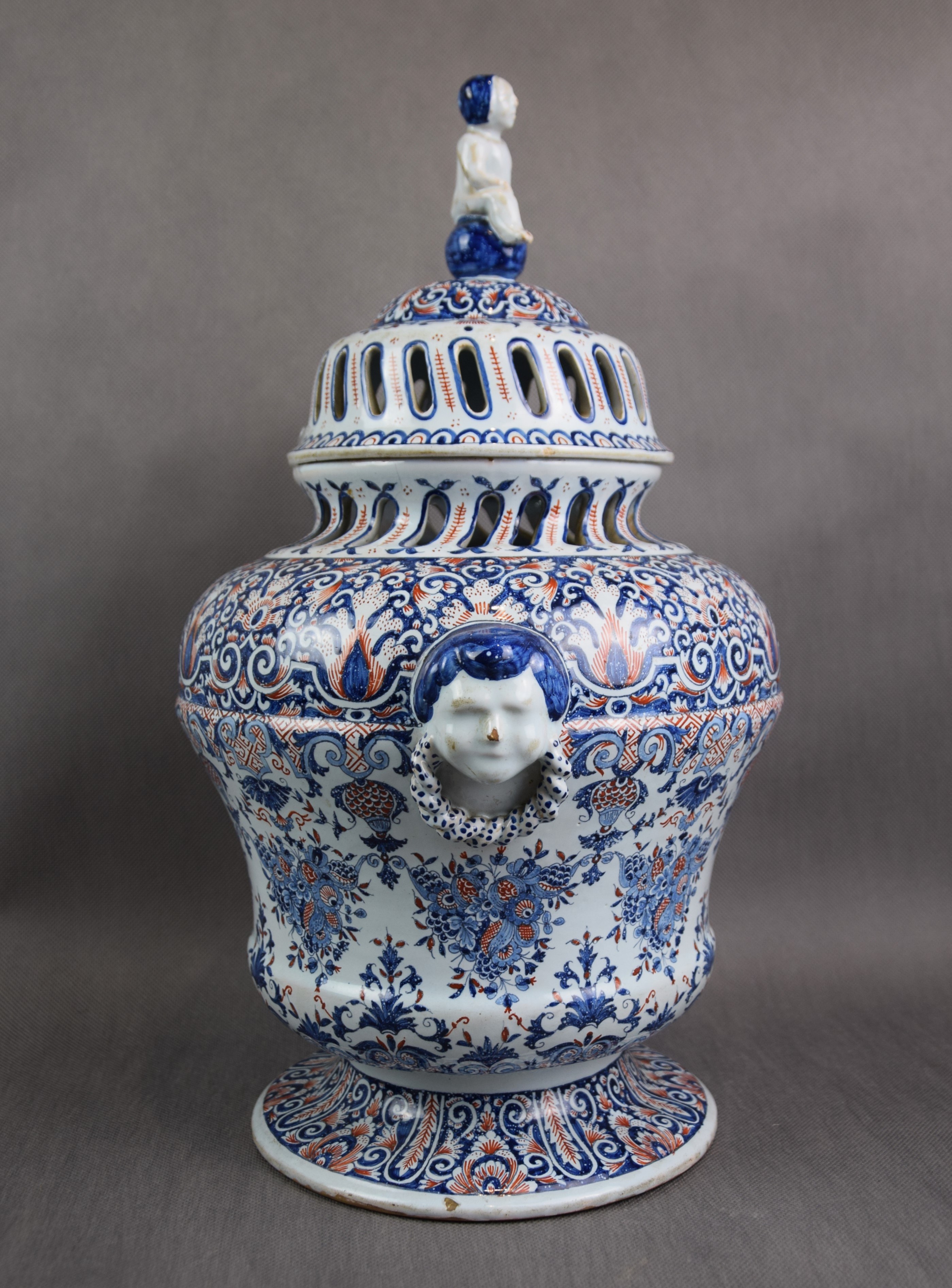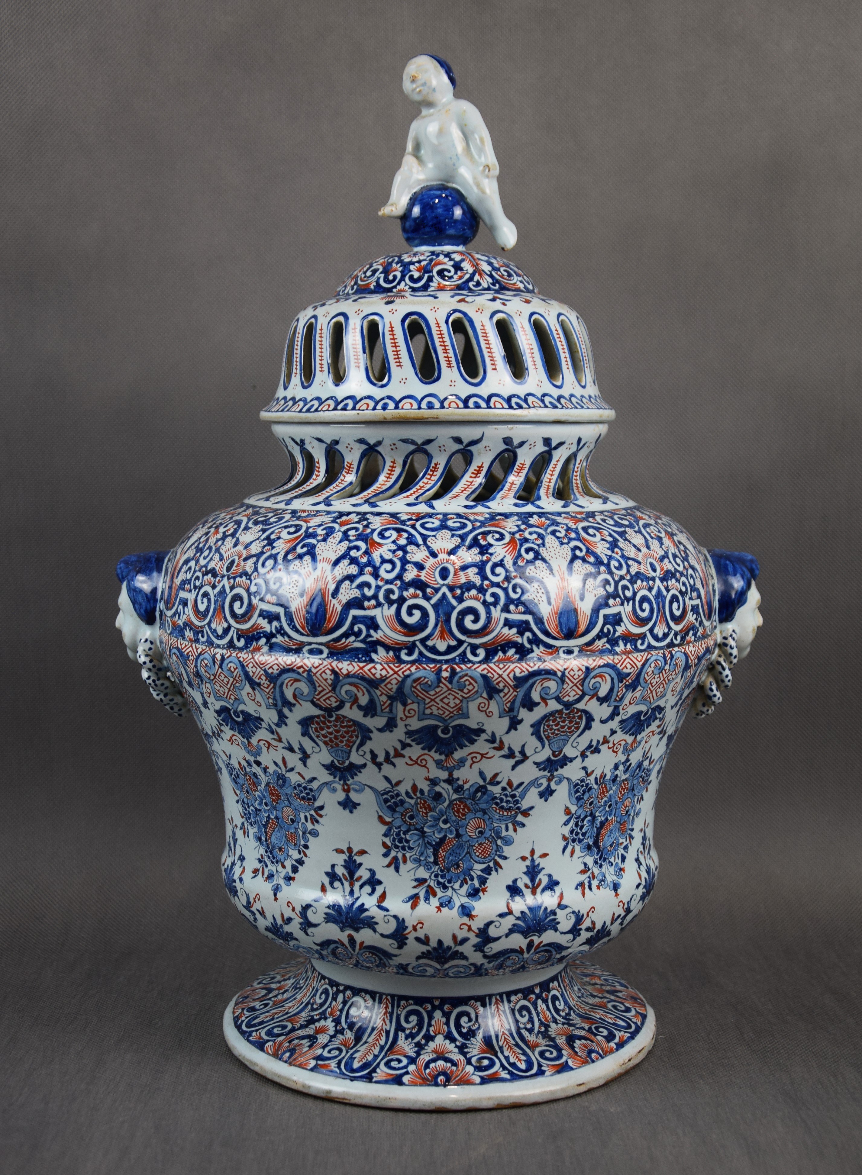 Duże Pot–pourri w formie amfory z bogato malowaną dekoracją.