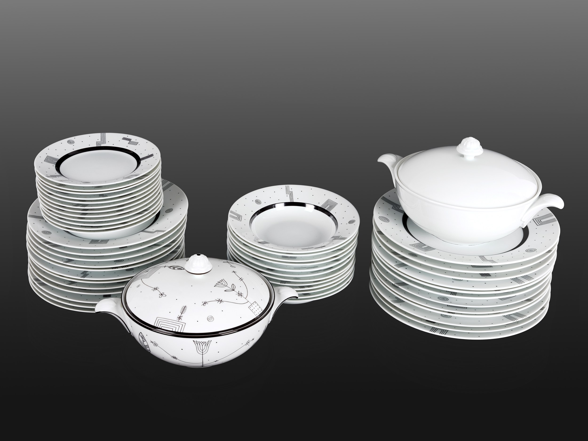 Marked on the base: Augarten Art Deco Design, decor number 5557, painter numbers