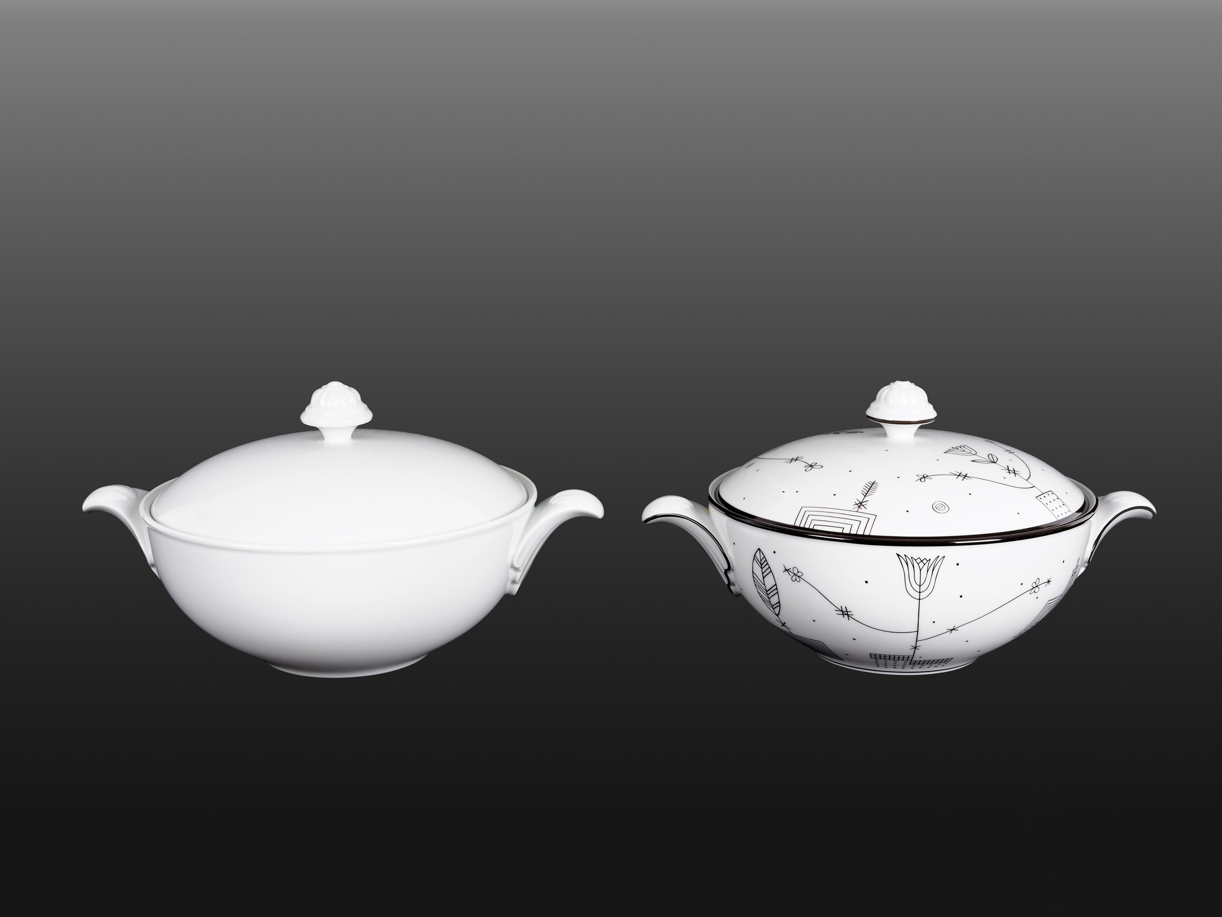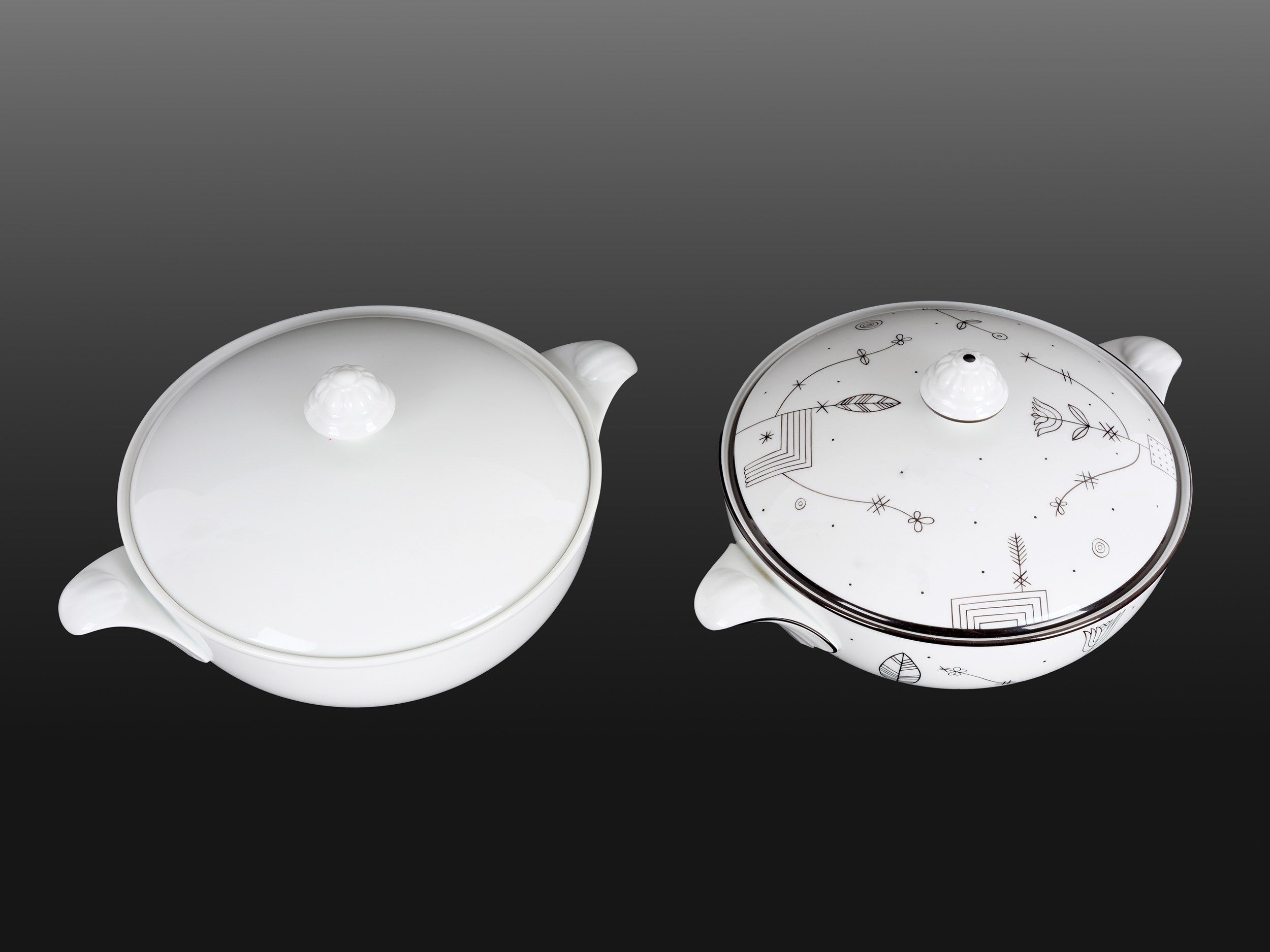 2 soup tureens with lids, length yes 31 cm, diameter each 21 cm, height each 17.5 cm