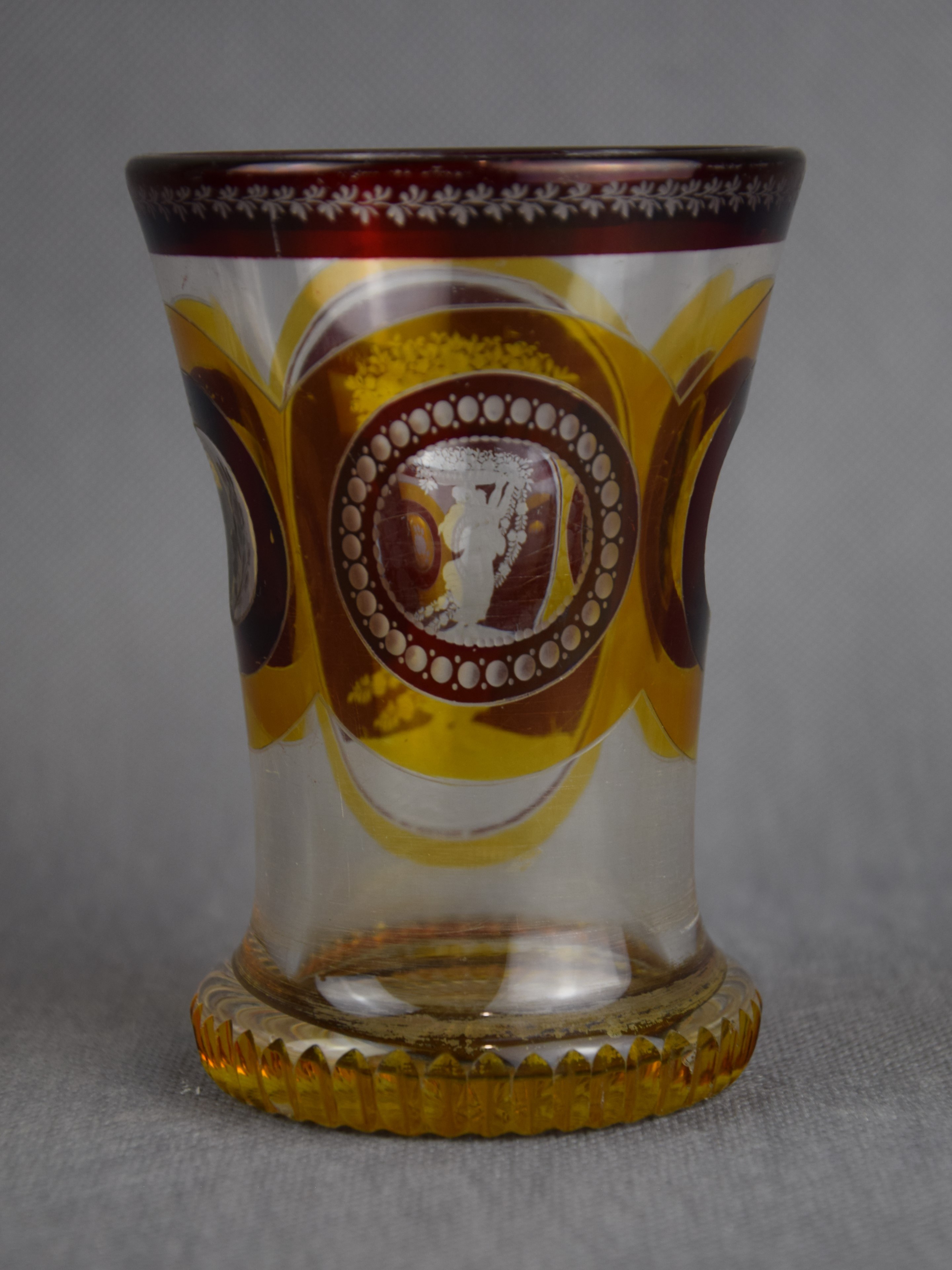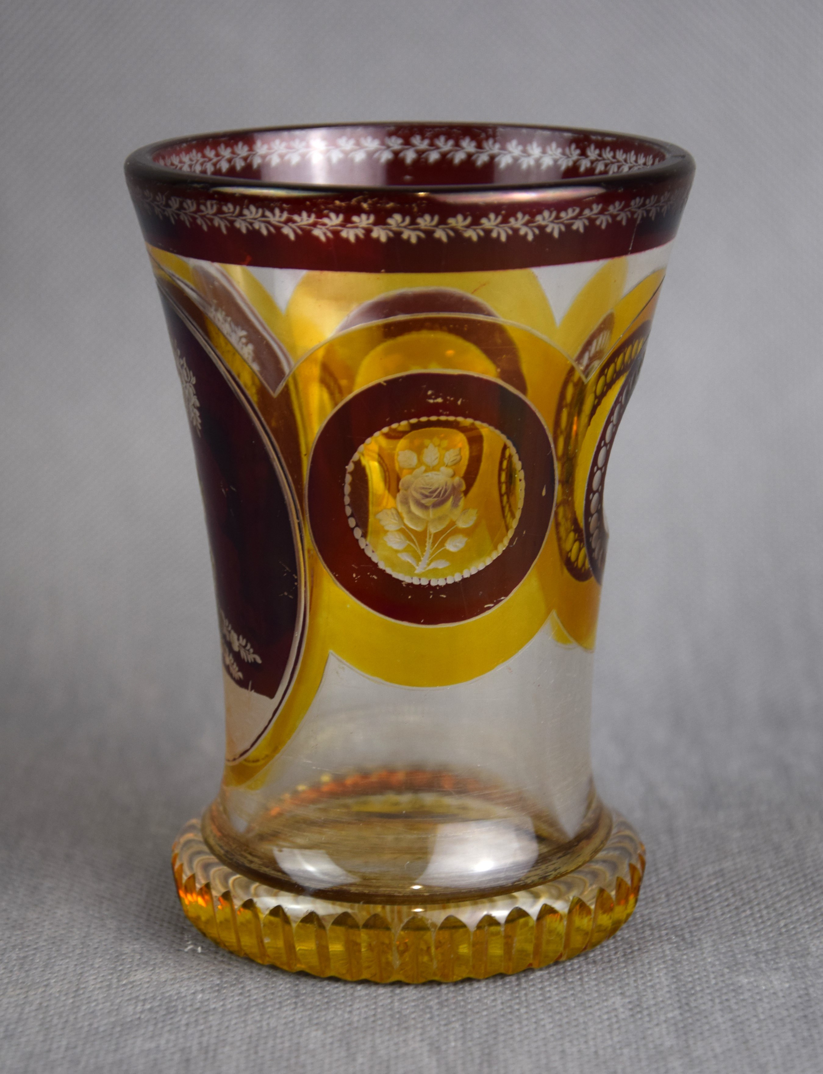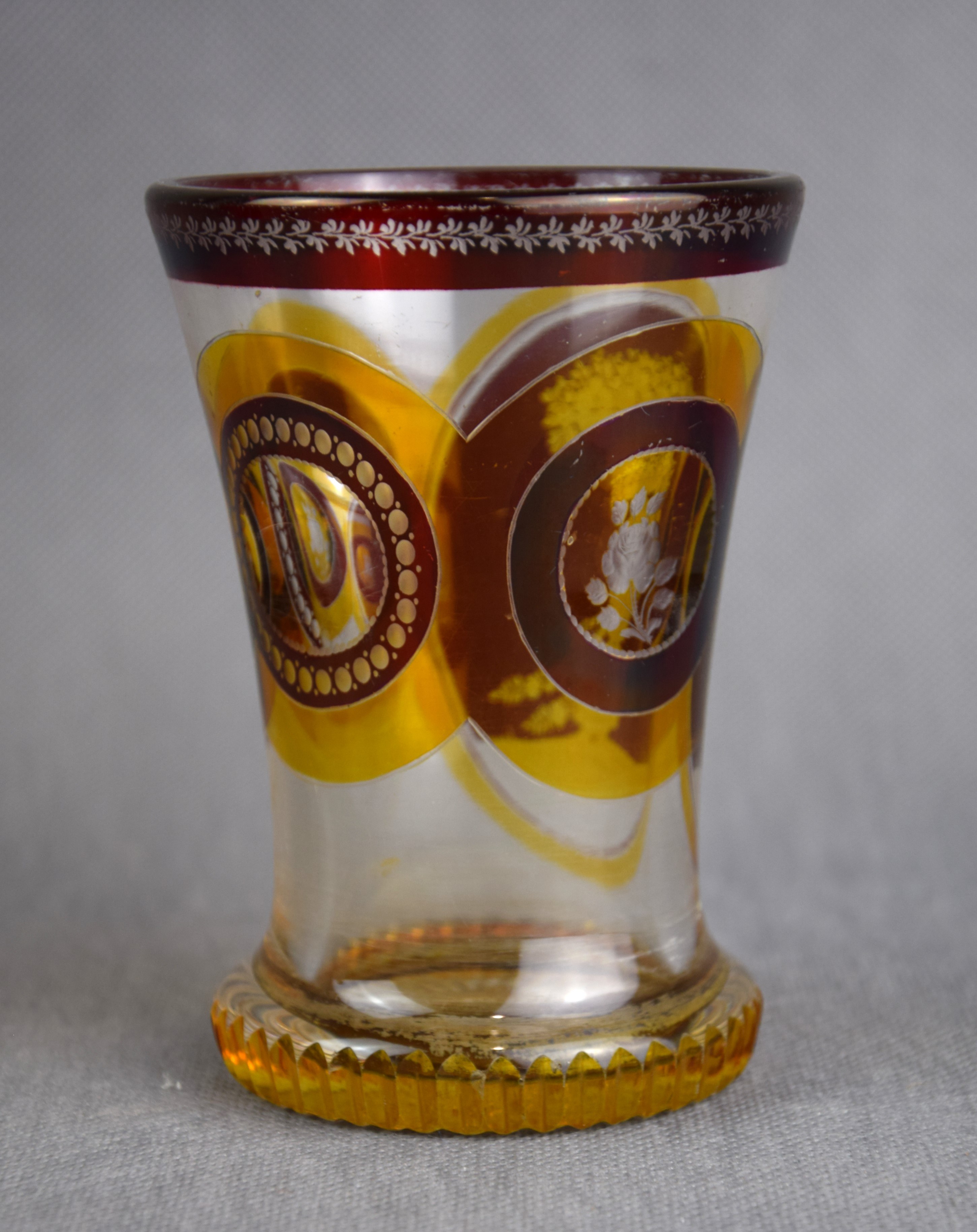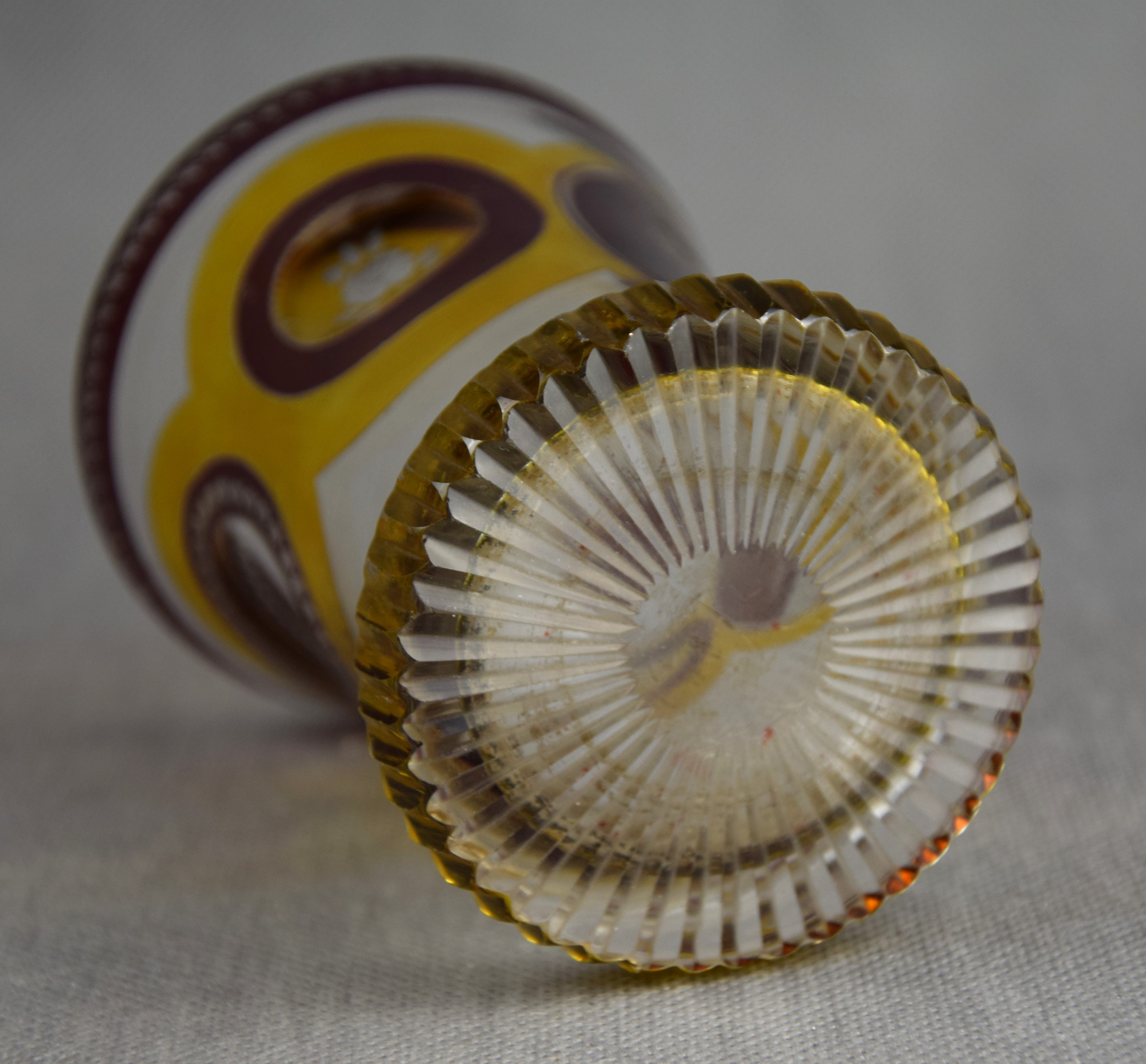 Szkło ołowiowe, lazur rubinowy i żółty, szlifowane.
