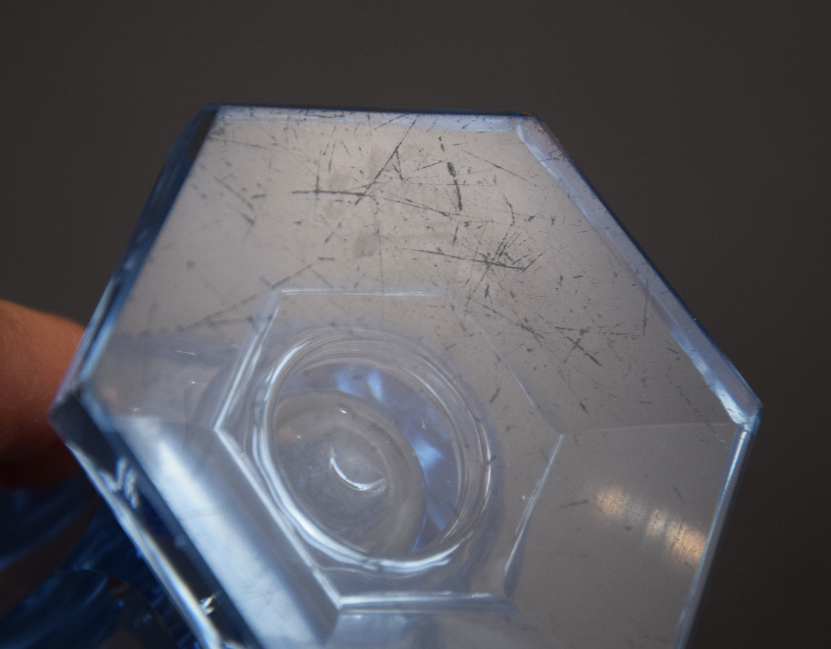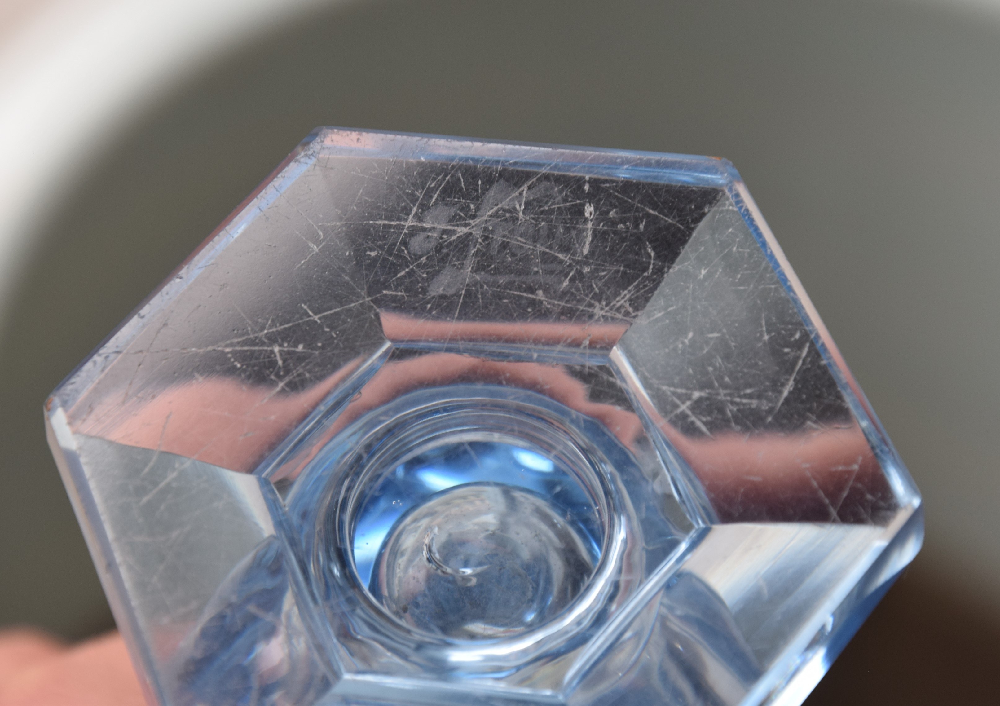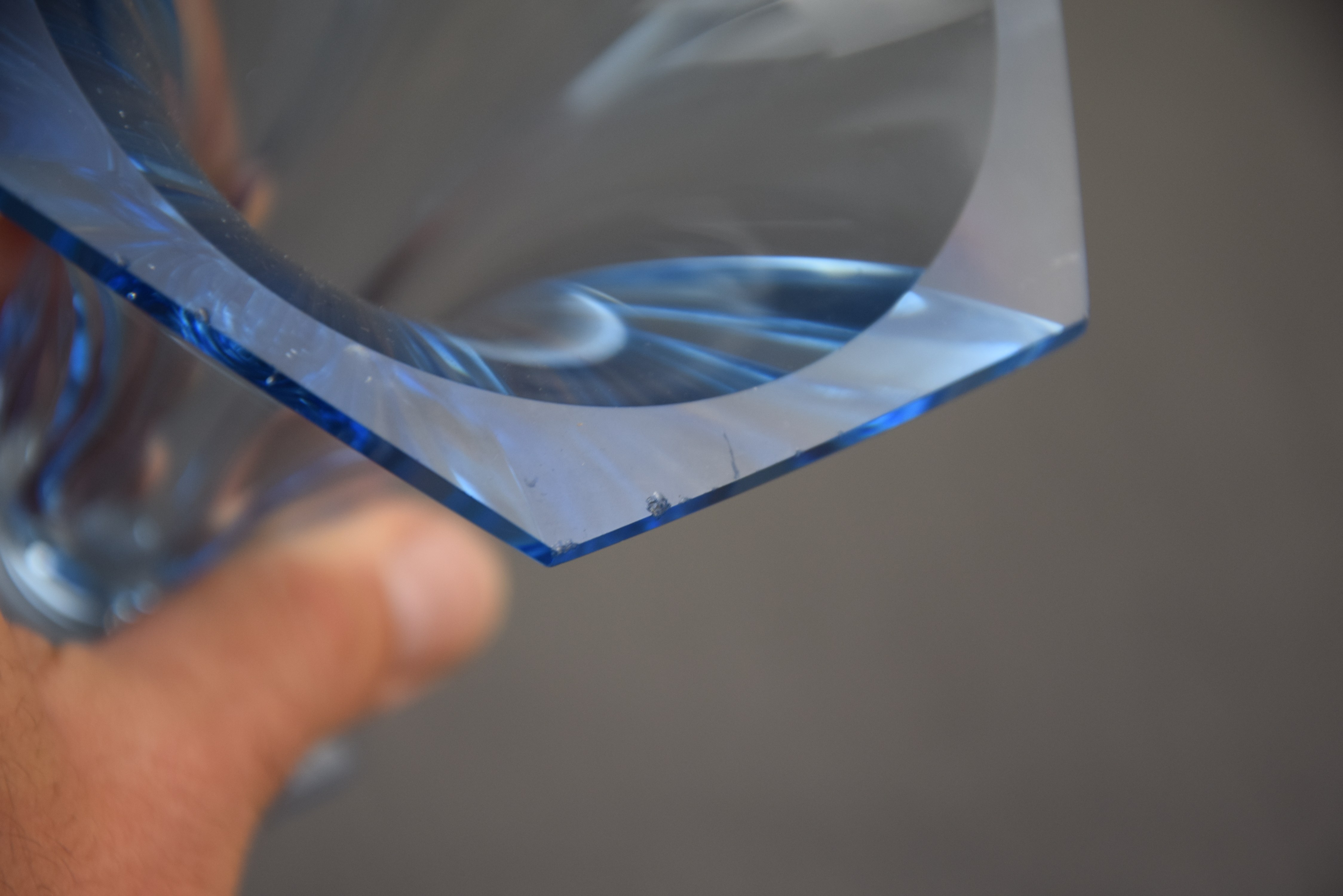 Stan bardzo dobry. Minimalne milimetrowe wyszczerbienia na krawędzi rantu wlewu.