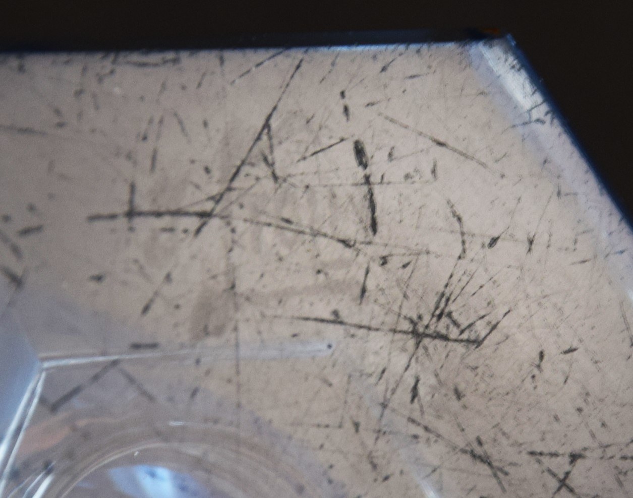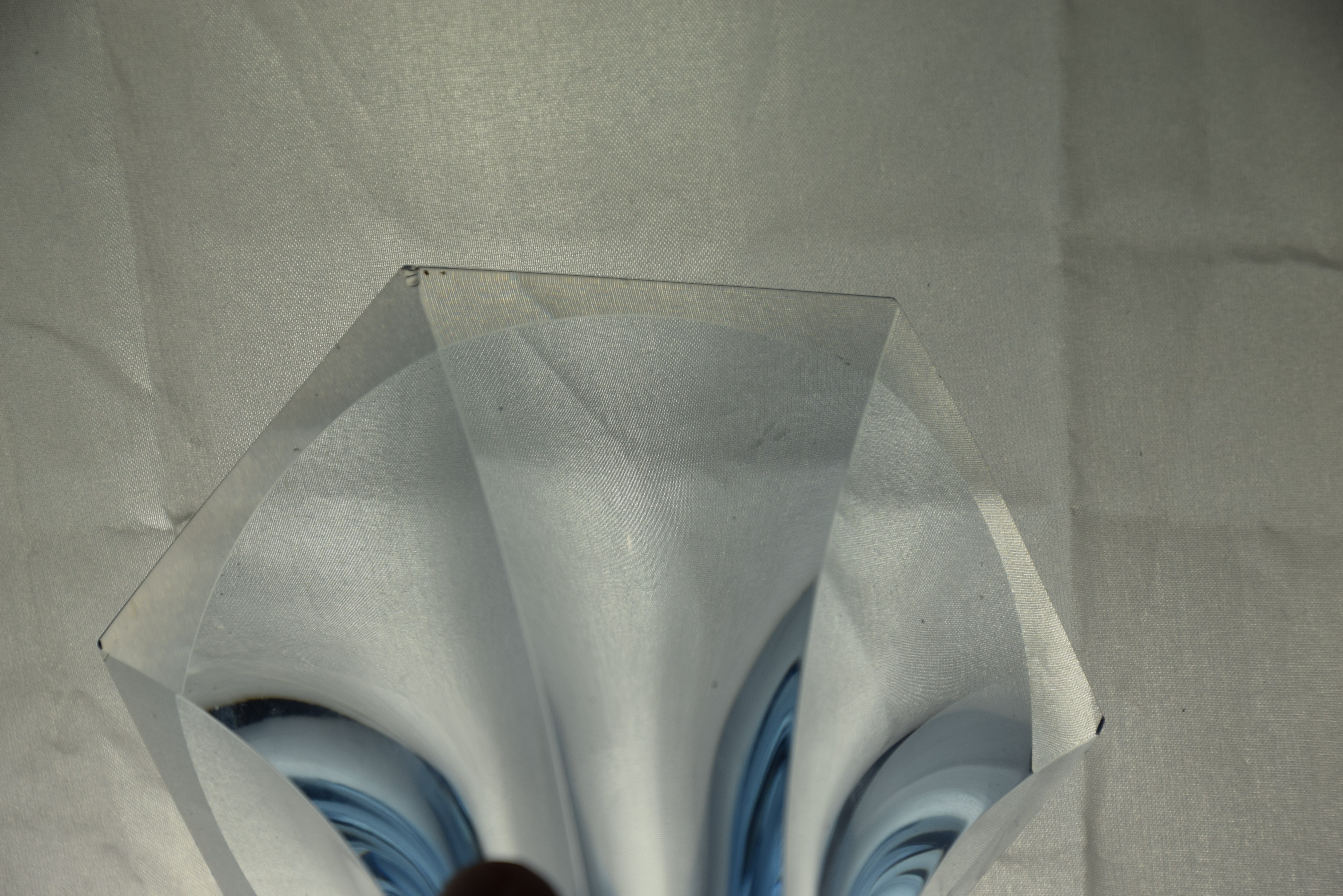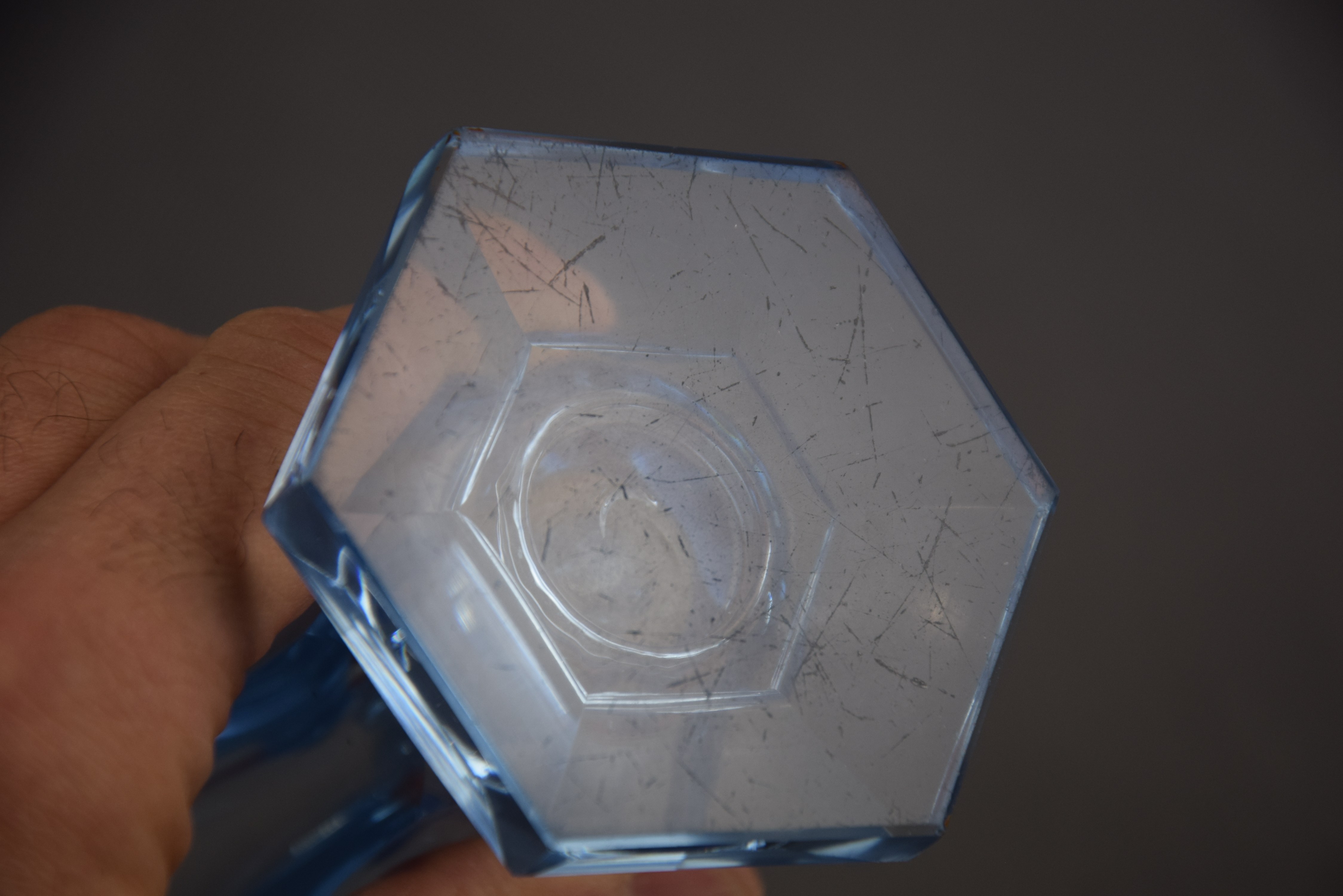 Stan bardzo dobry. Minimalne milimetrowe wyszczerbienia na krawędzi rantu wlewu.